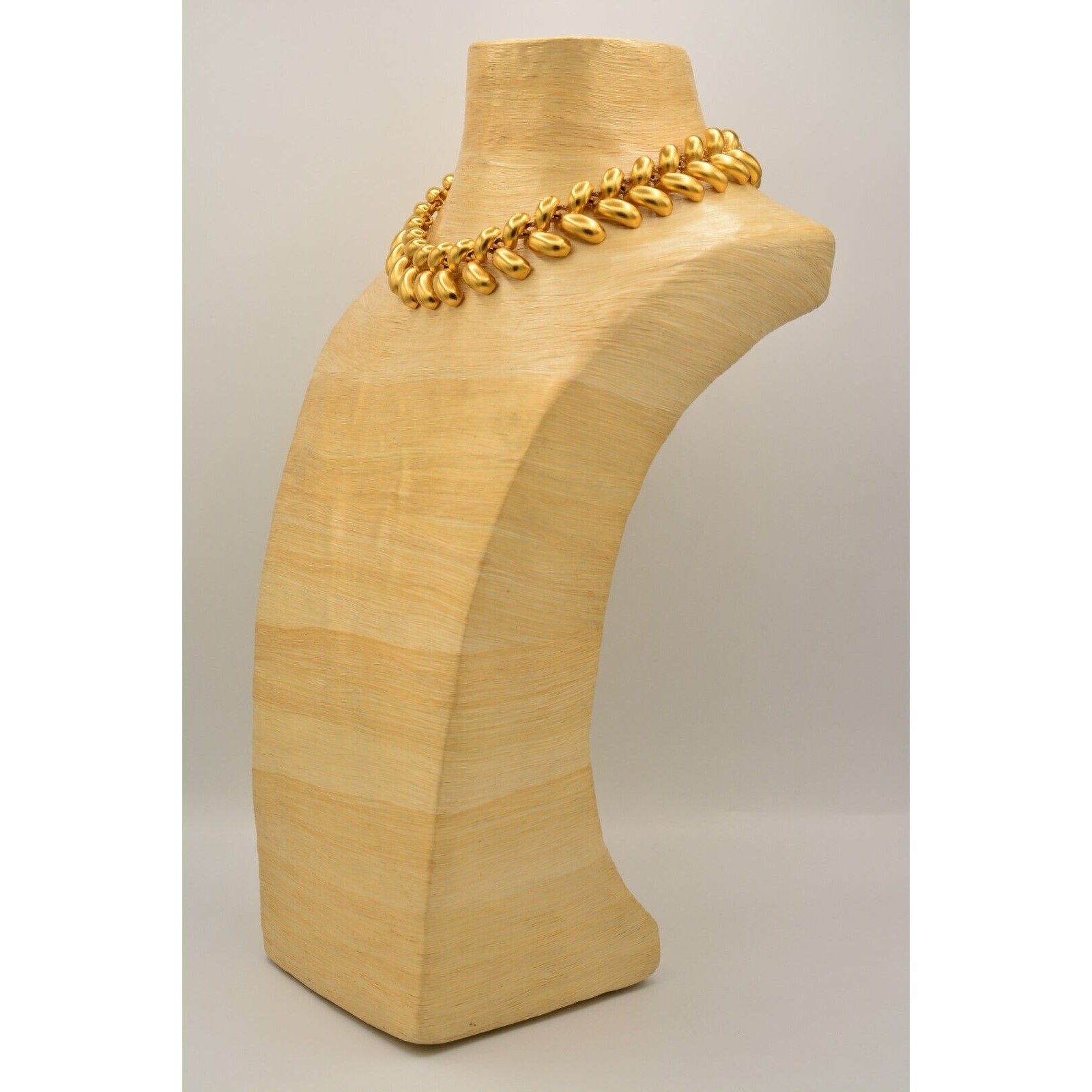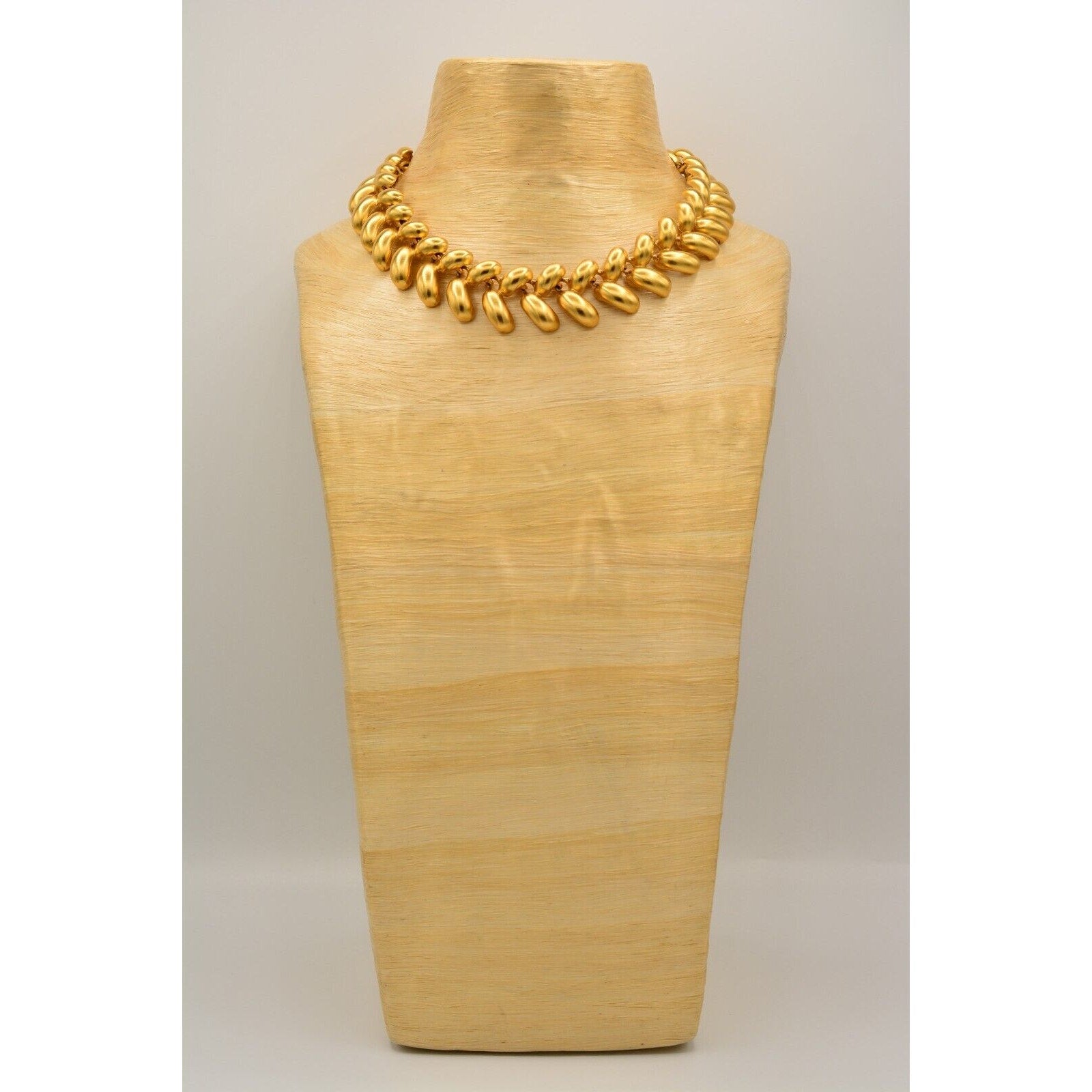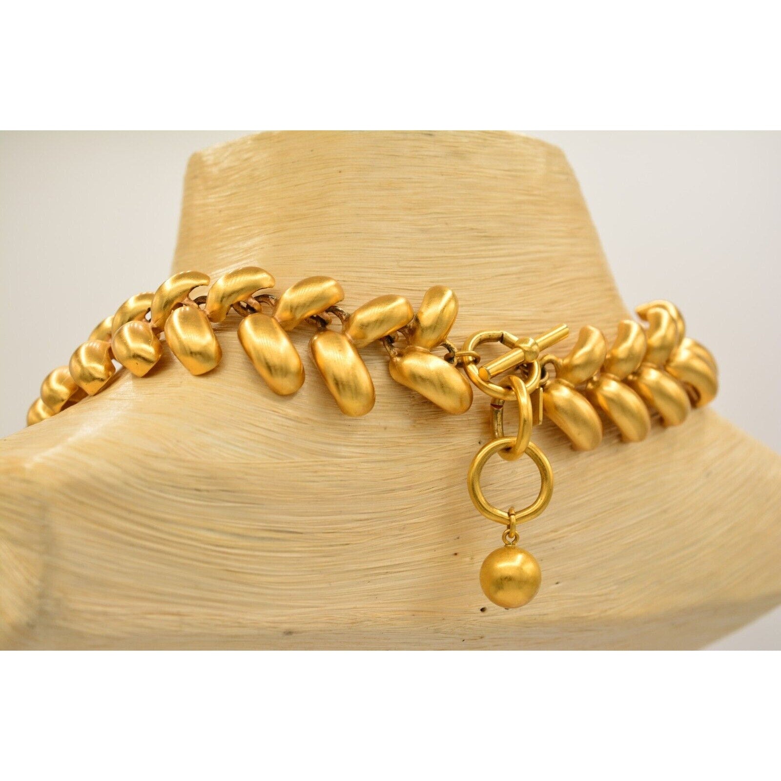 A bold vintage Anne Klein gold-tone statement necklace featuring sculptural, organic links with a rich matte finish. A striking designer piece that sits beautifully at the neckline and adds instant impact to any look.