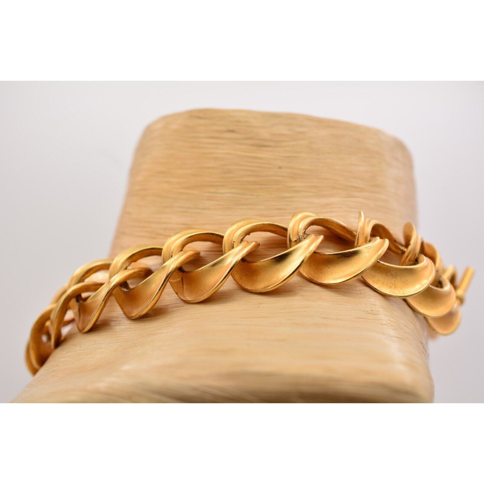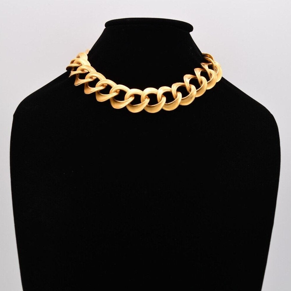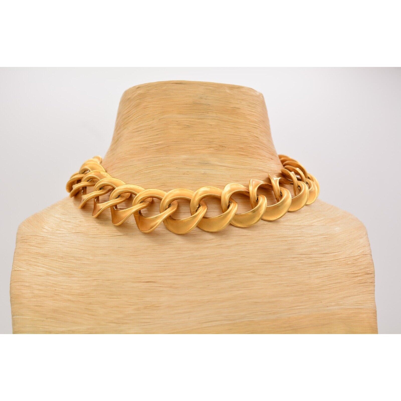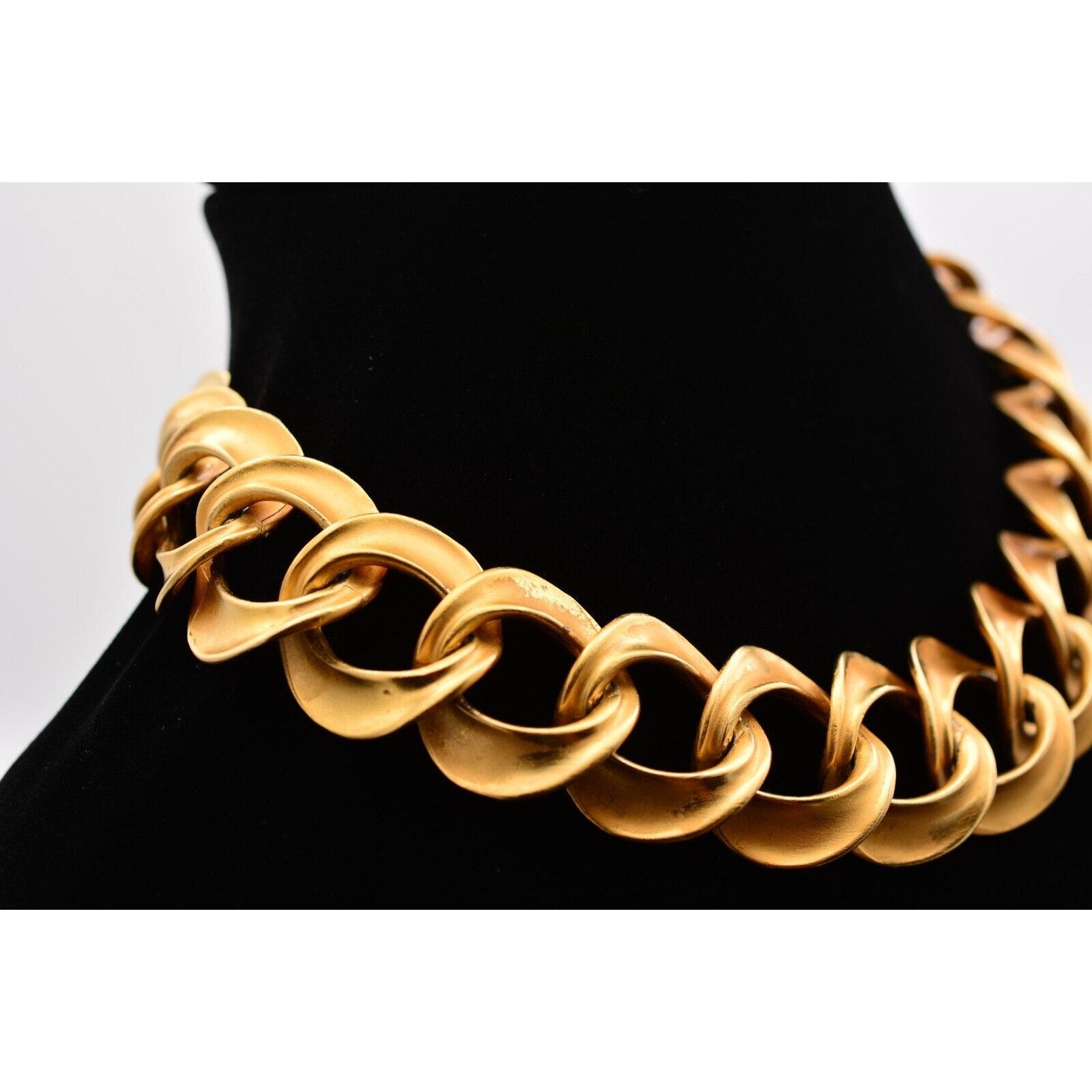 A bold and timeless vintage Anne Klein necklace featuring oversized sculptural gold-tone links with a luxe matte finish. A powerful statement piece that elevates any look, from tailored classics to modern minimal styling.