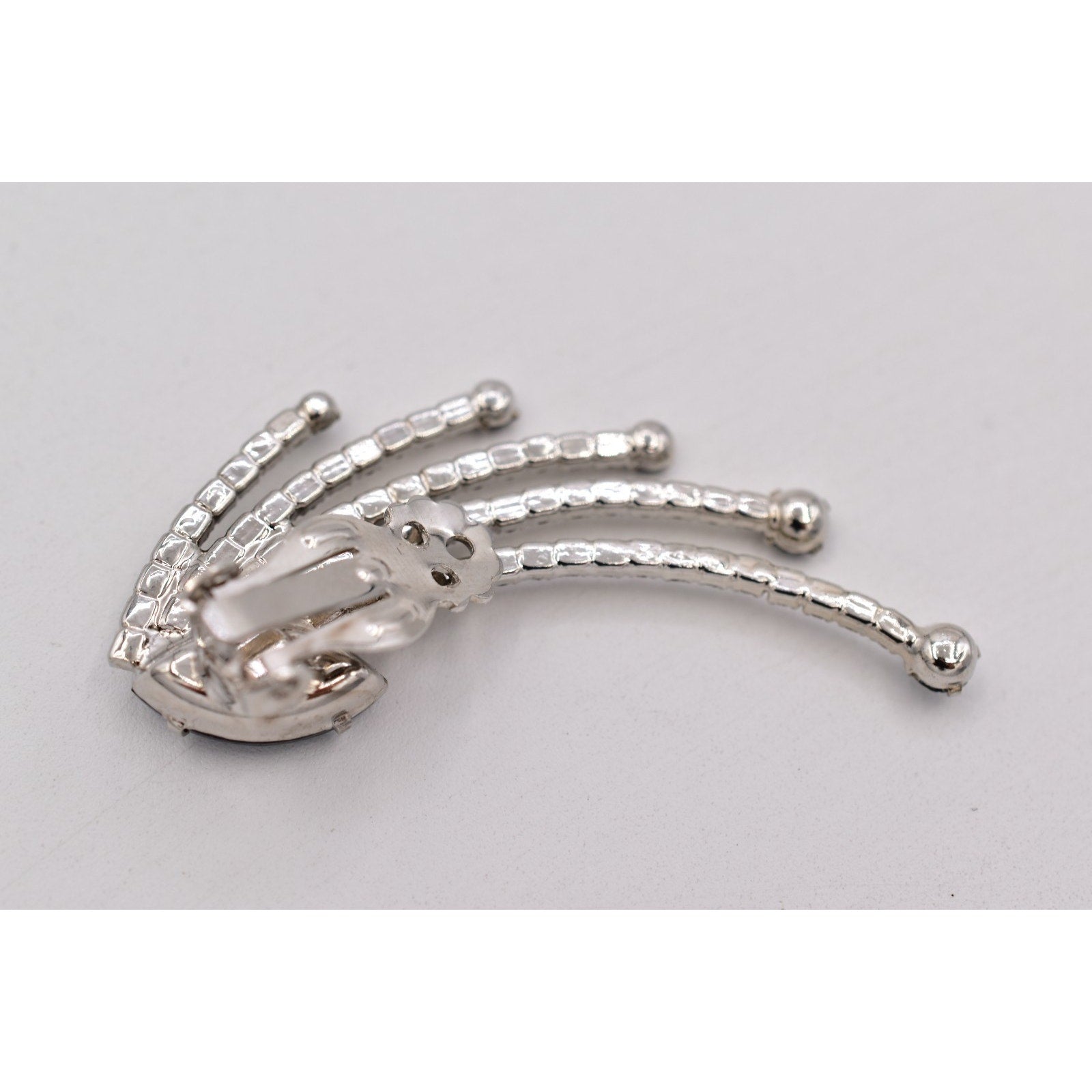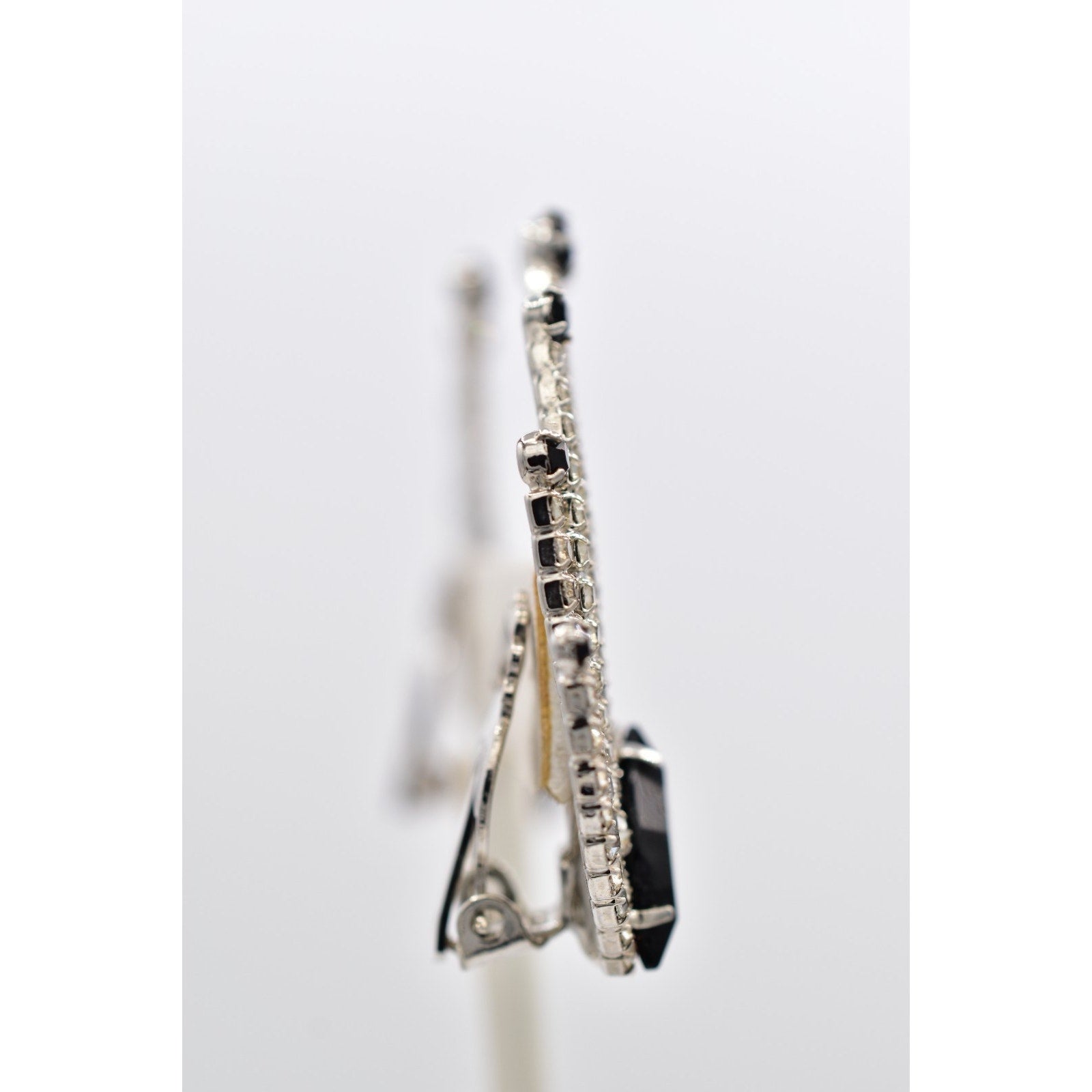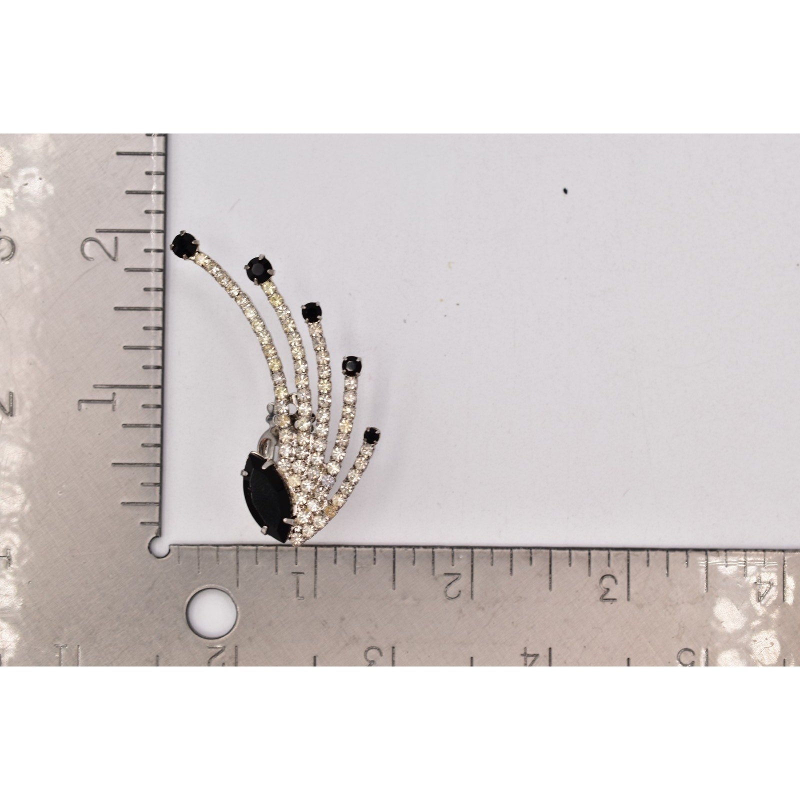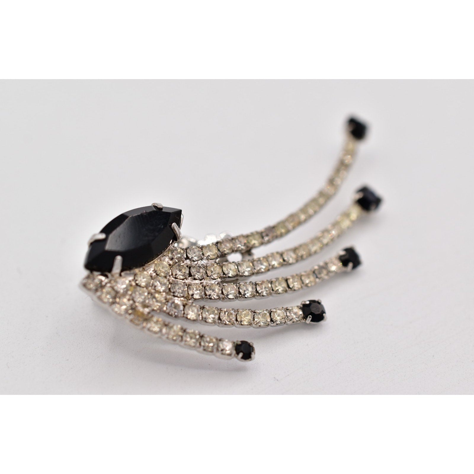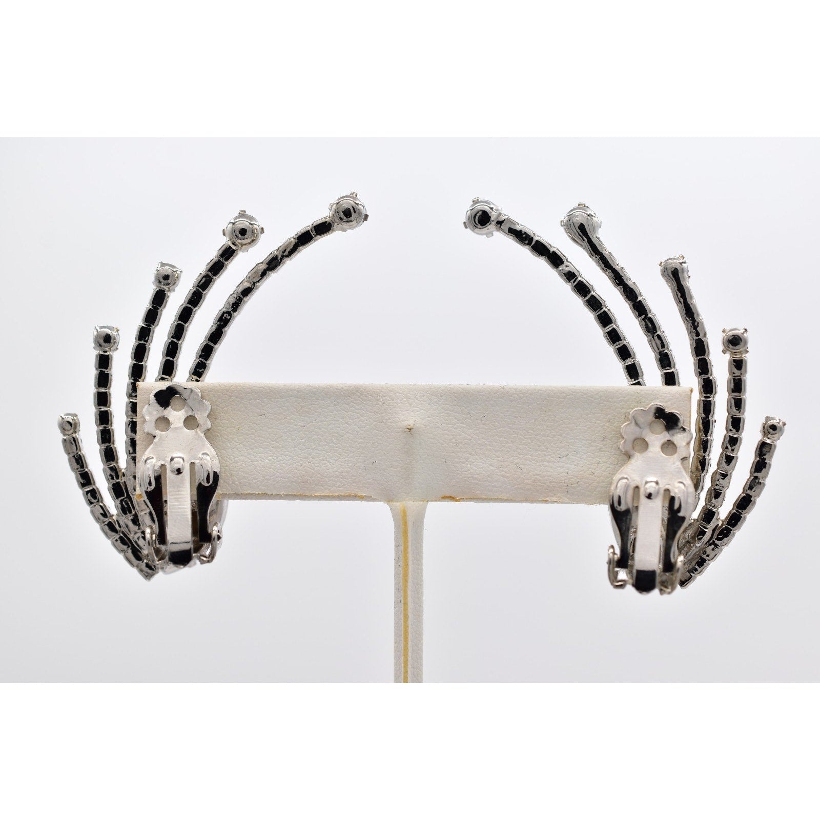 Bold vintage statement earrings featuring sweeping rhinestone spray arms accented with black faceted stones. Dramatic, elegant, and perfect for evening or special occasions.