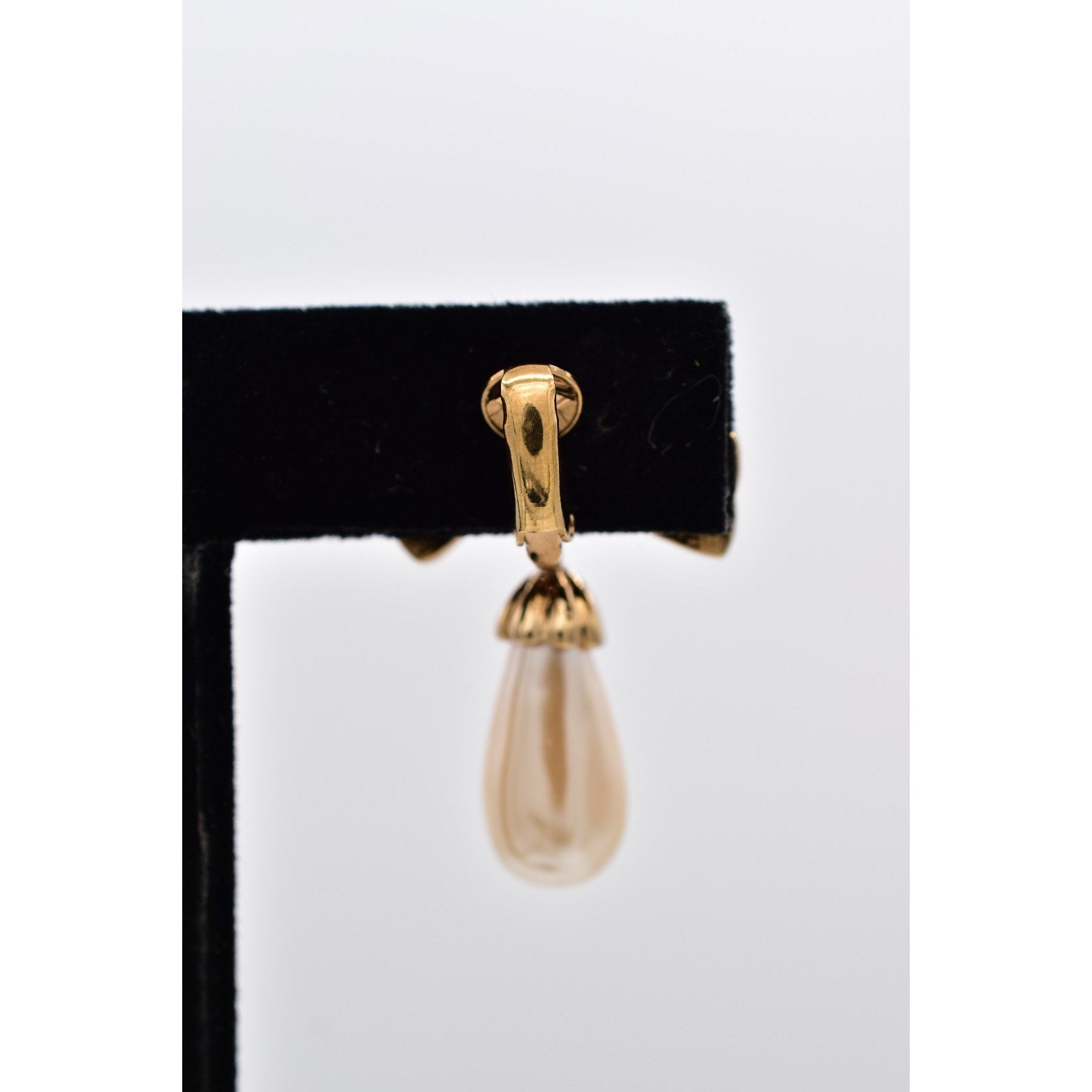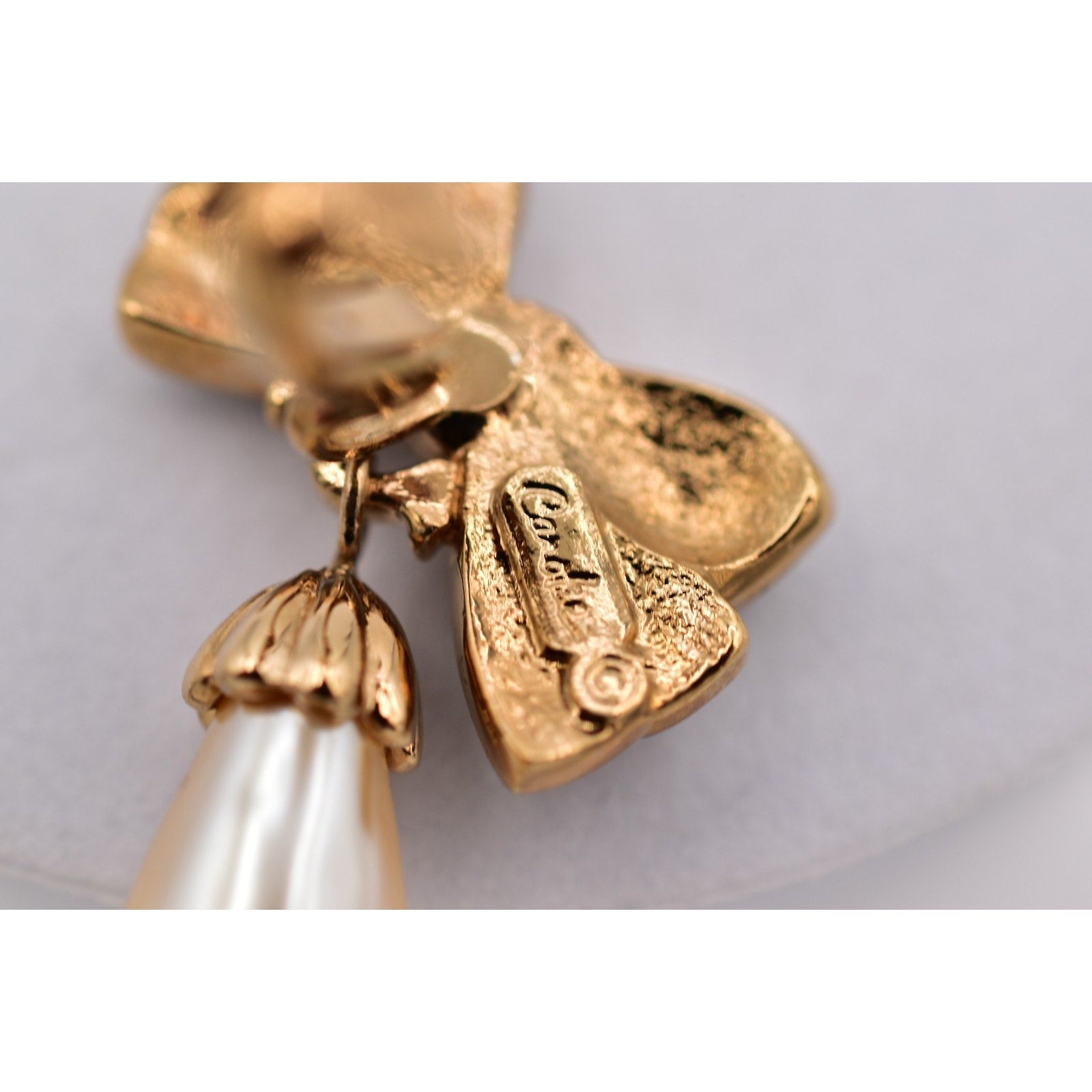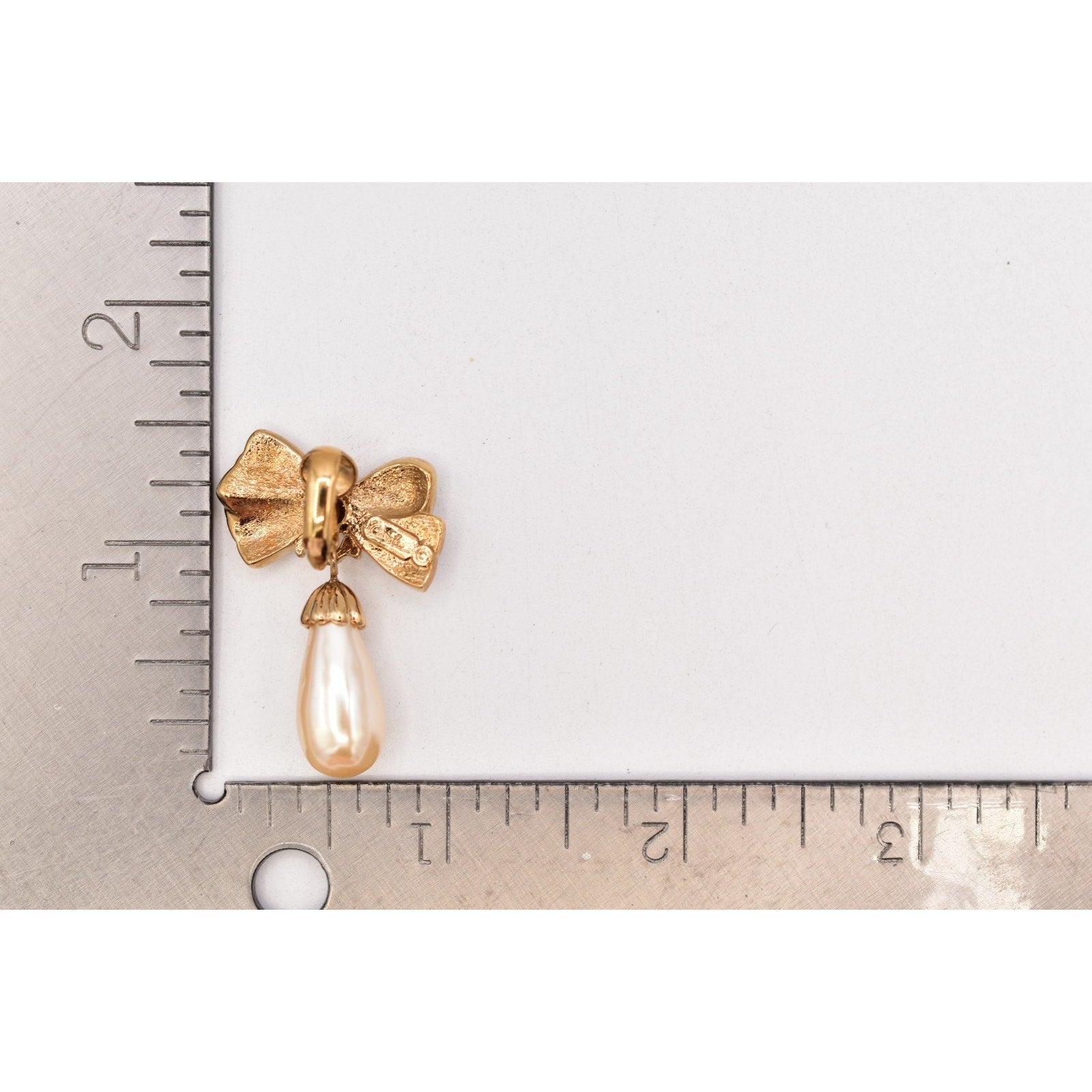 Elegant vintage Carolee bow earrings featuring sparkling clear rhinestones and luminous faux pearl drop dangles. A classic, feminine design with timeless appeal—perfect for dressy occasions or elevating everyday looks.