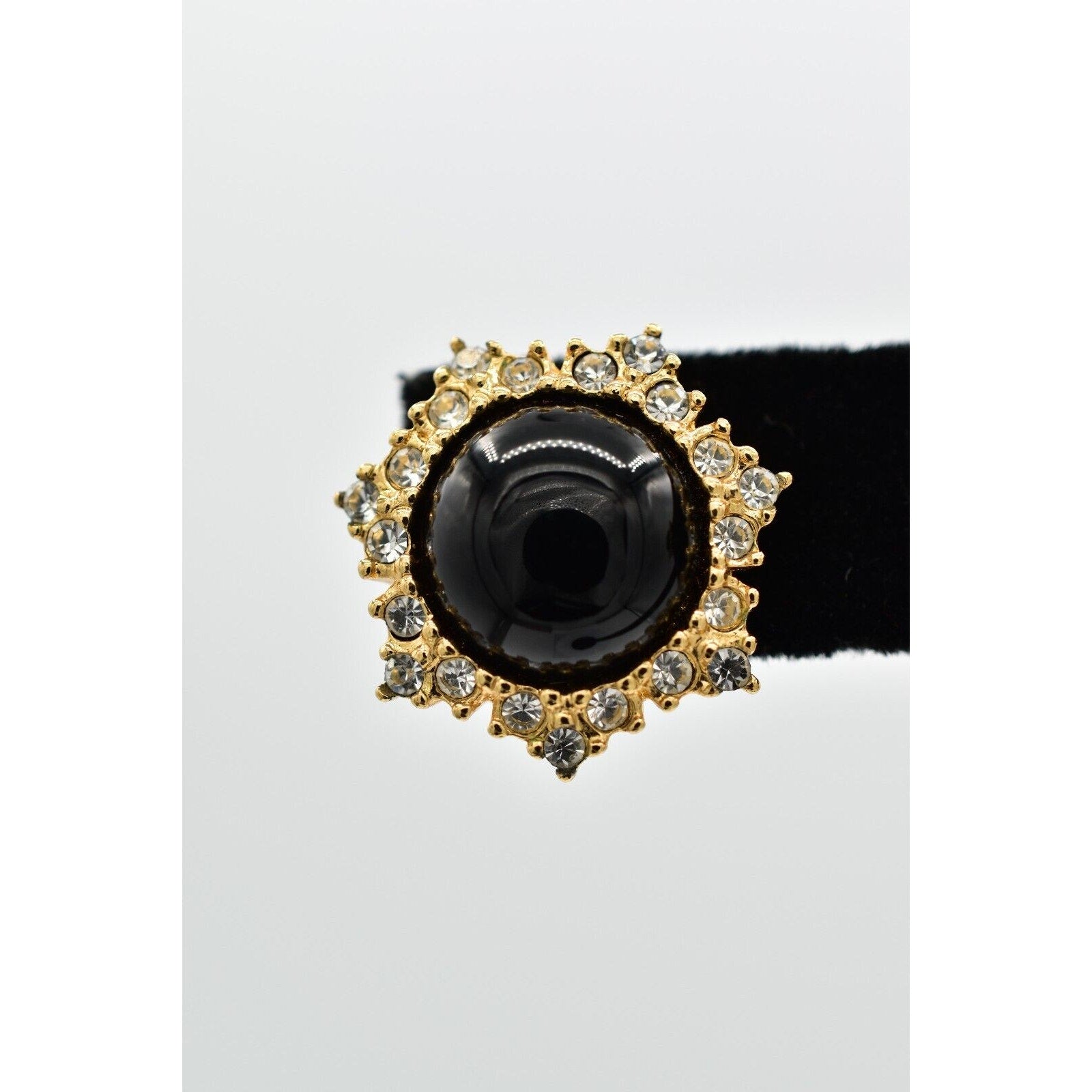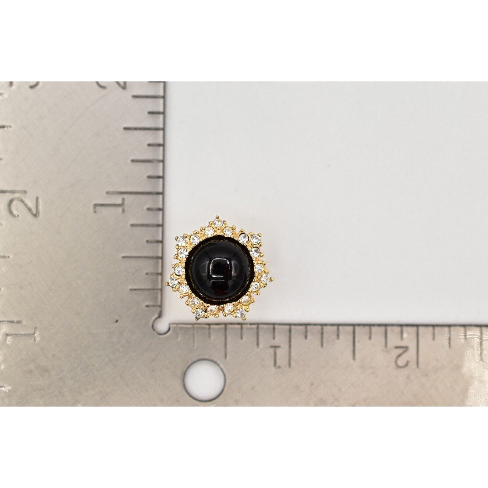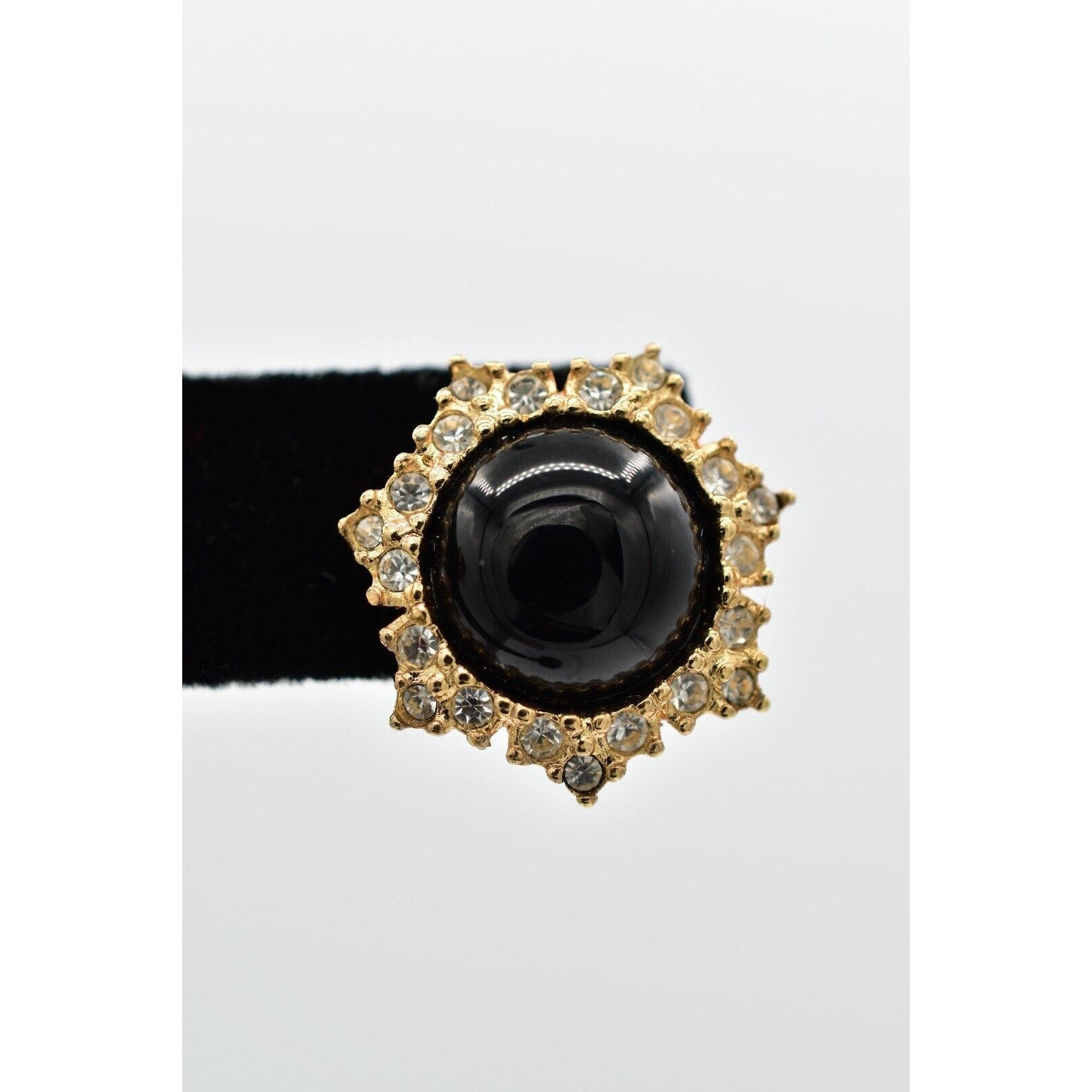 Vintage Christian Dior earrings with black cabochon center and pavé rhinestones.