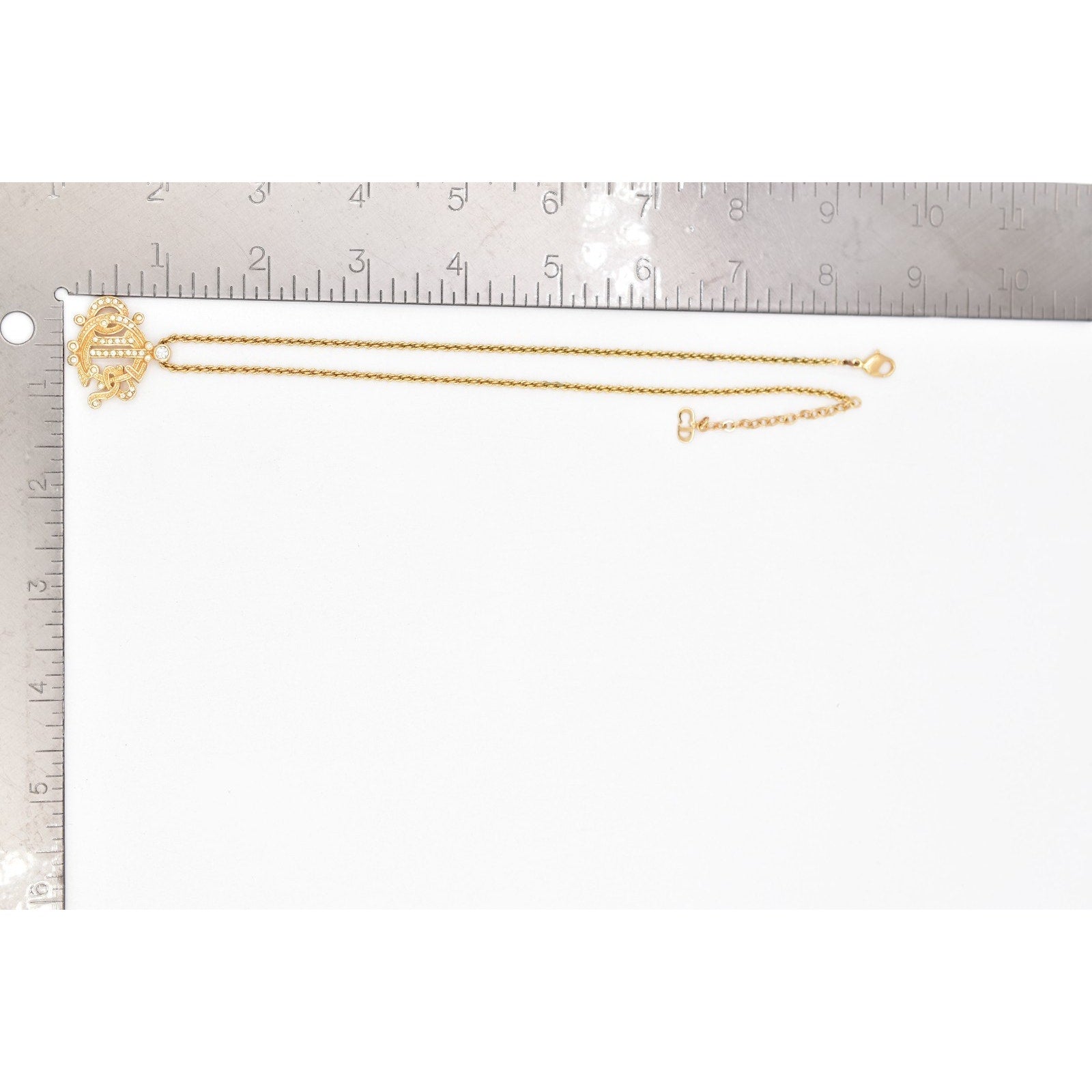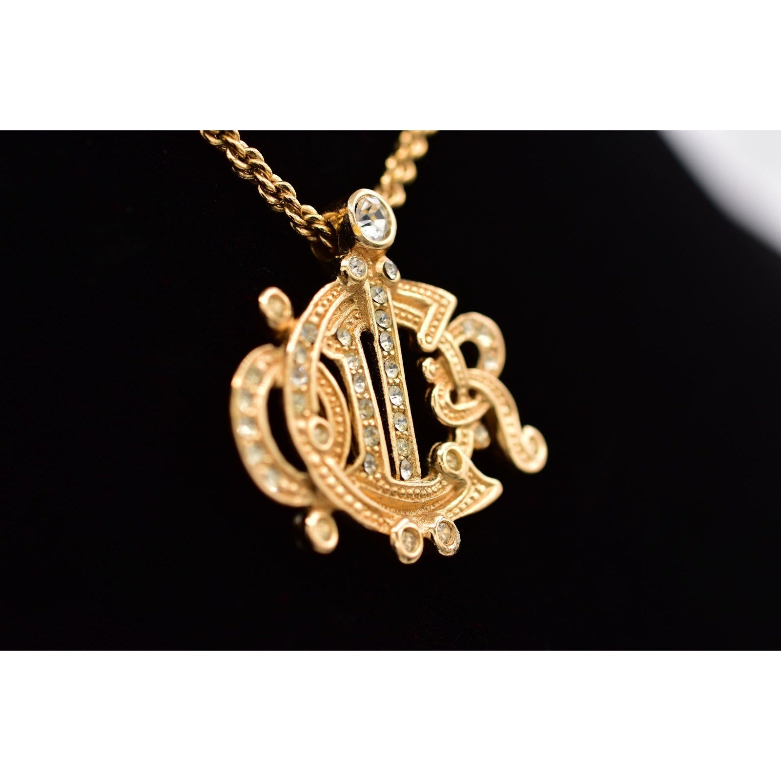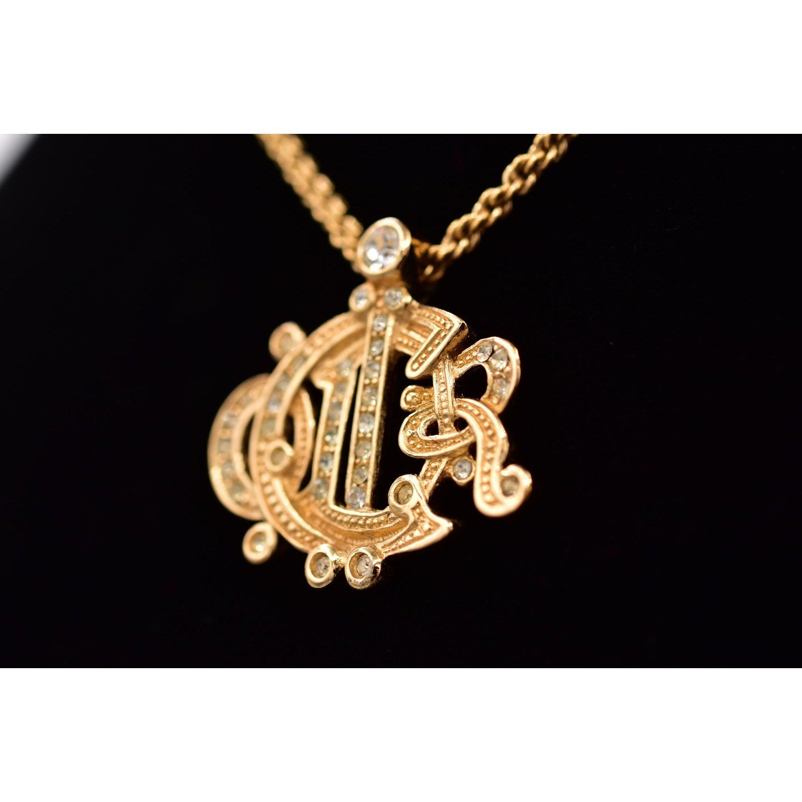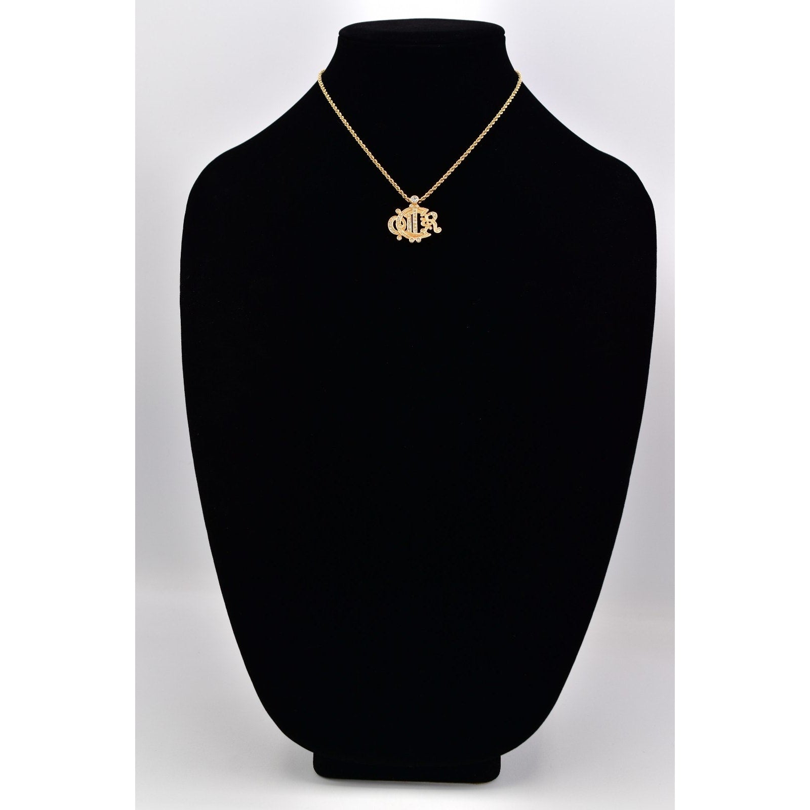 Christian Dior Crystal Insignia Monogram Logo Necklace