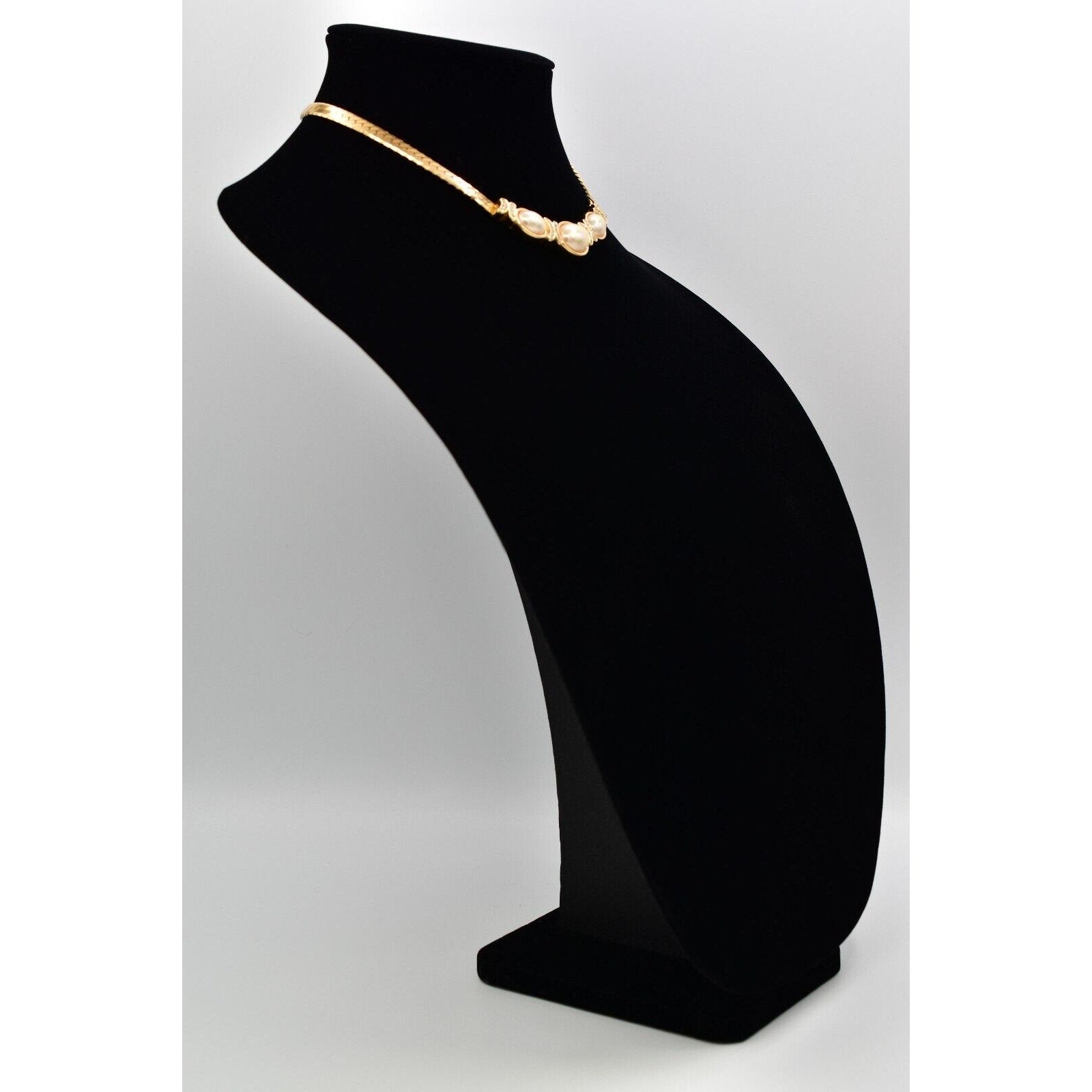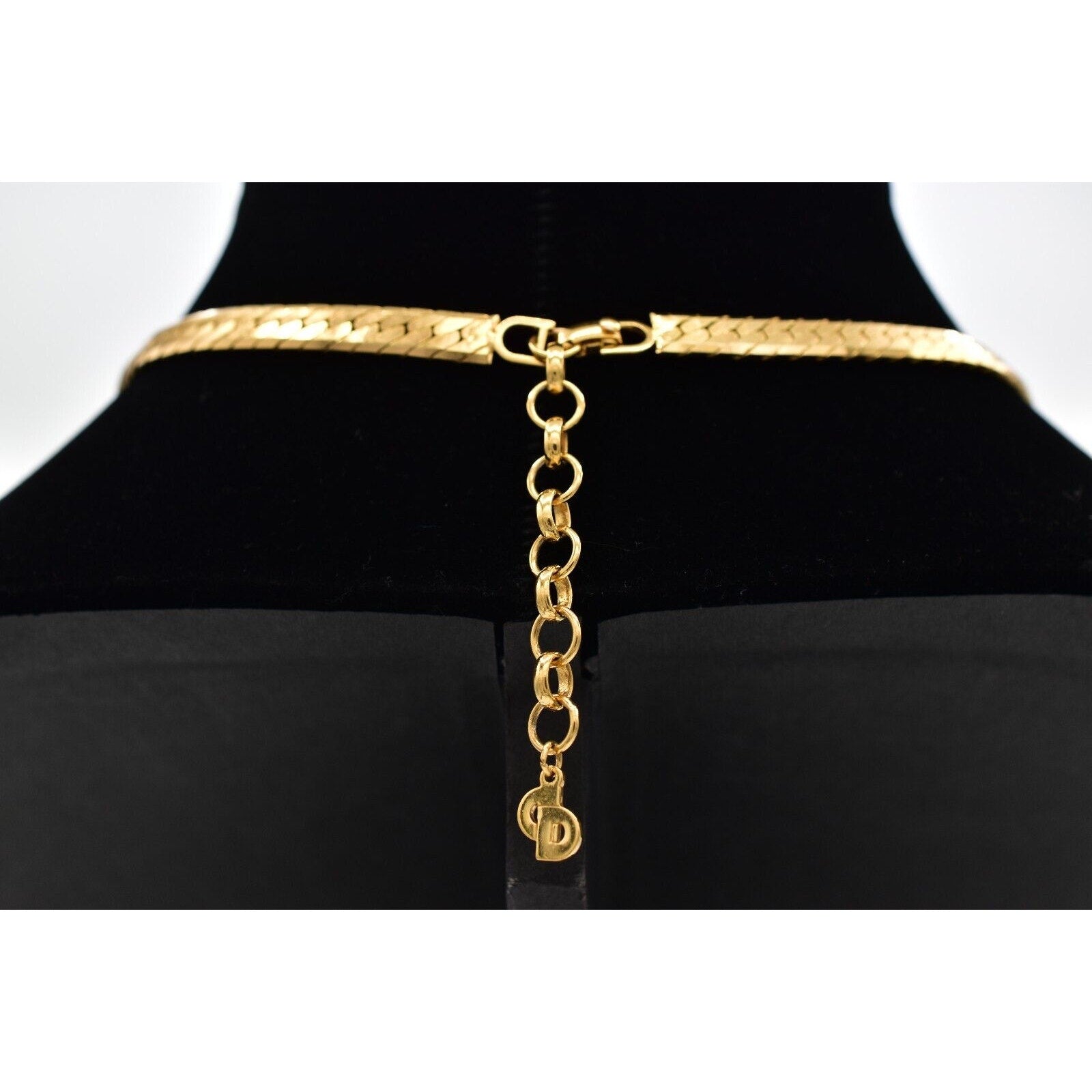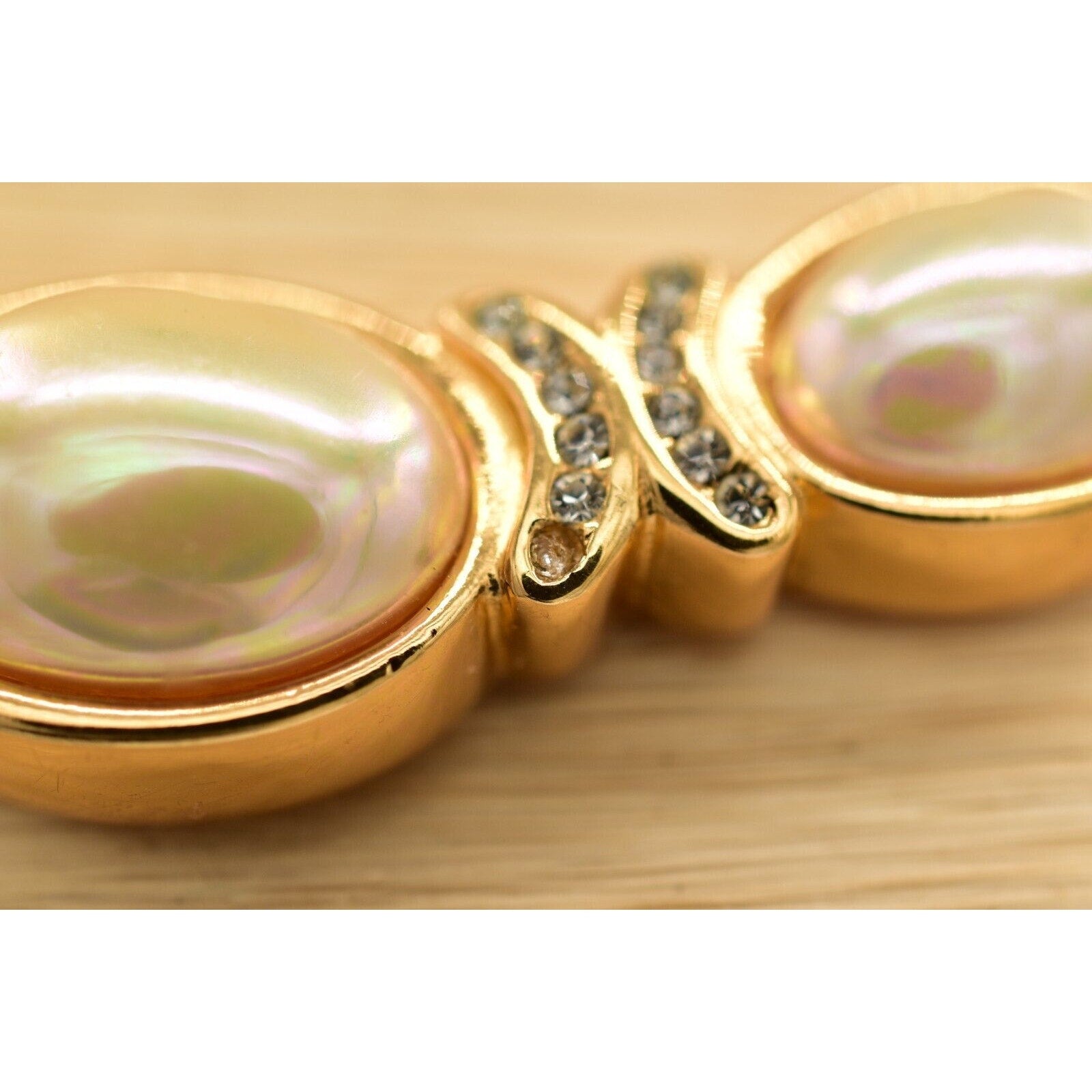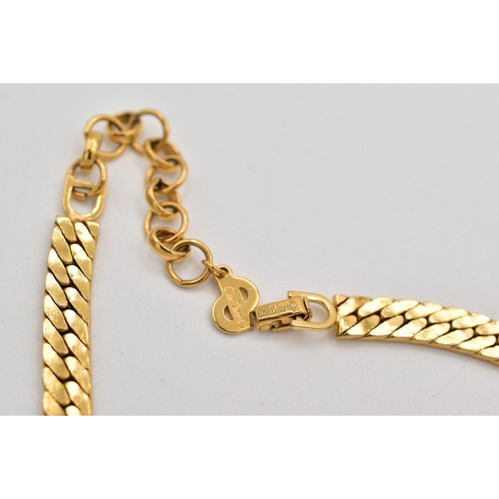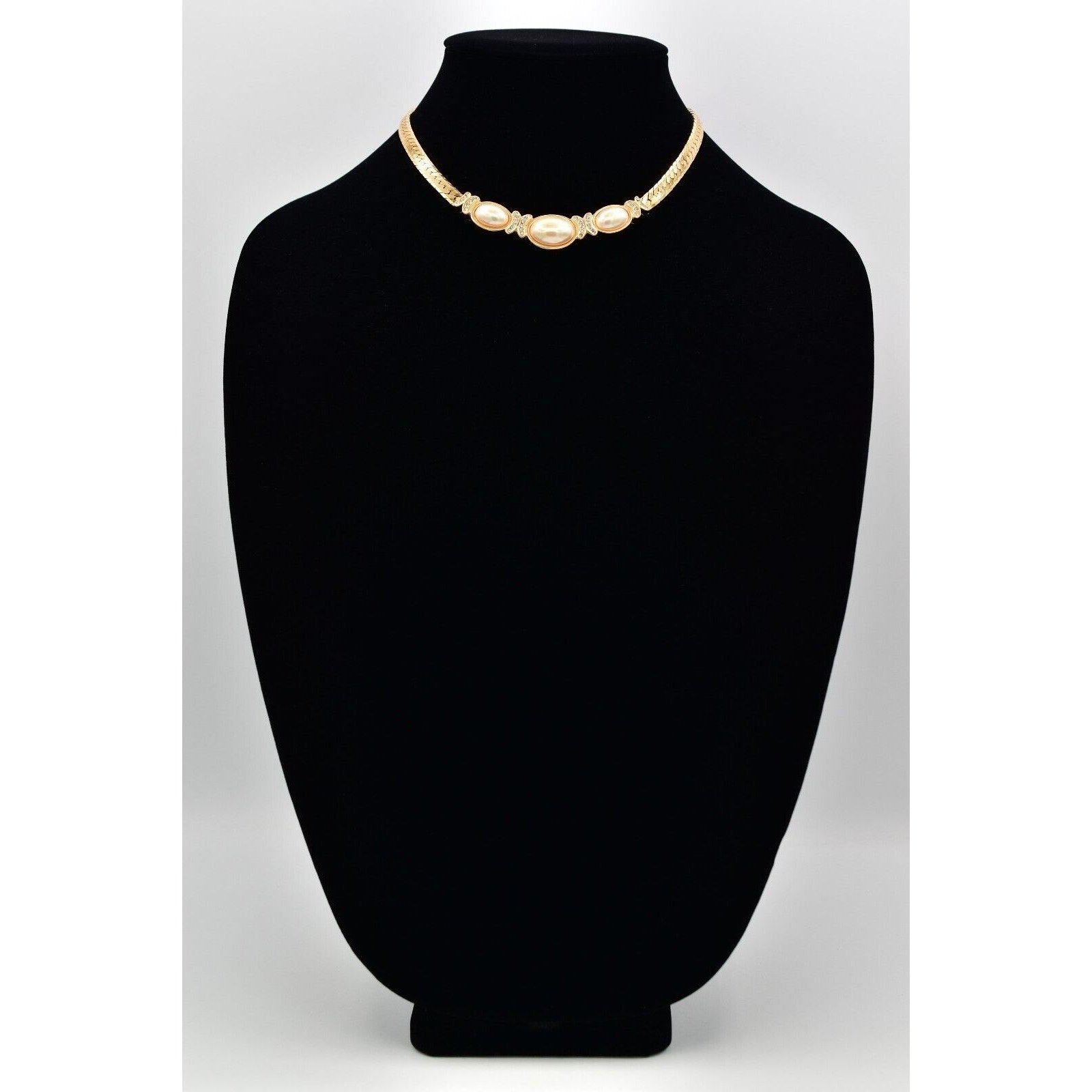 Vintage Christian Dior collar necklace with imitation pearls, pavé rhinestones and a chunky gold tone chain.