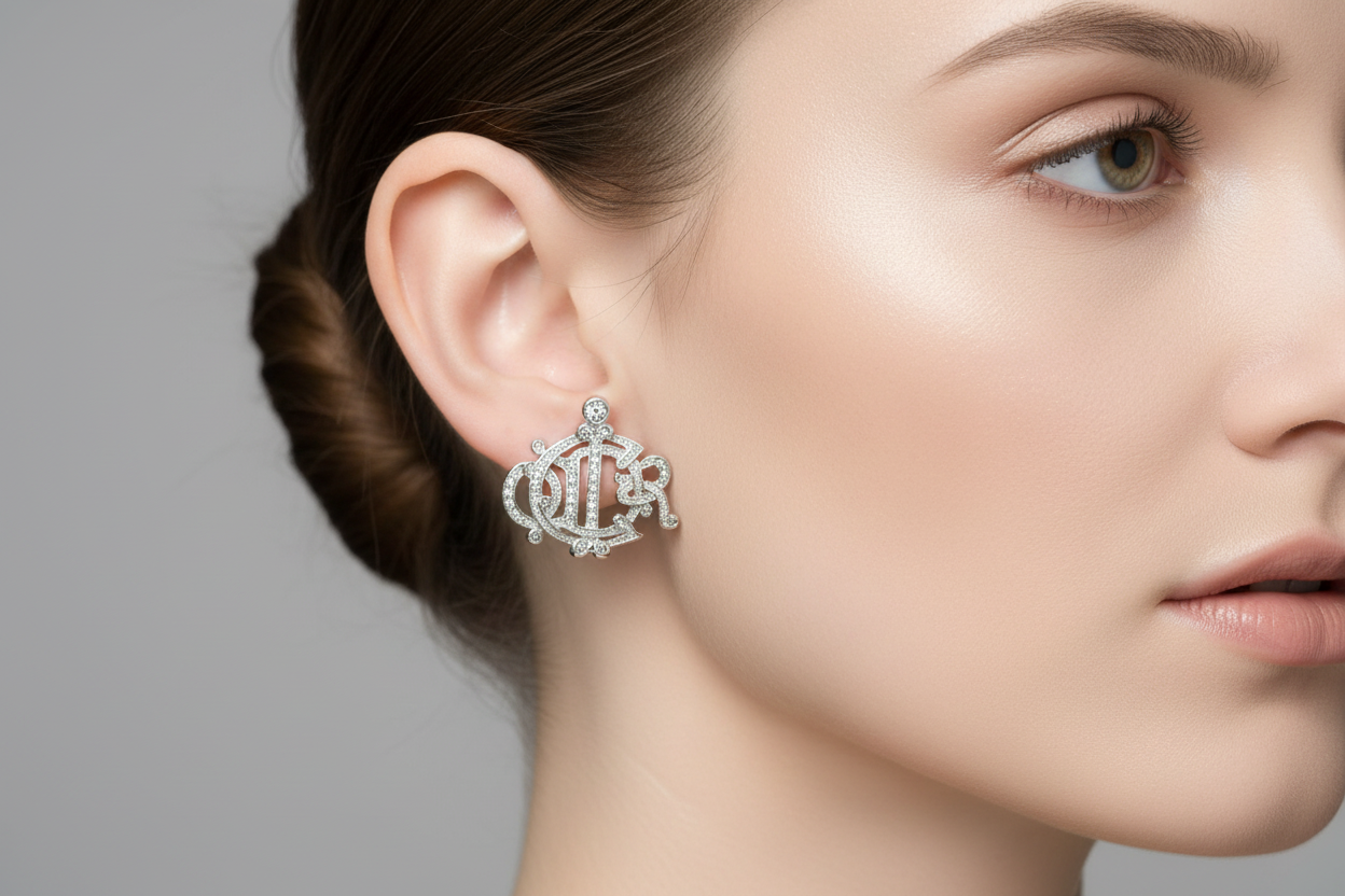 • Style: Insignia / crest-style logo earrings with Dior script