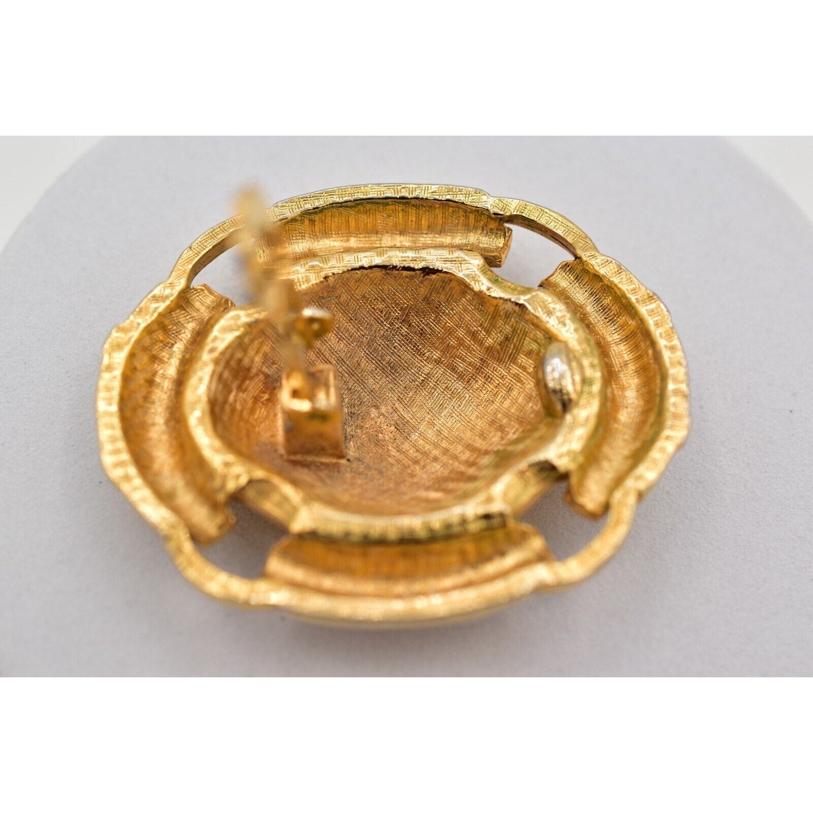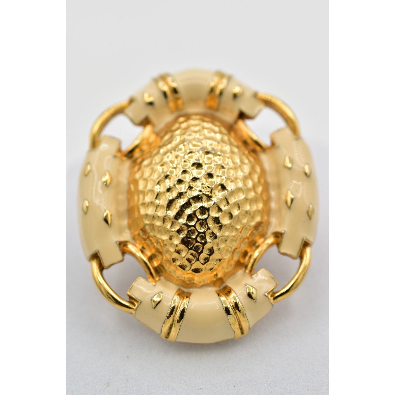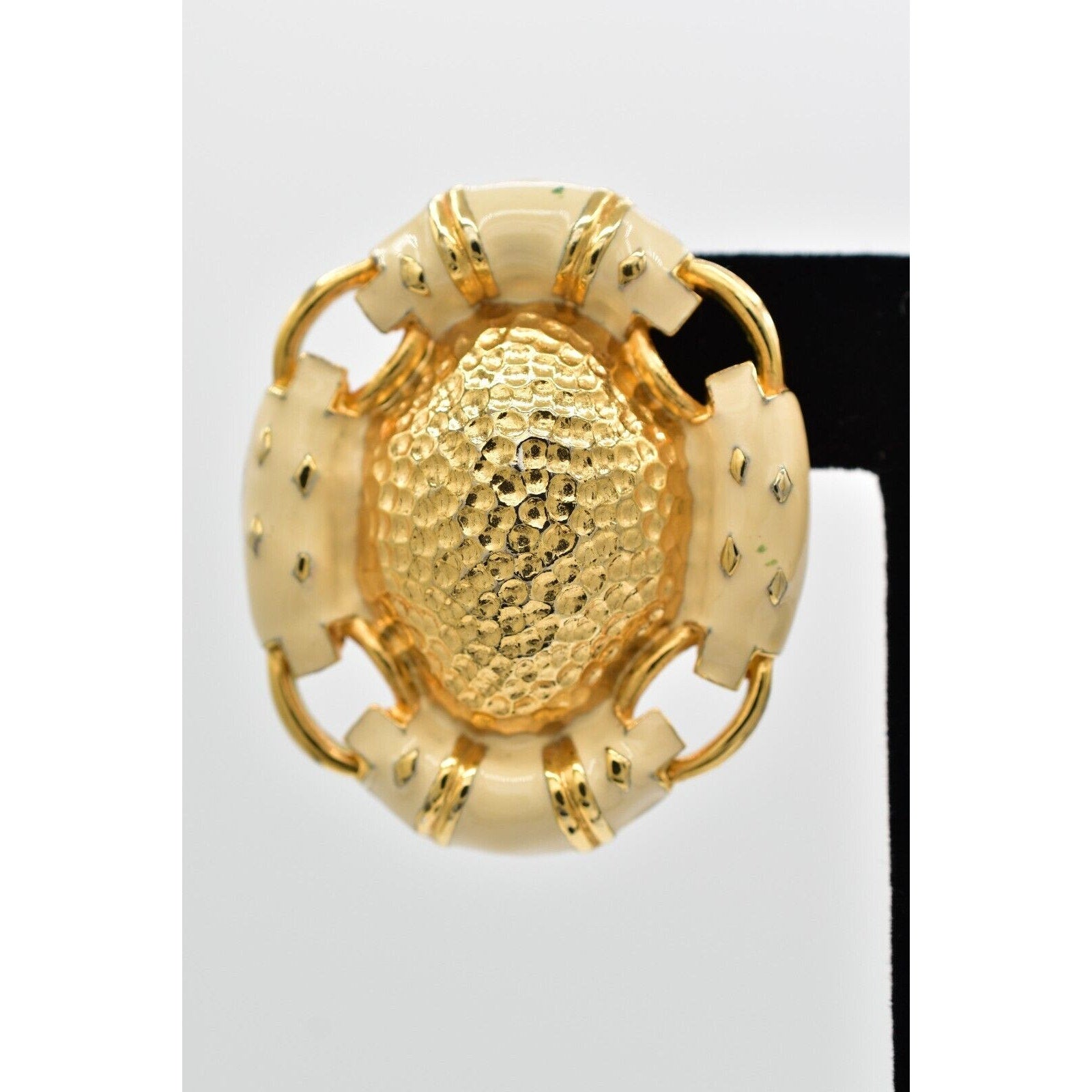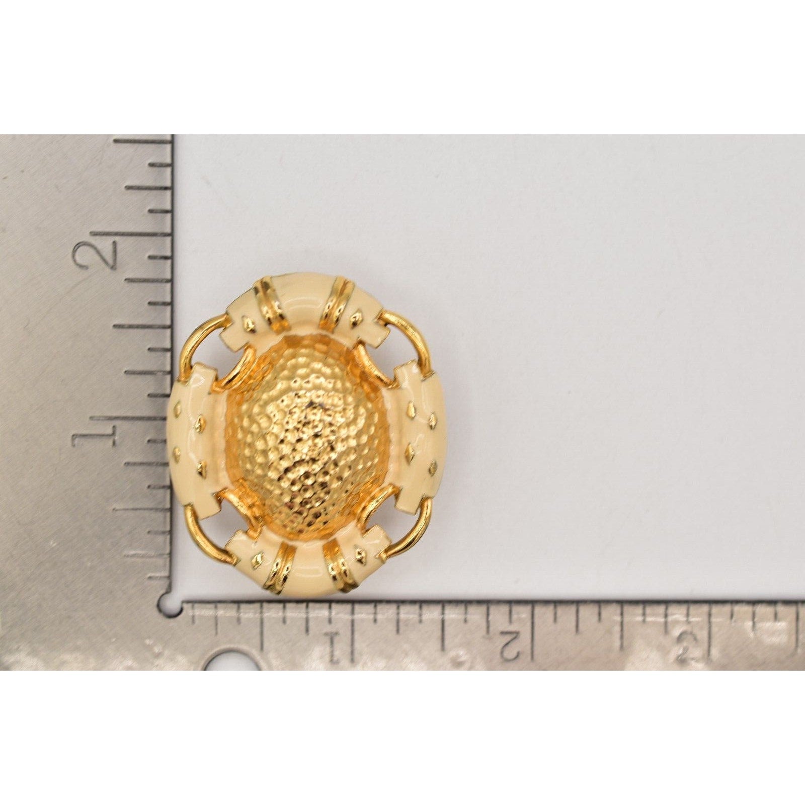 Chunky vintage earrings with creamy enamel and pebbled gold.