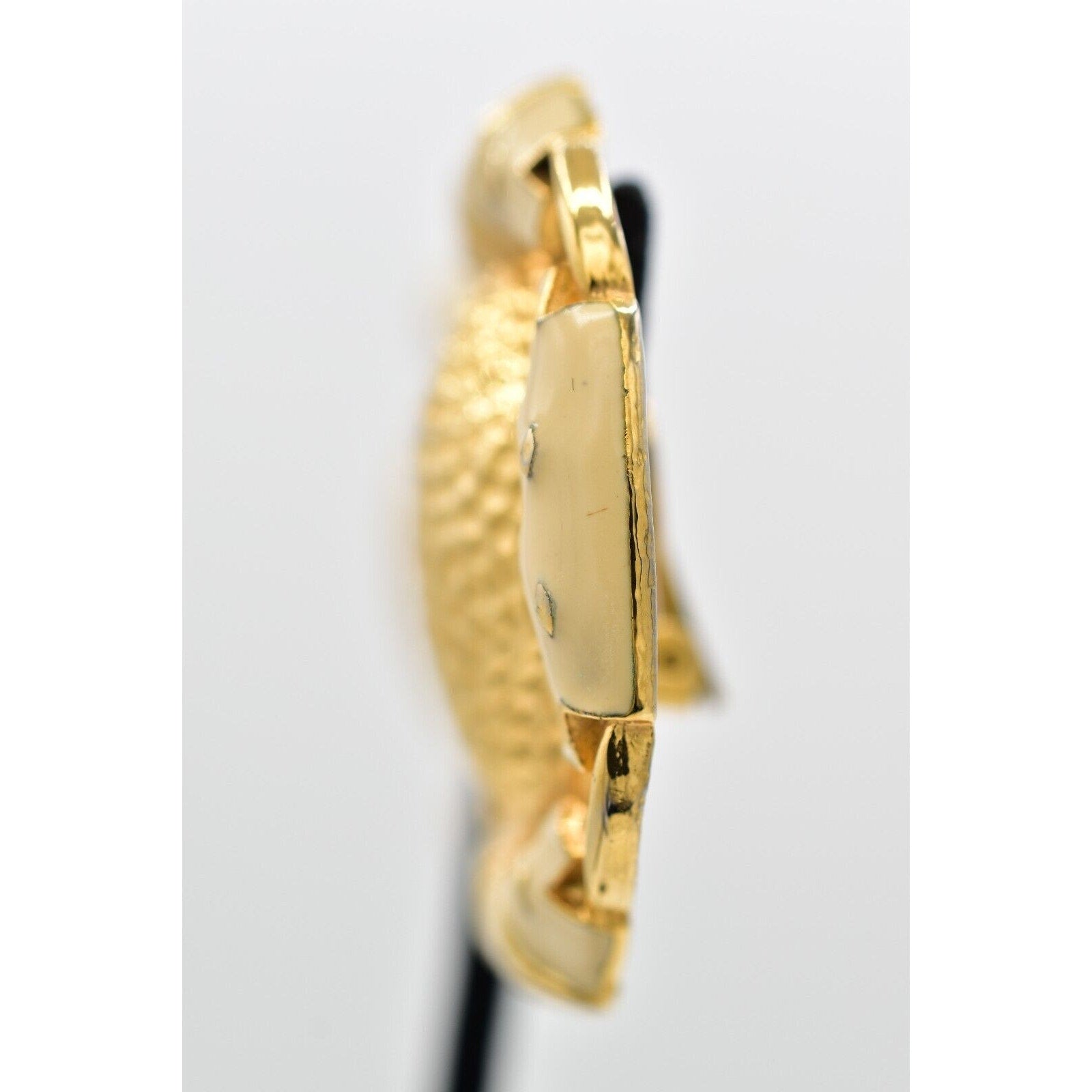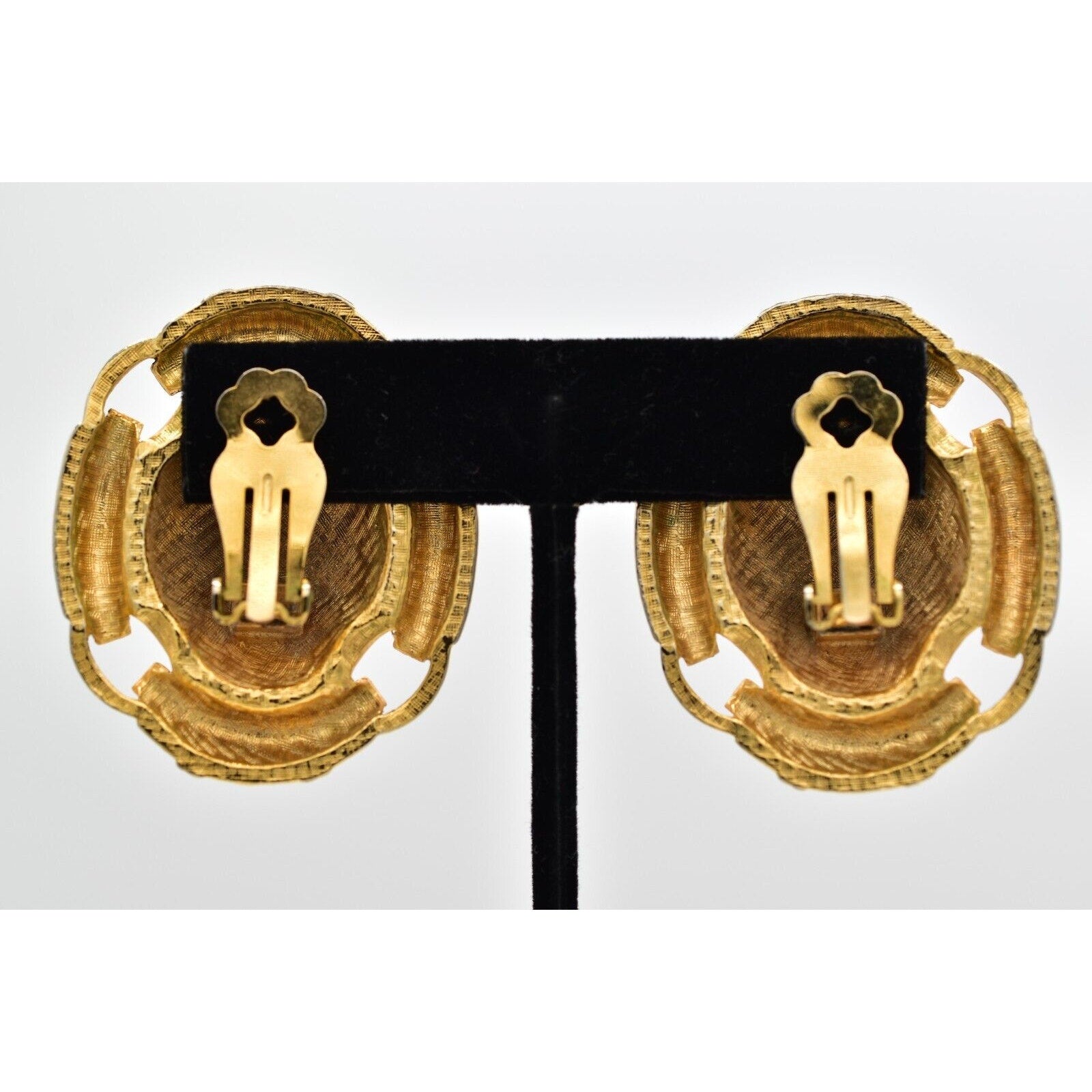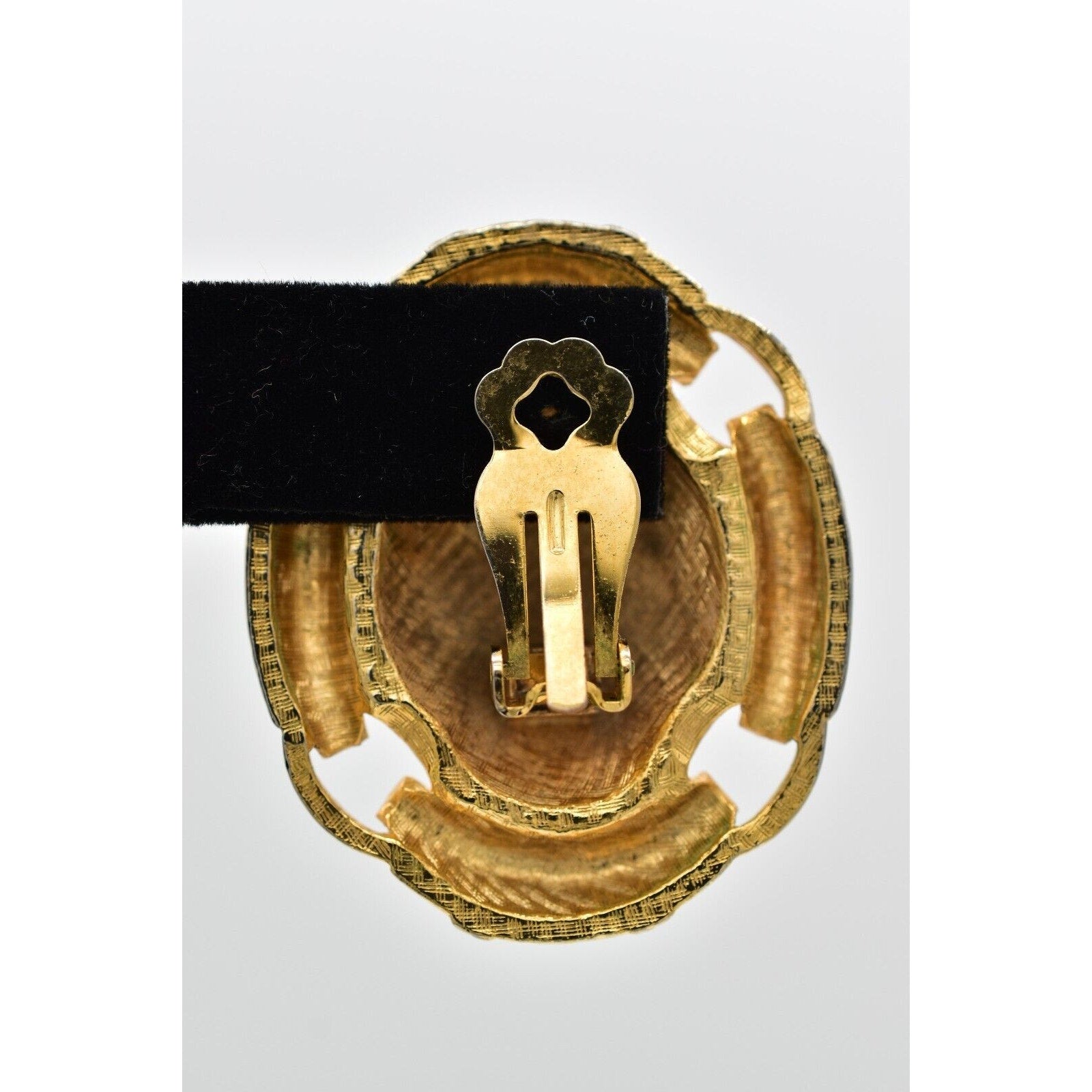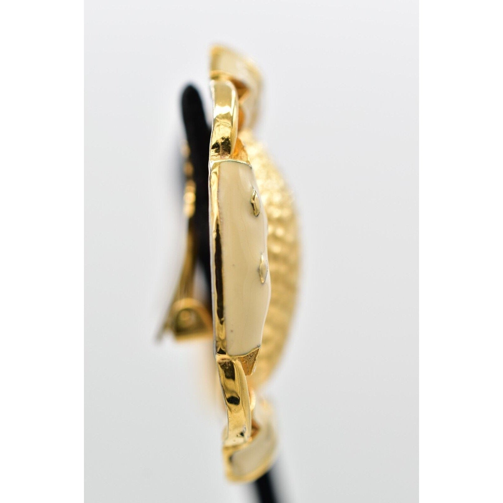 Chunky vintage earrings with creamy enamel and pebbled gold.