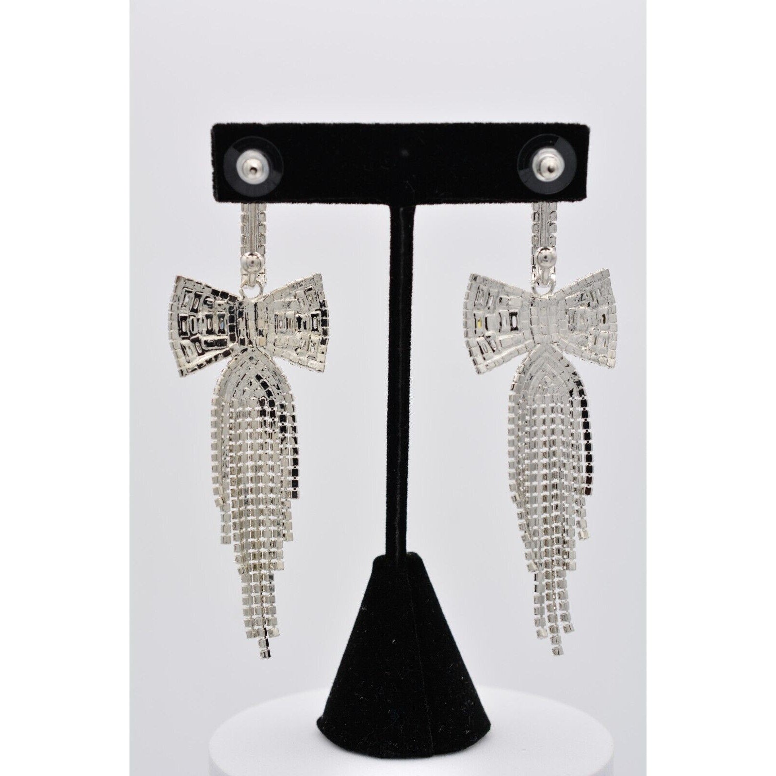 Crystal Fringe Bow Earrings
