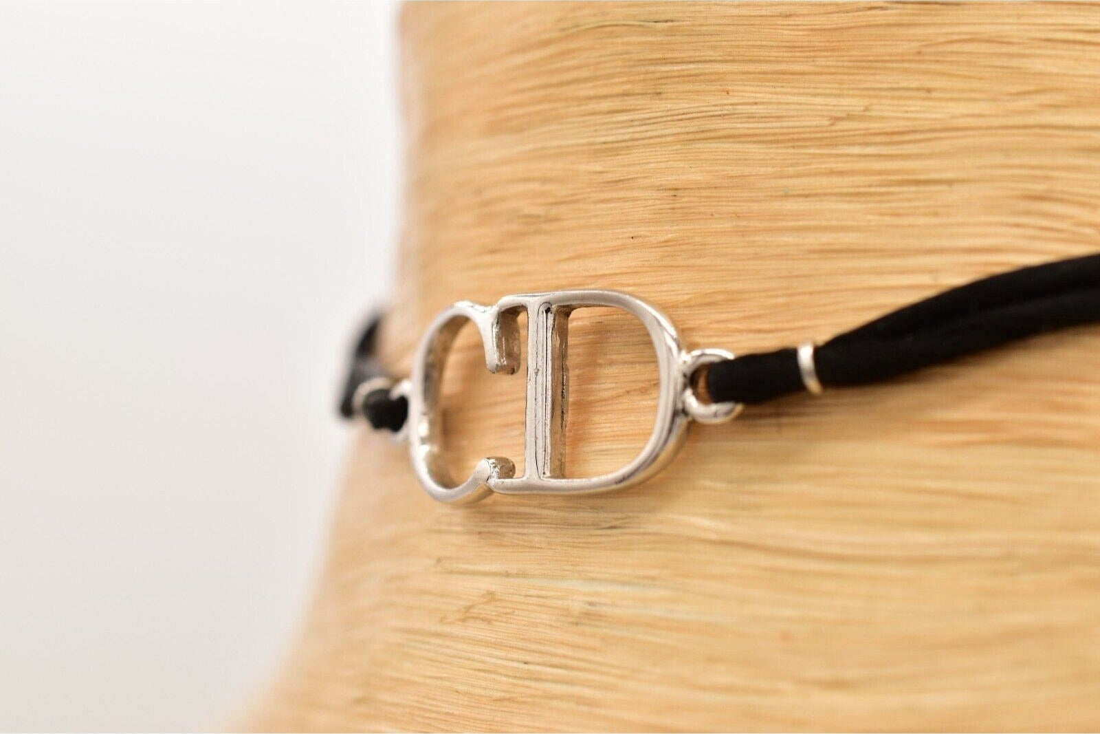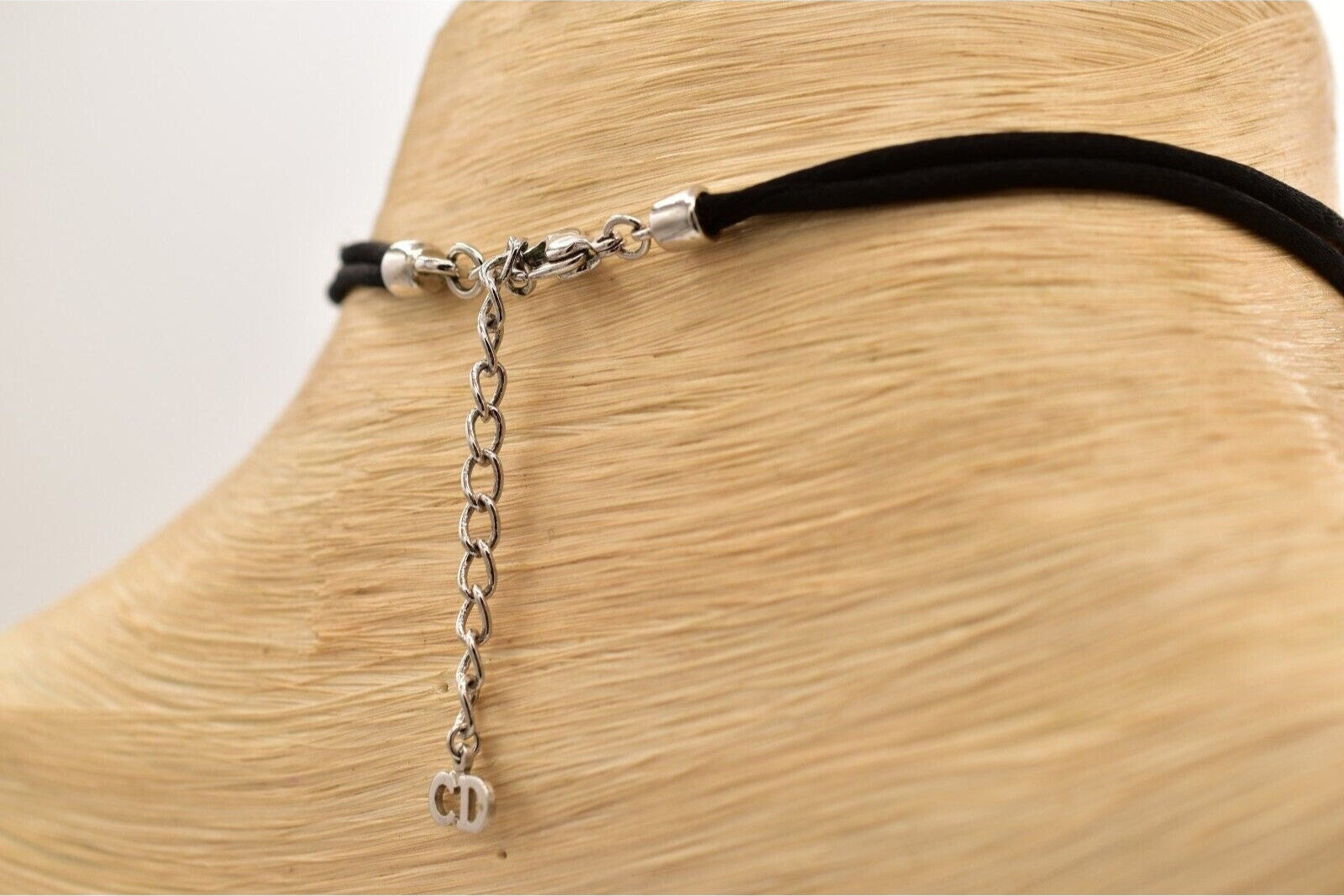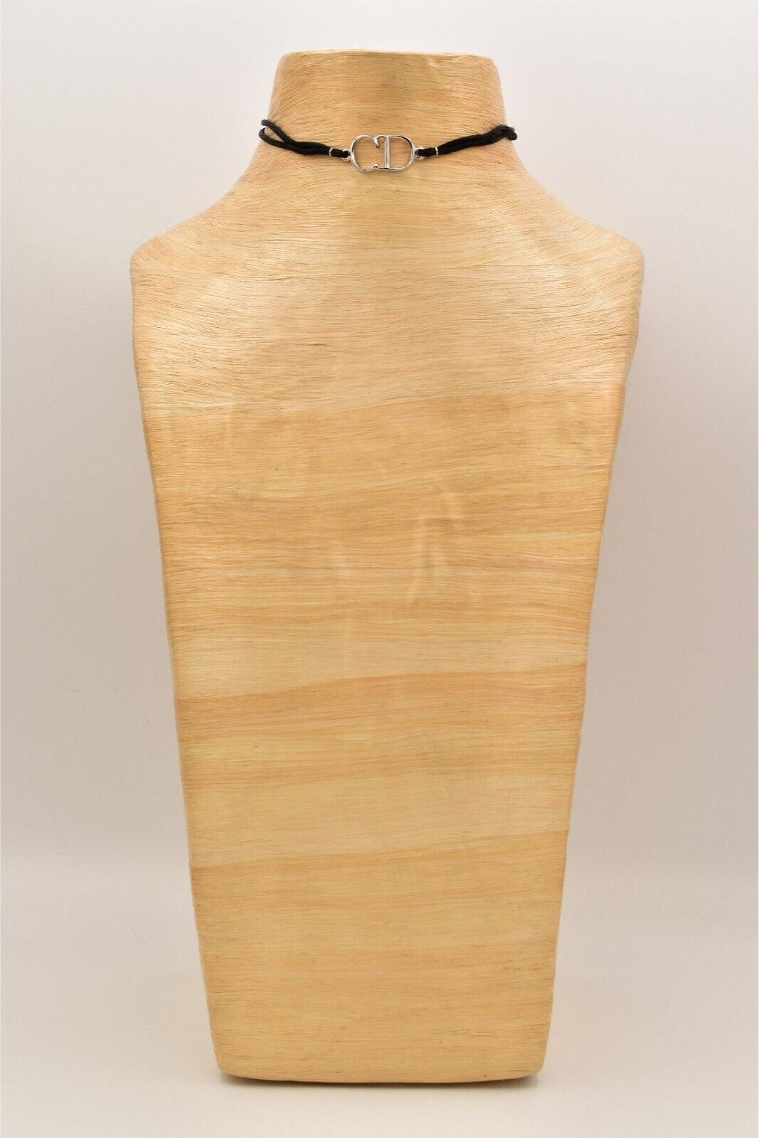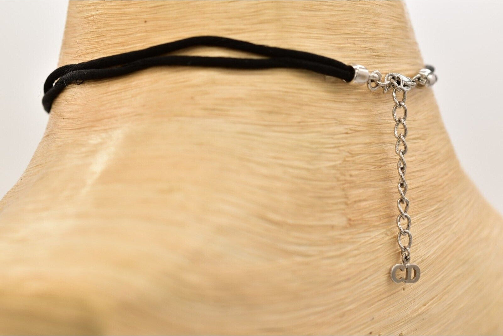 Christian Dior Y2K choker with silver CD logo center and black rope. Signed "Dior" on the CD tag and behind the logo.