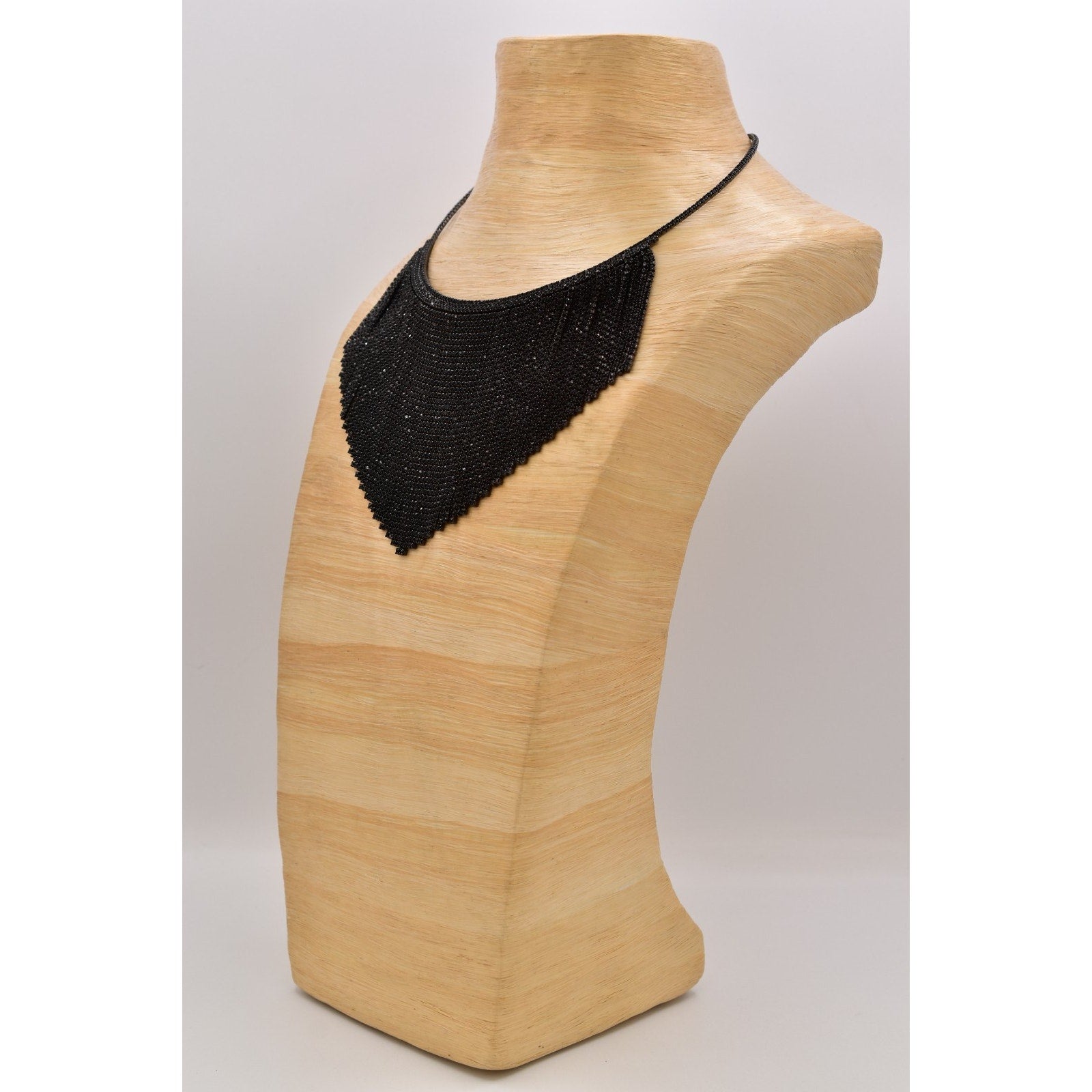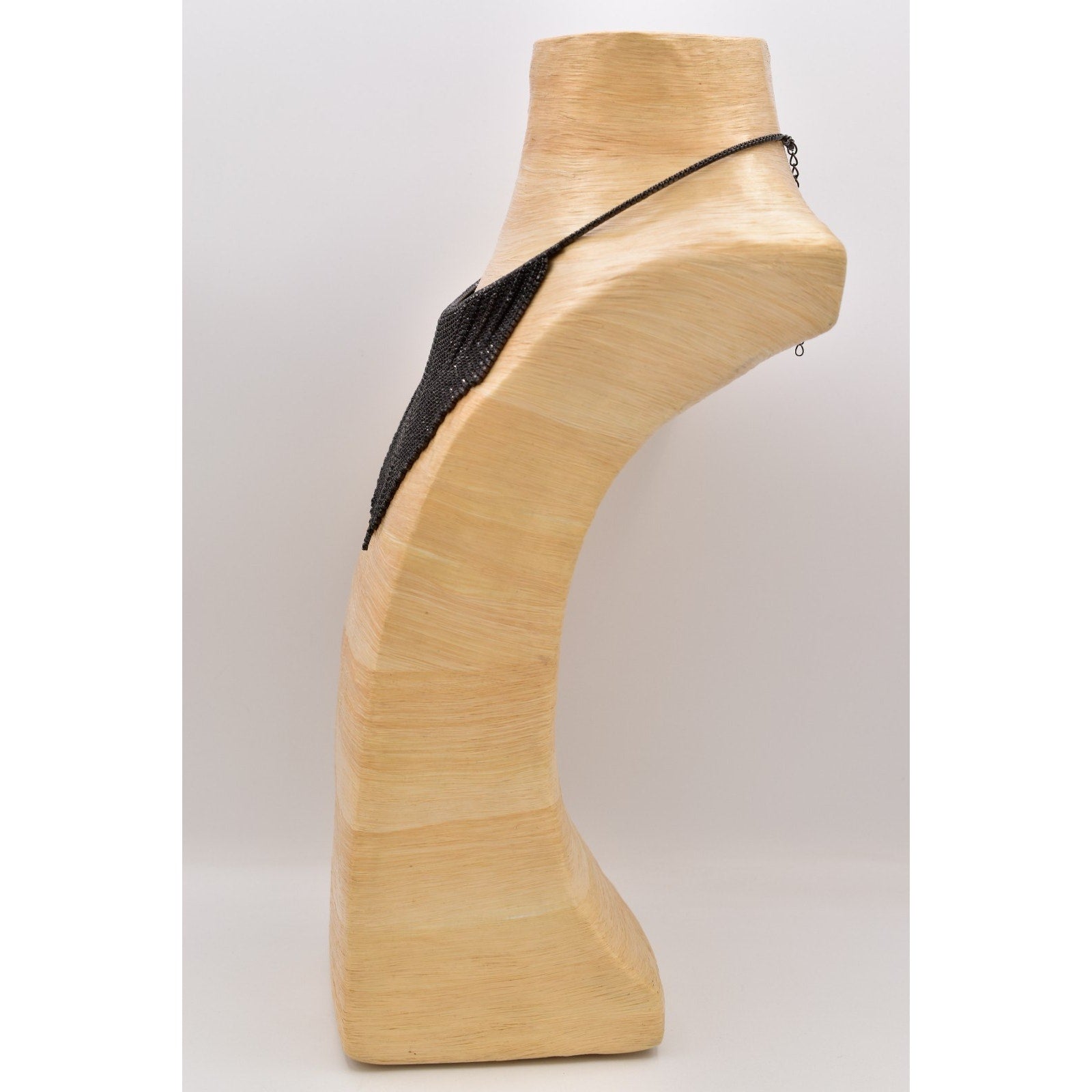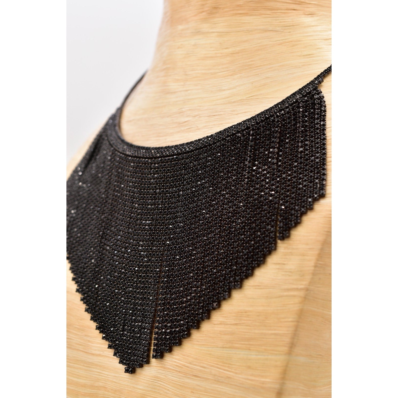 Sleek and dramatic, this vintage black rhinestone bib necklace drapes fluidly along the neckline, delivering bold, runway-worthy glamour with a modern, evening-ready edge.