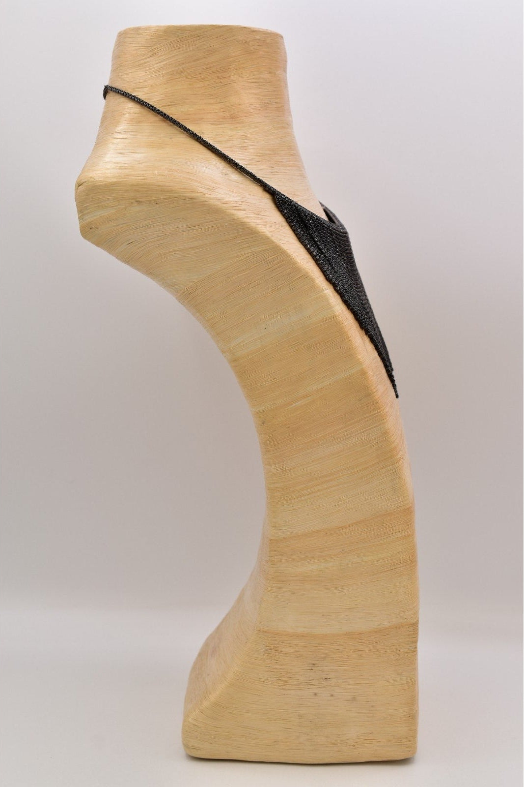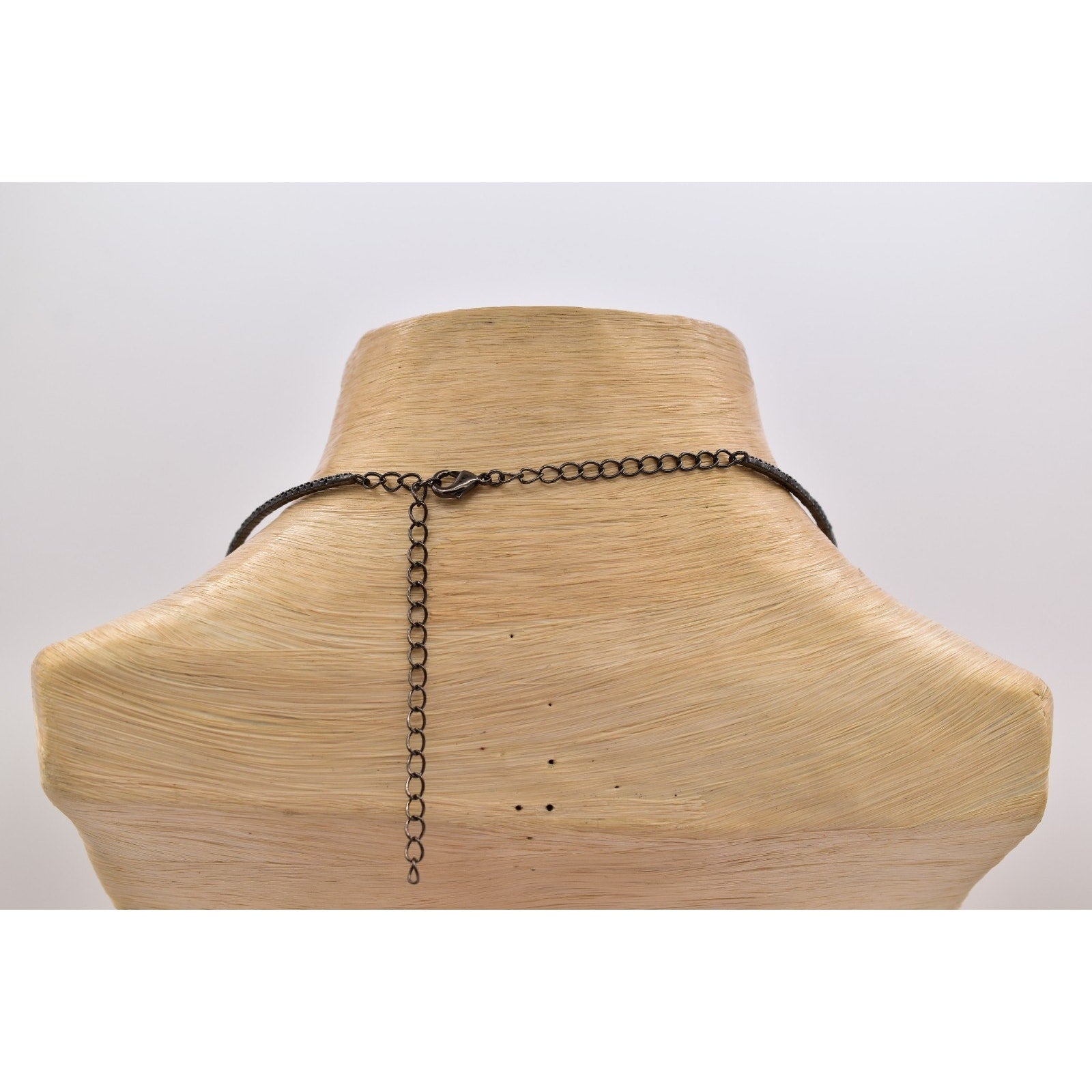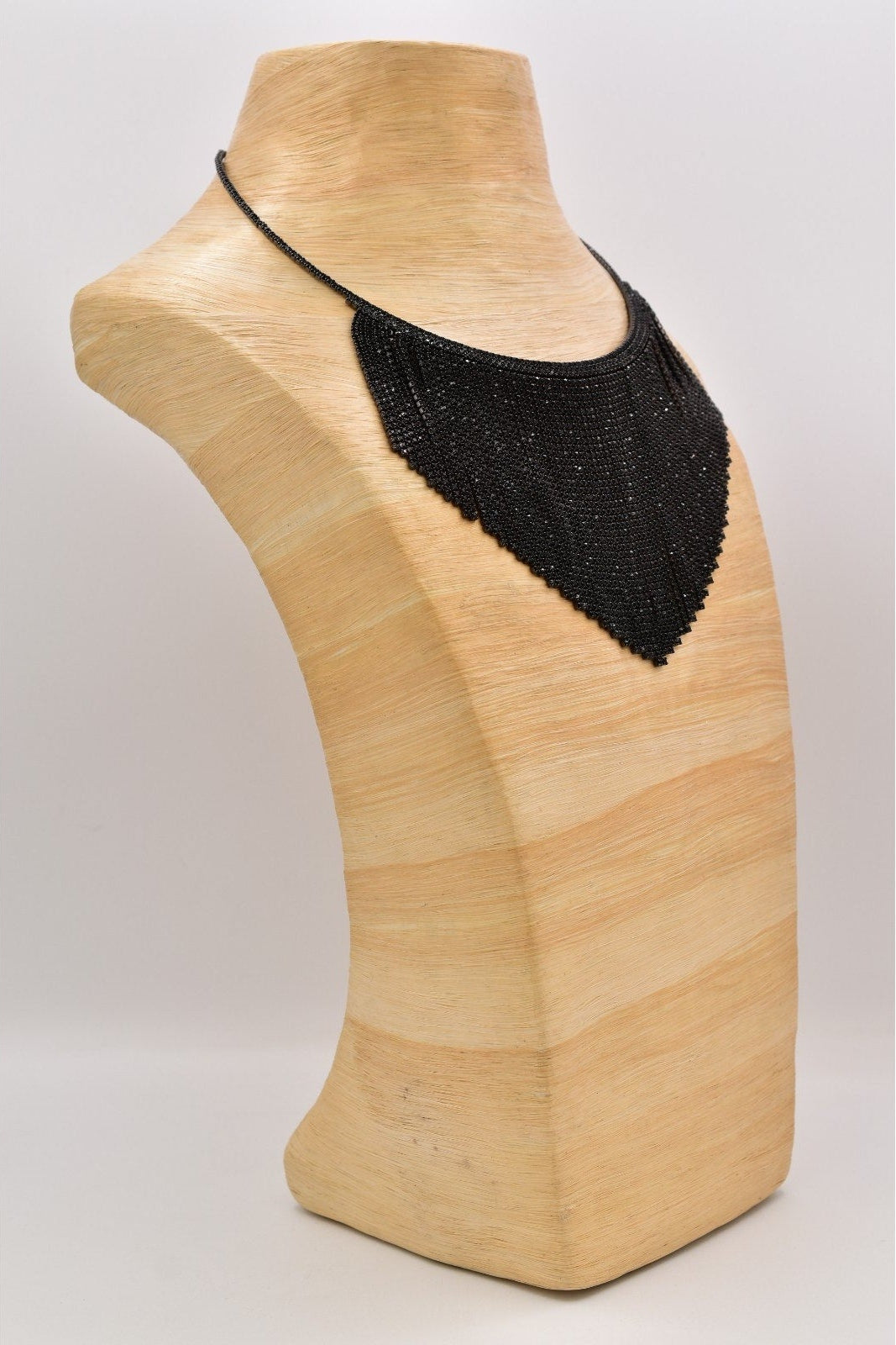 Sleek and dramatic, this vintage black rhinestone bib necklace drapes fluidly along the neckline, delivering bold, runway-worthy glamour with a modern, evening-ready edge.