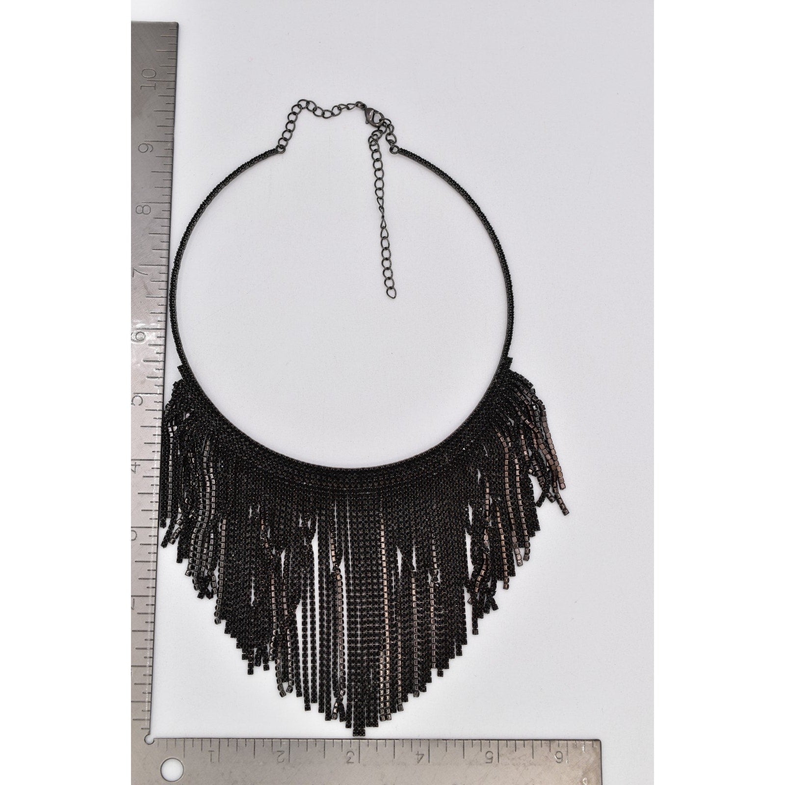 Dramatic Black Rhinestone Mesh Fringe Necklace