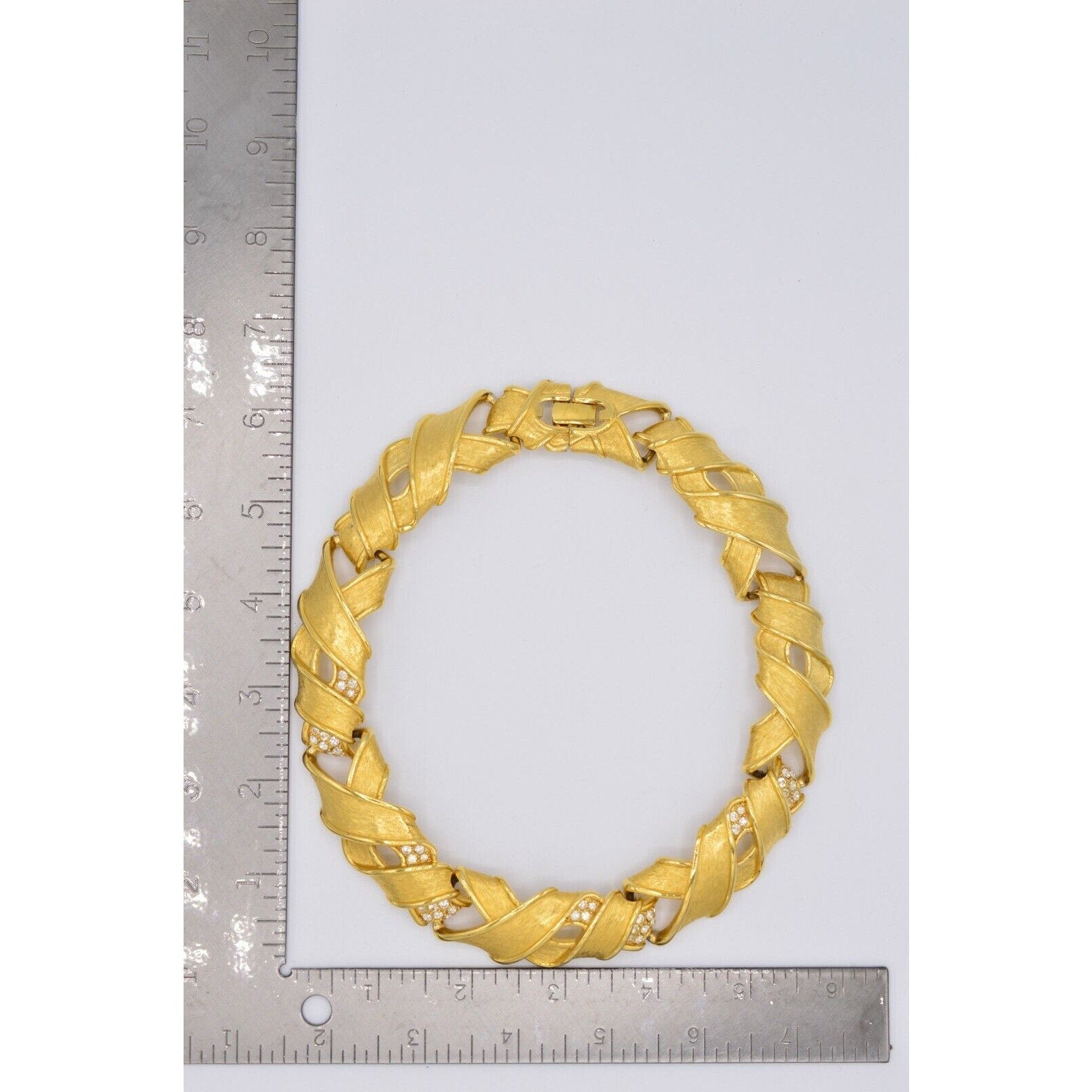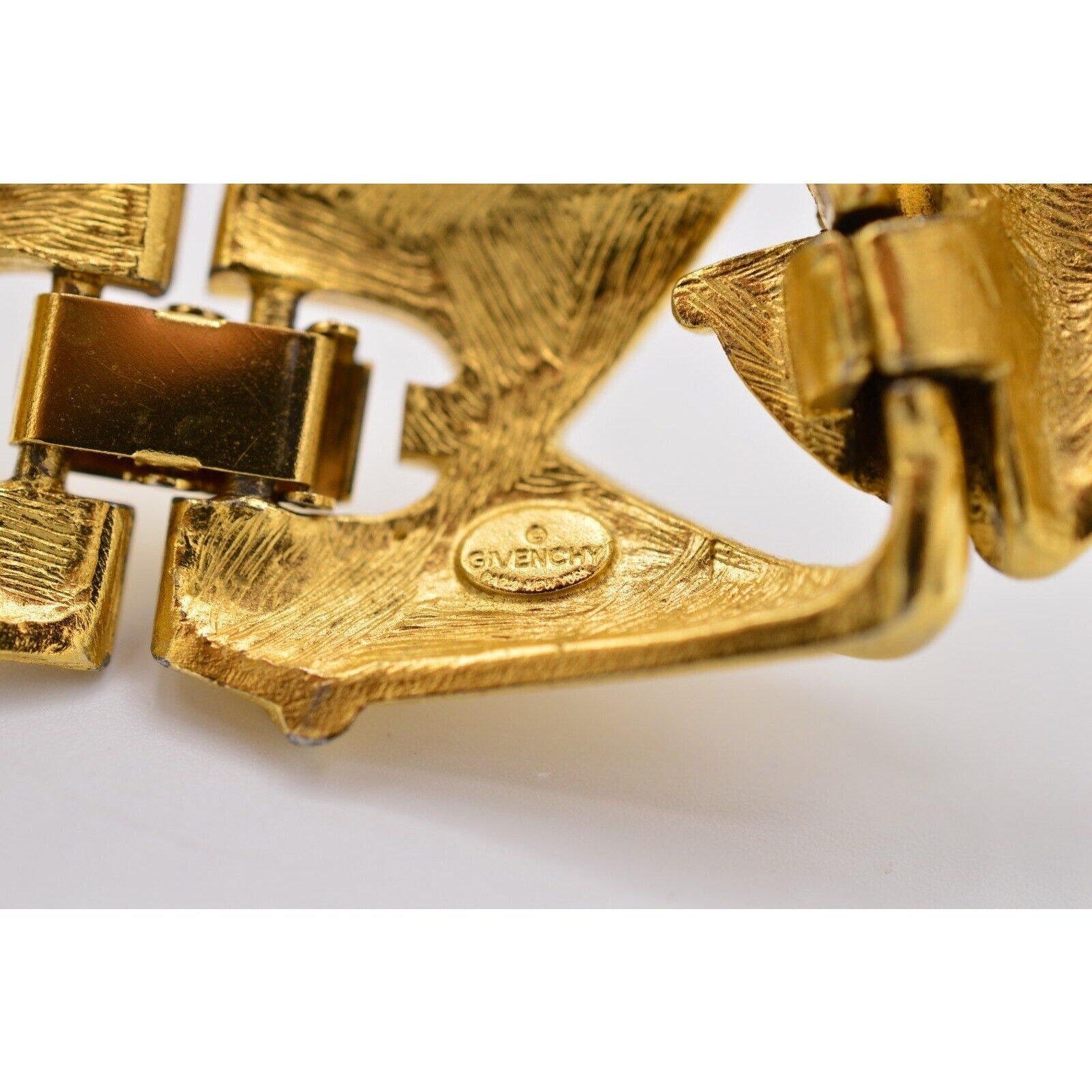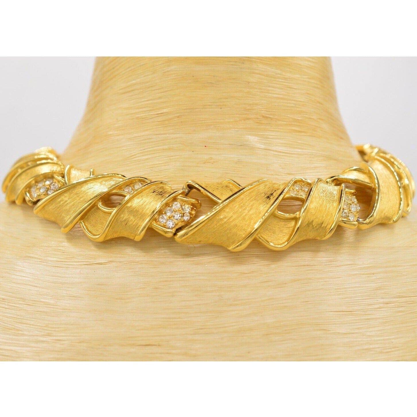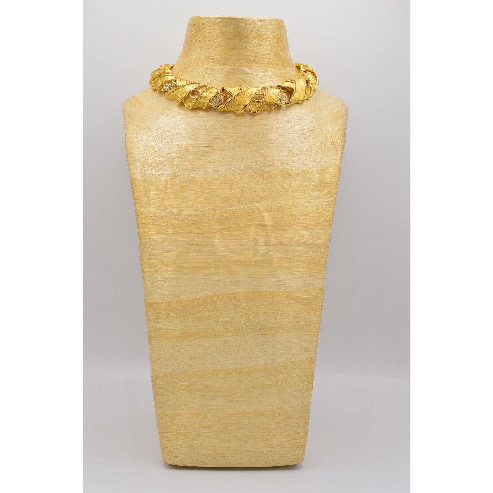 Bold and elegant vintage Givenchy collar necklace featuring sculptural brushed gold links accented with sparkling crystal details. A timeless 1980s designer statement with classic runway appeal.