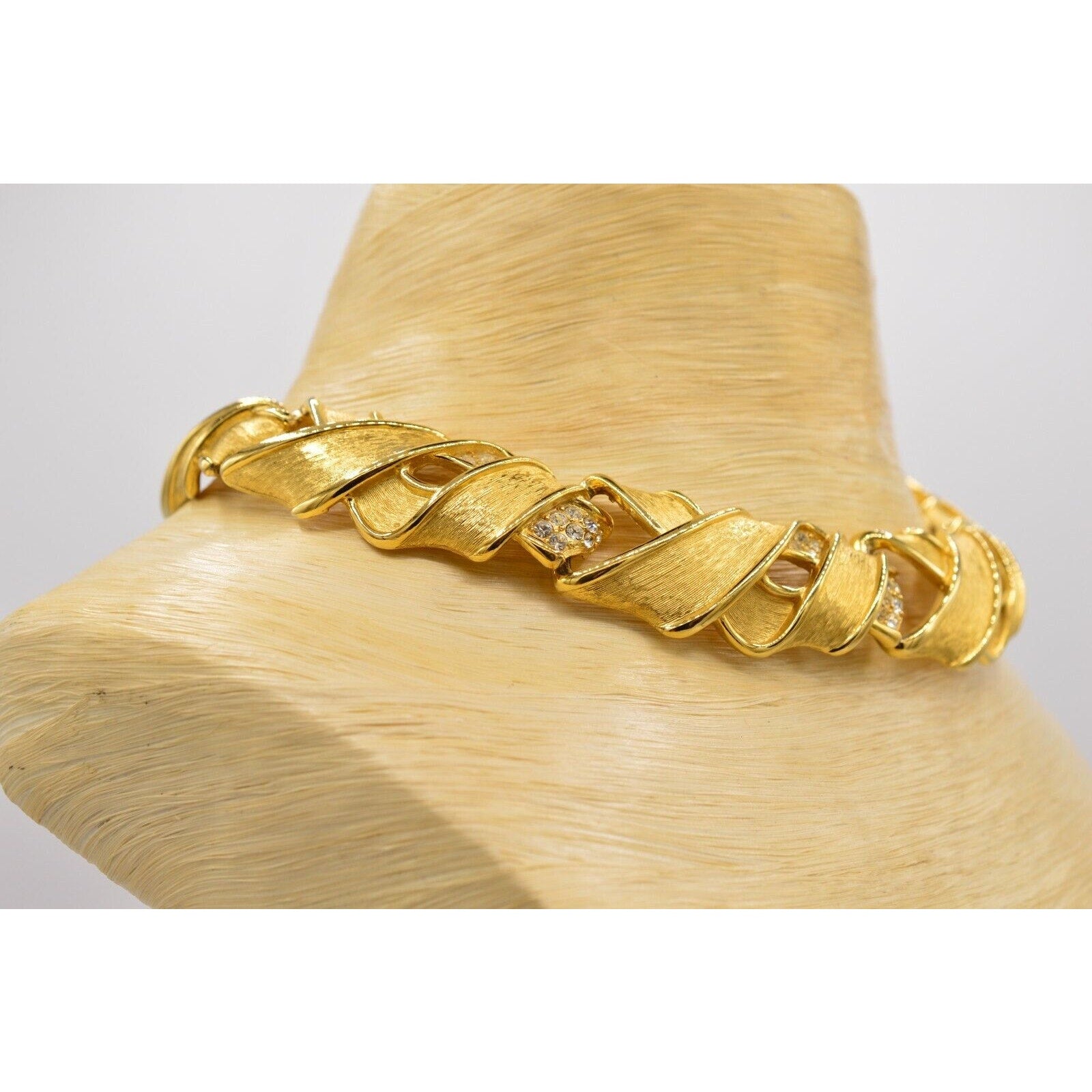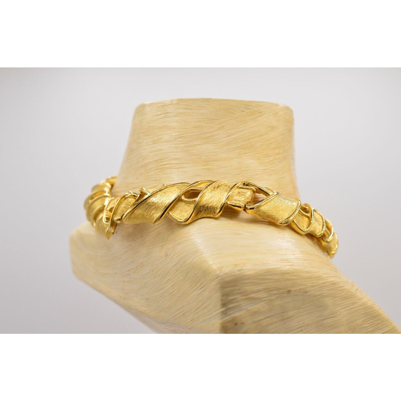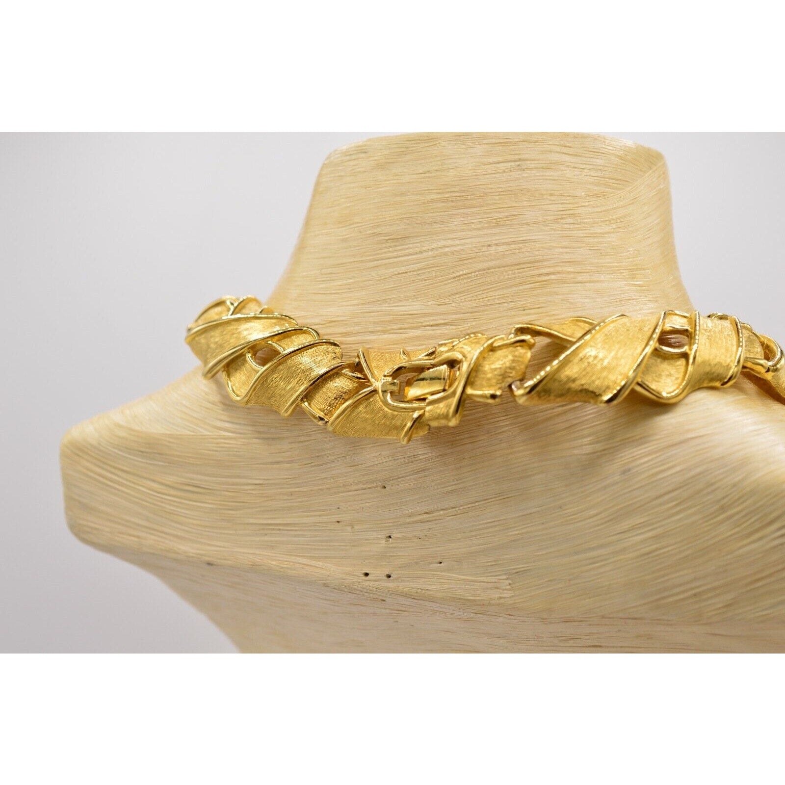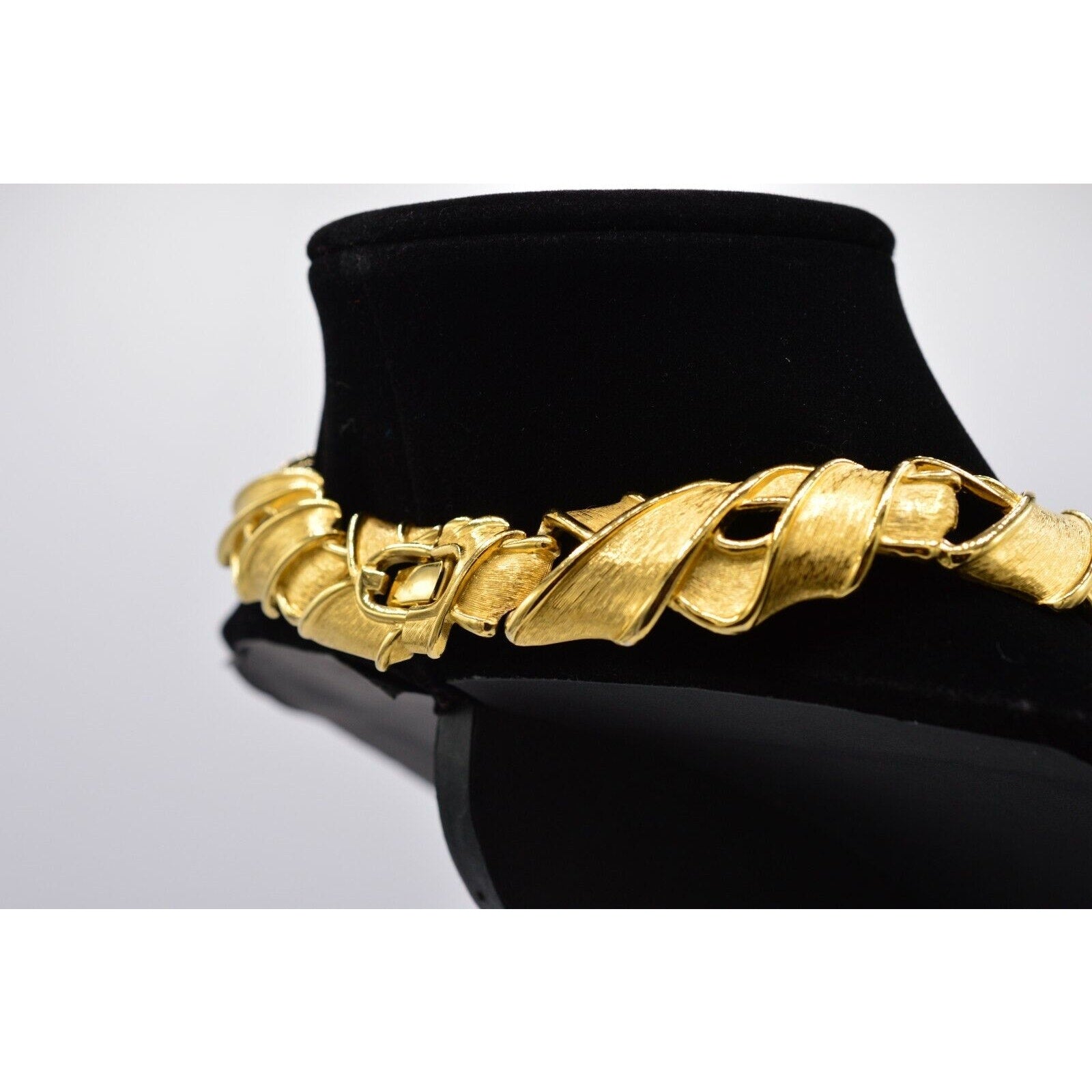 Bold and elegant vintage Givenchy collar necklace featuring sculptural brushed gold links accented with sparkling crystal details. A timeless 1980s designer statement with classic runway appeal.