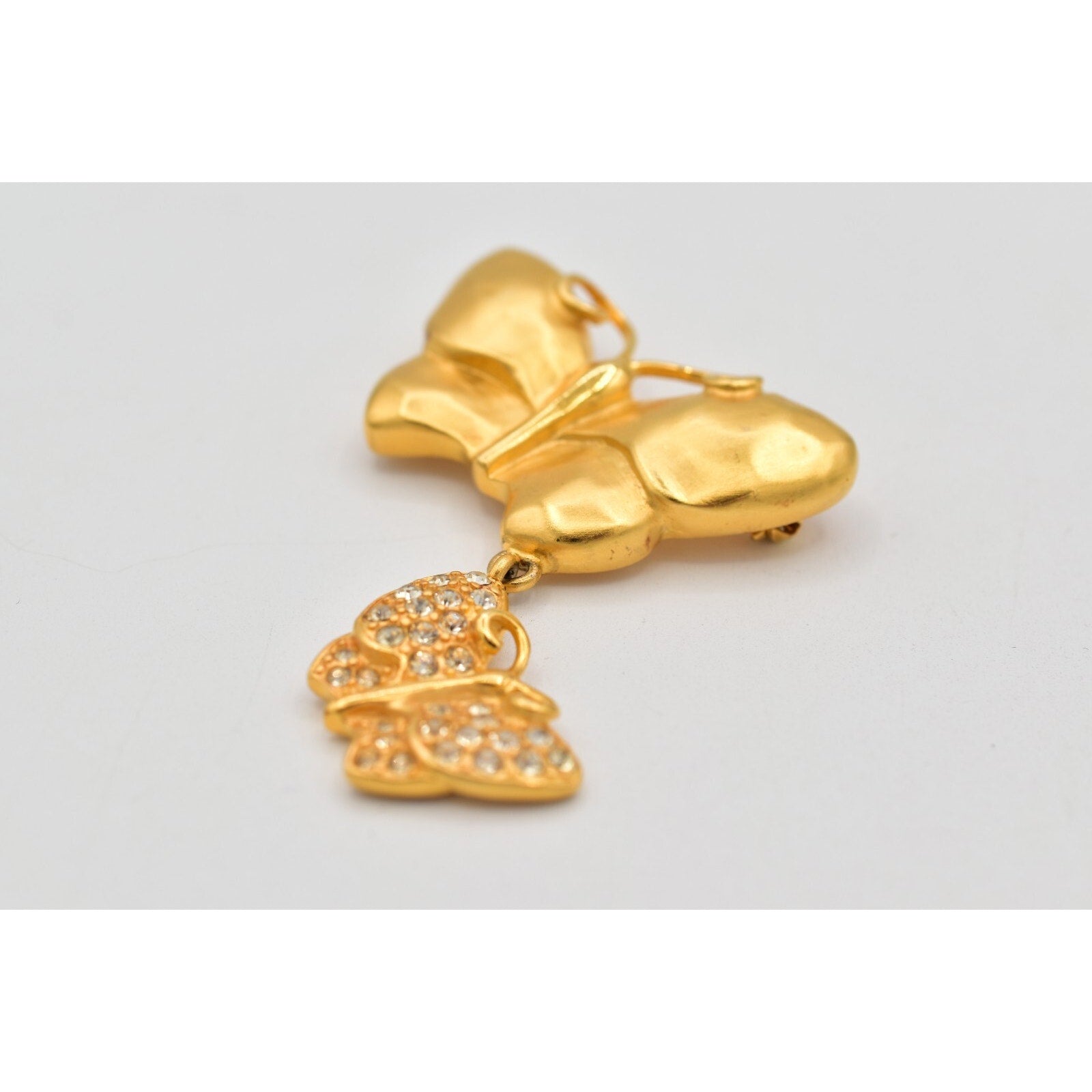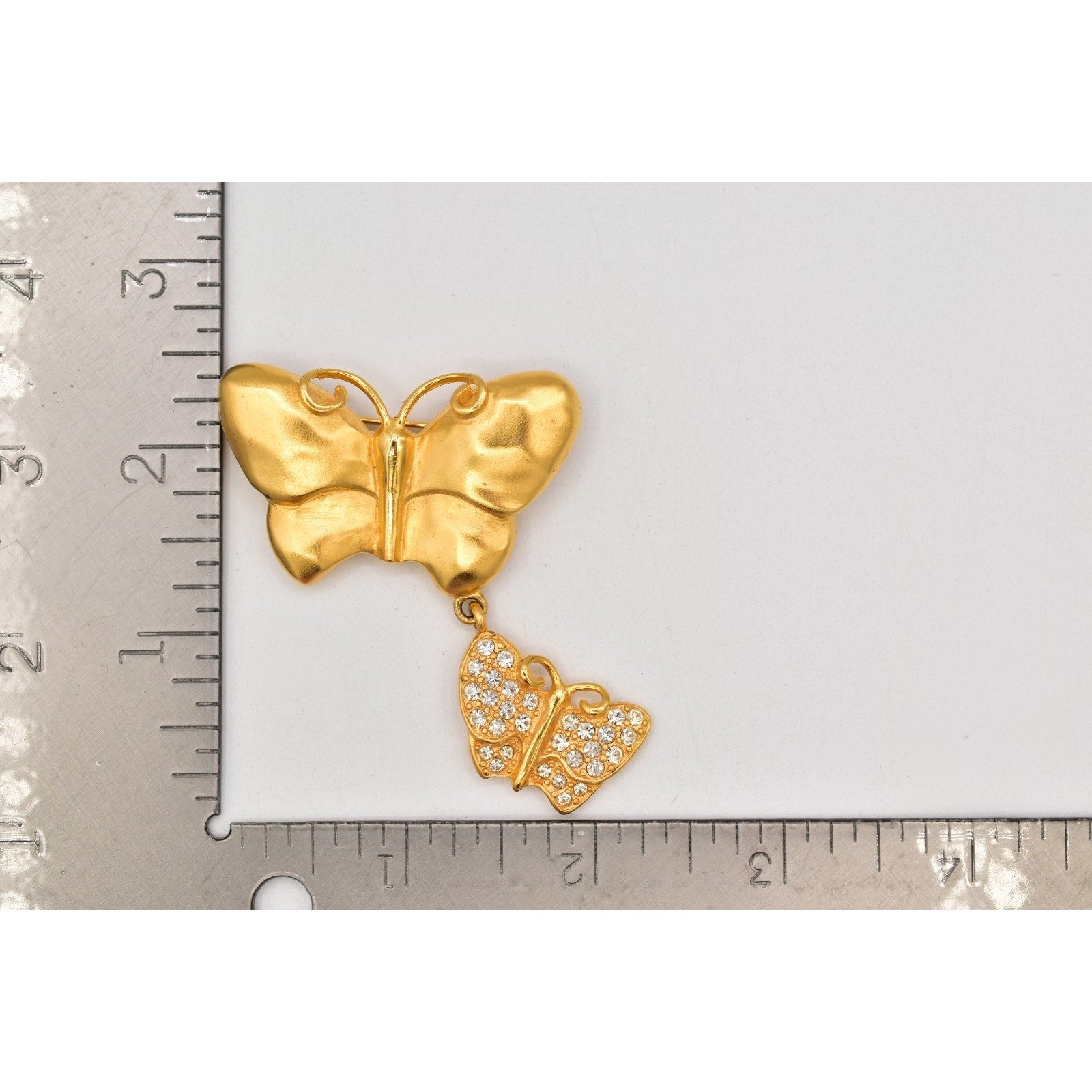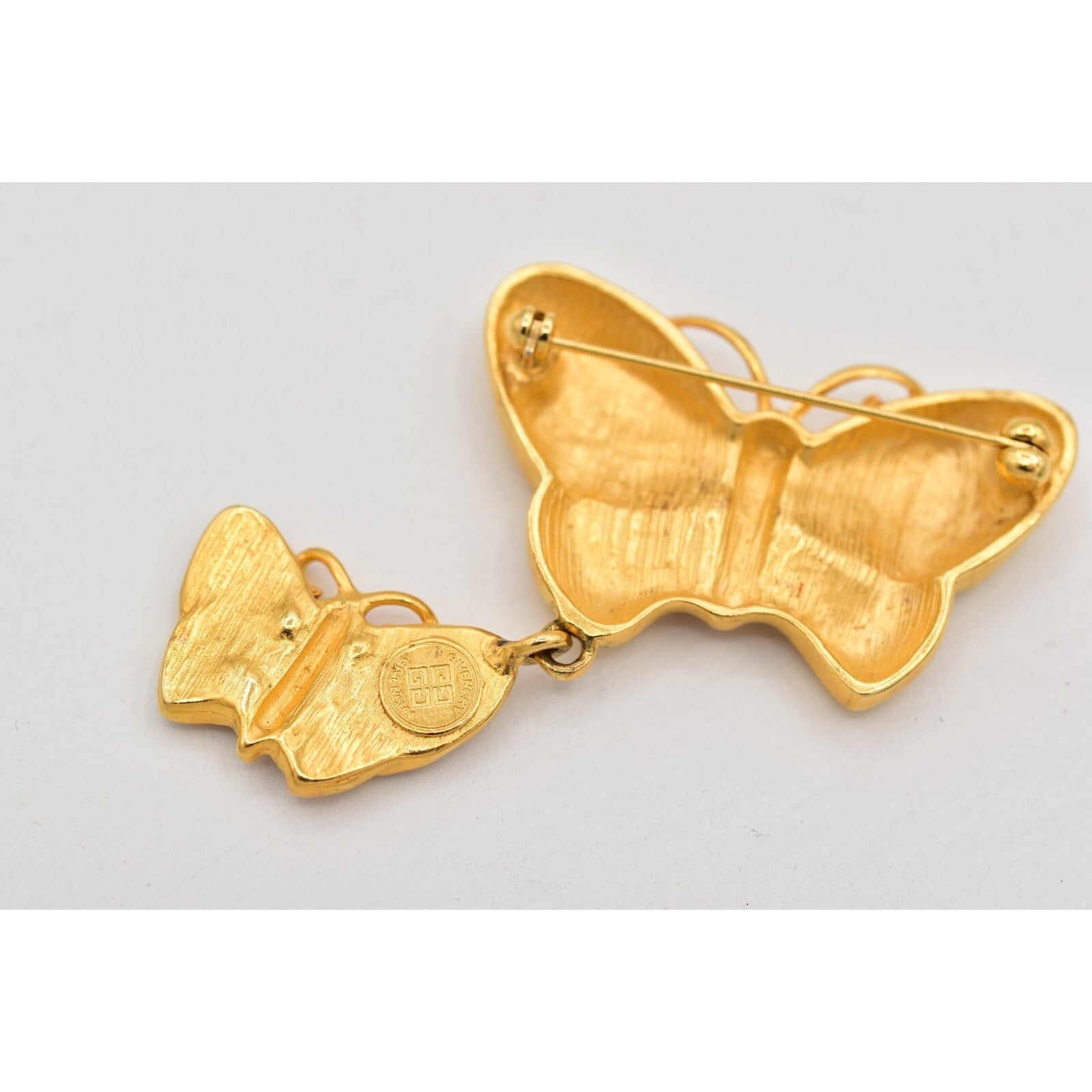 Vintage Givenchy butterfly pin with crystals and matte gold.