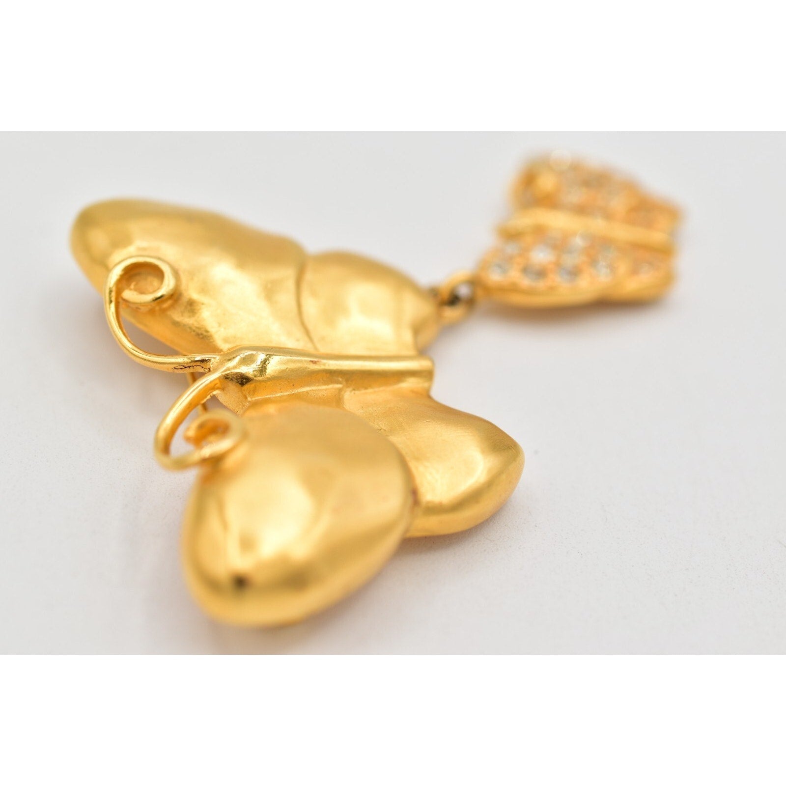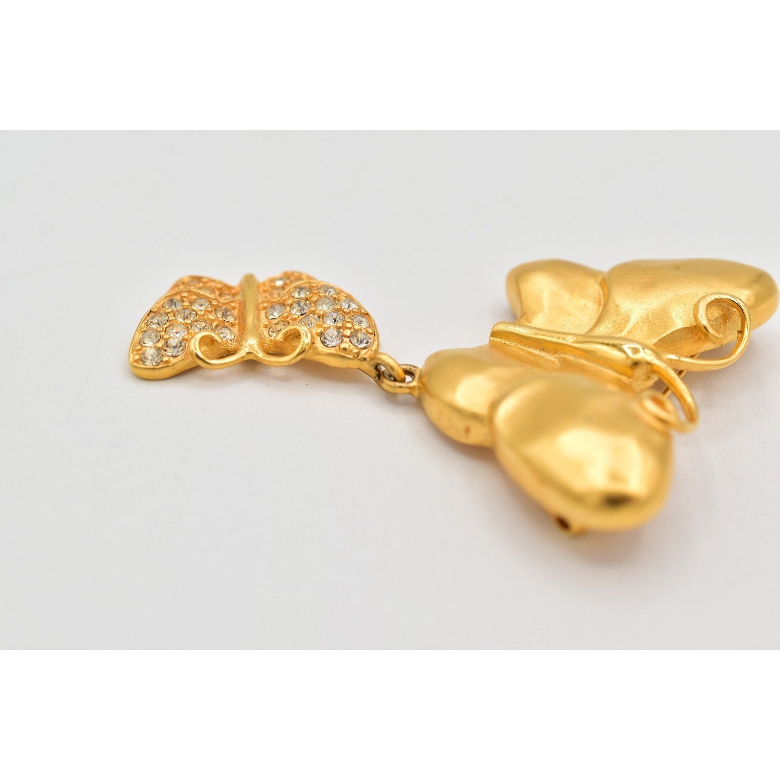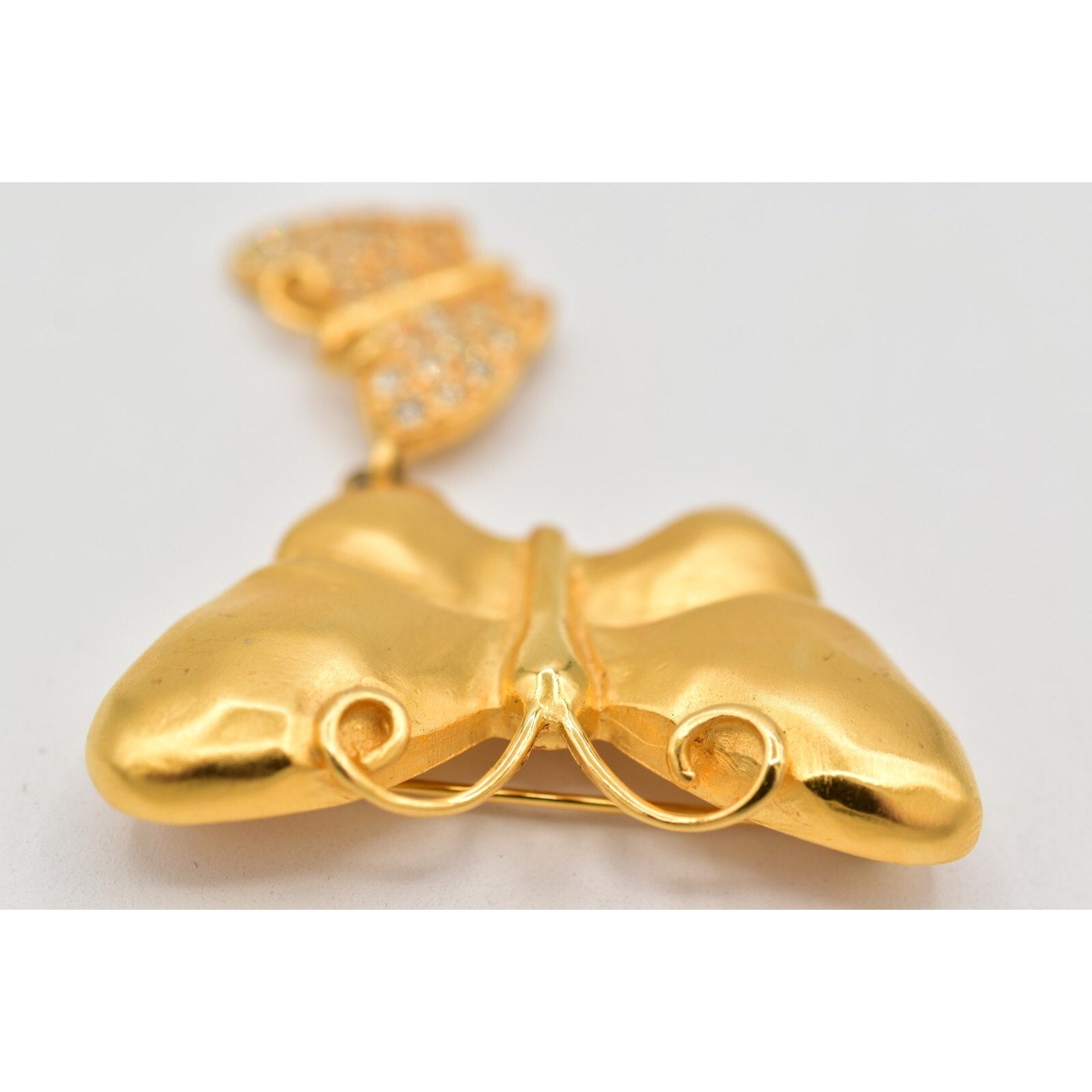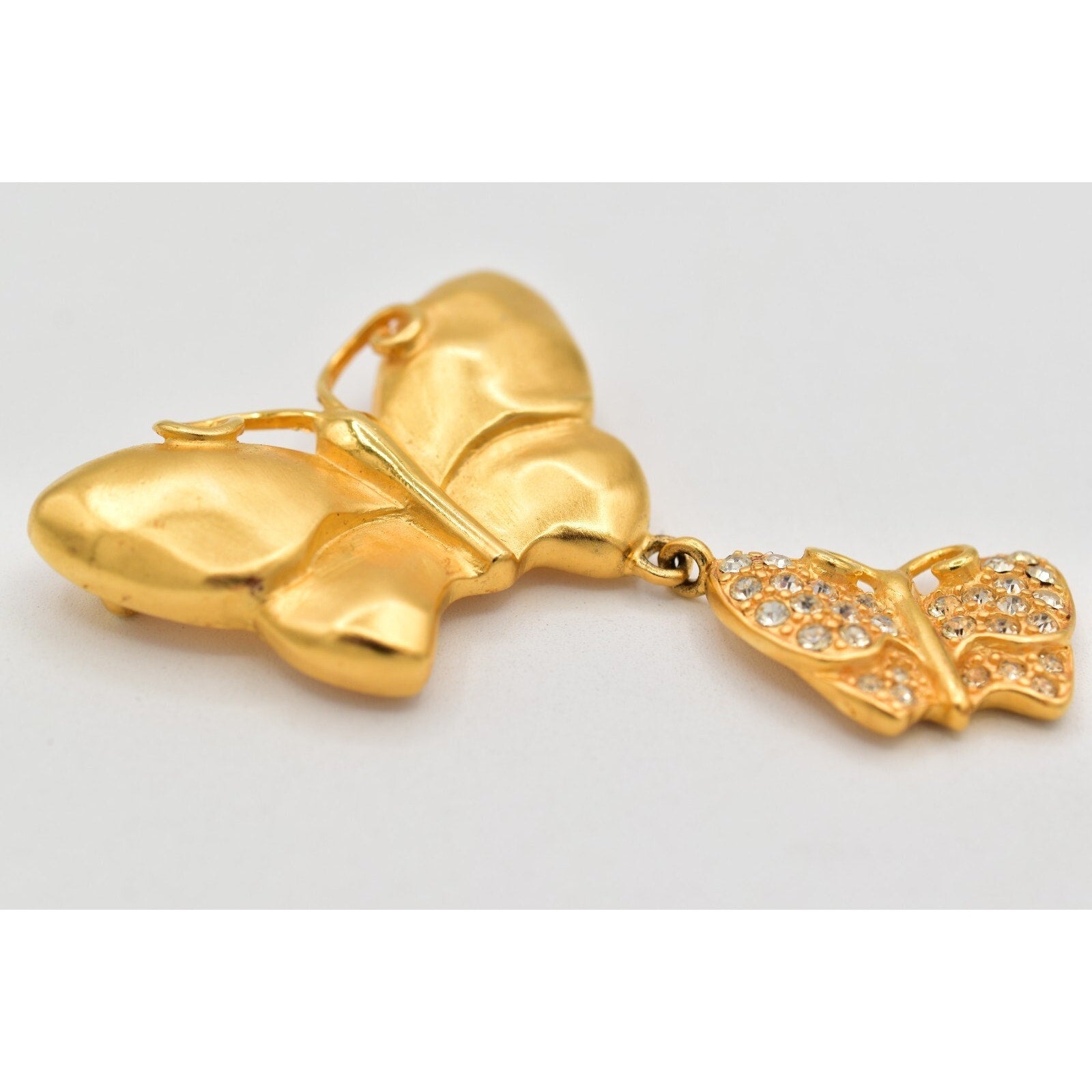 Vintage Givenchy butterfly pin with crystals and matte gold.