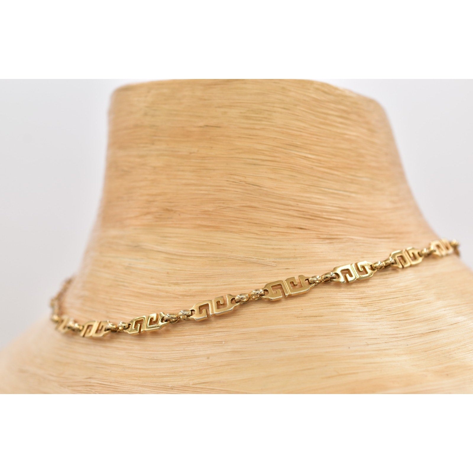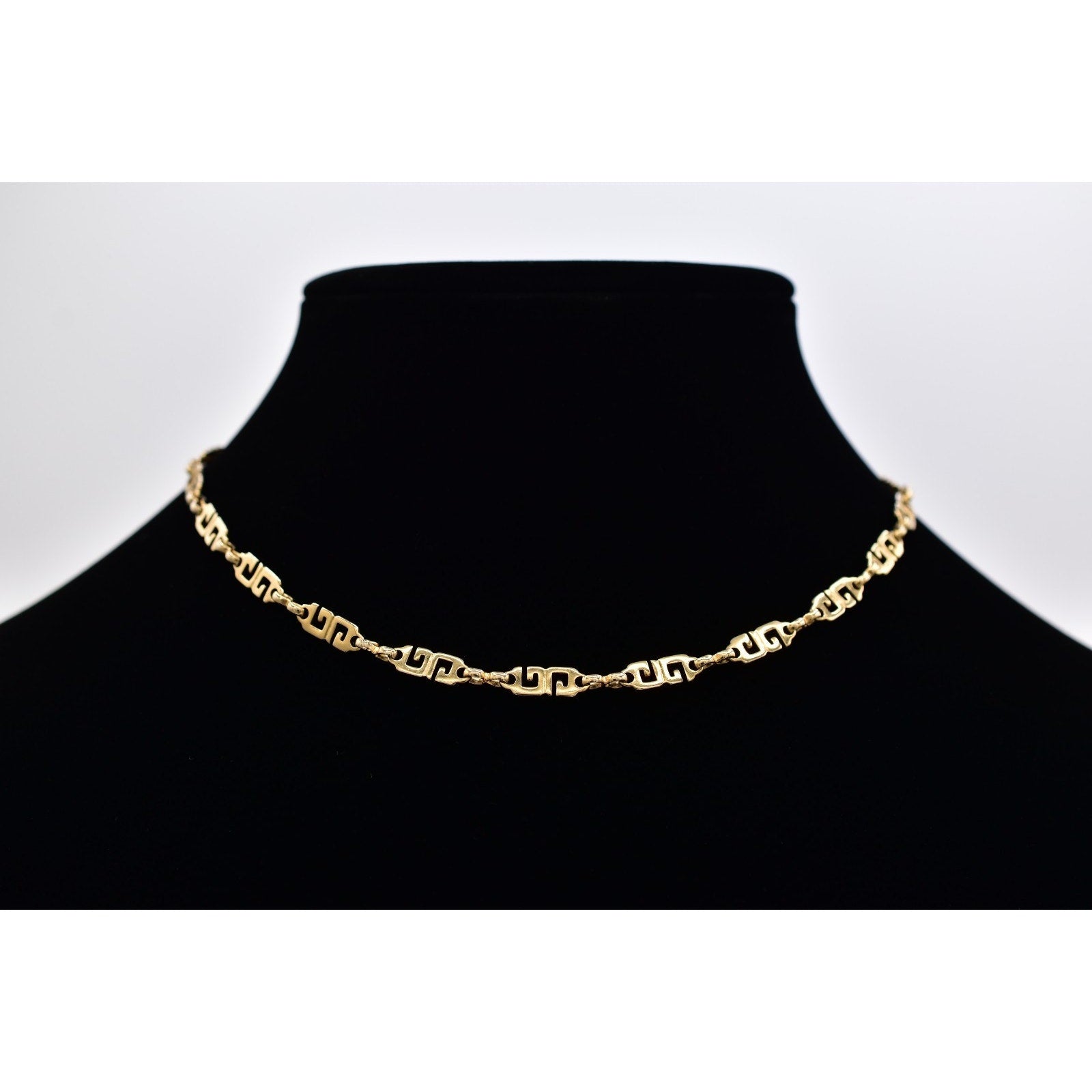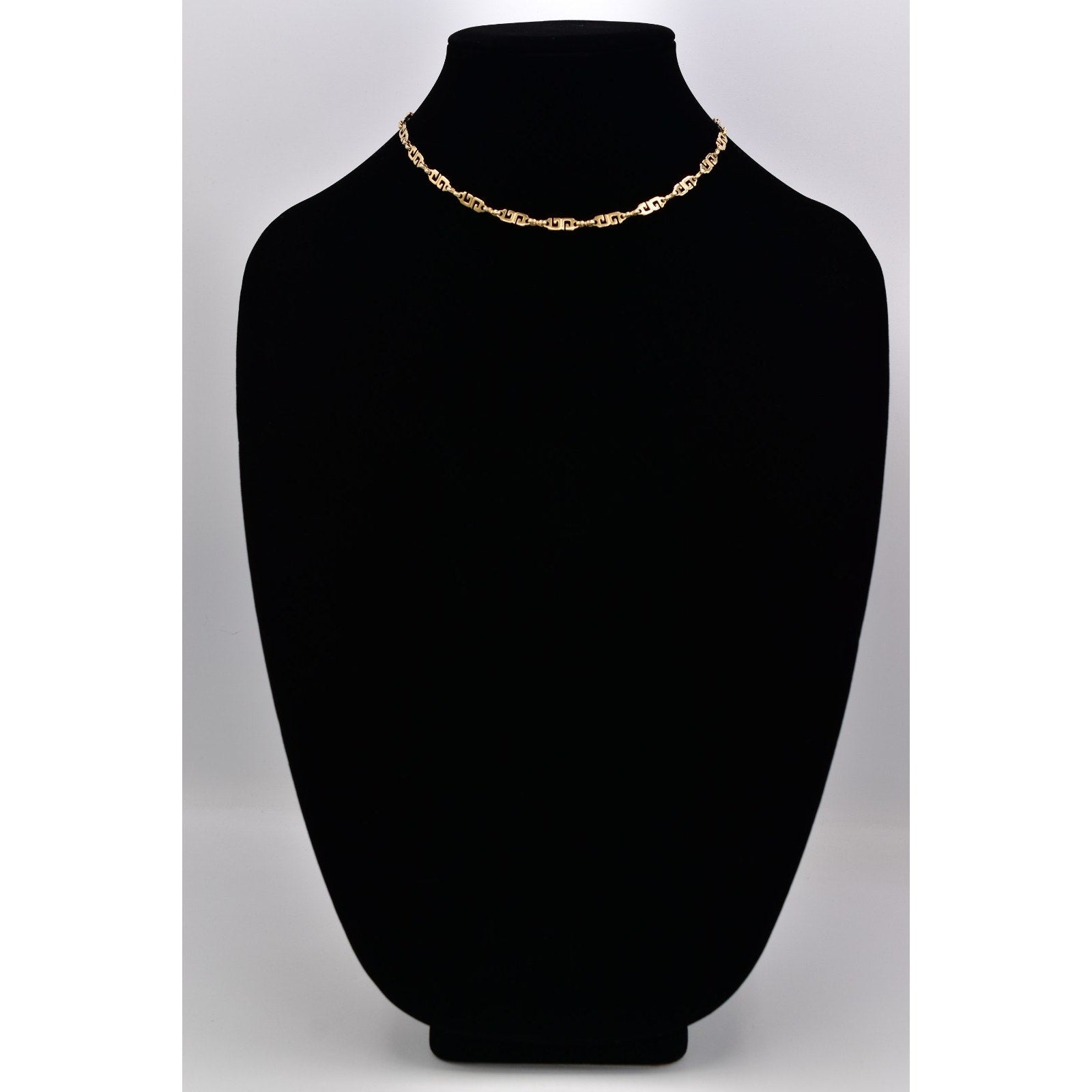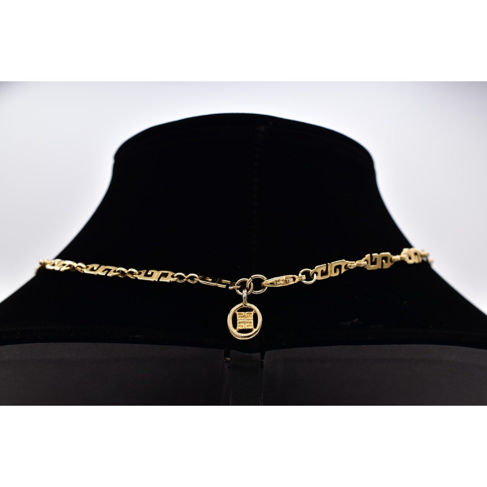 Elegant vintage Givenchy necklace featuring the iconic logo motif in gold tone, designed as a refined choker-length chain with timeless designer appeal.