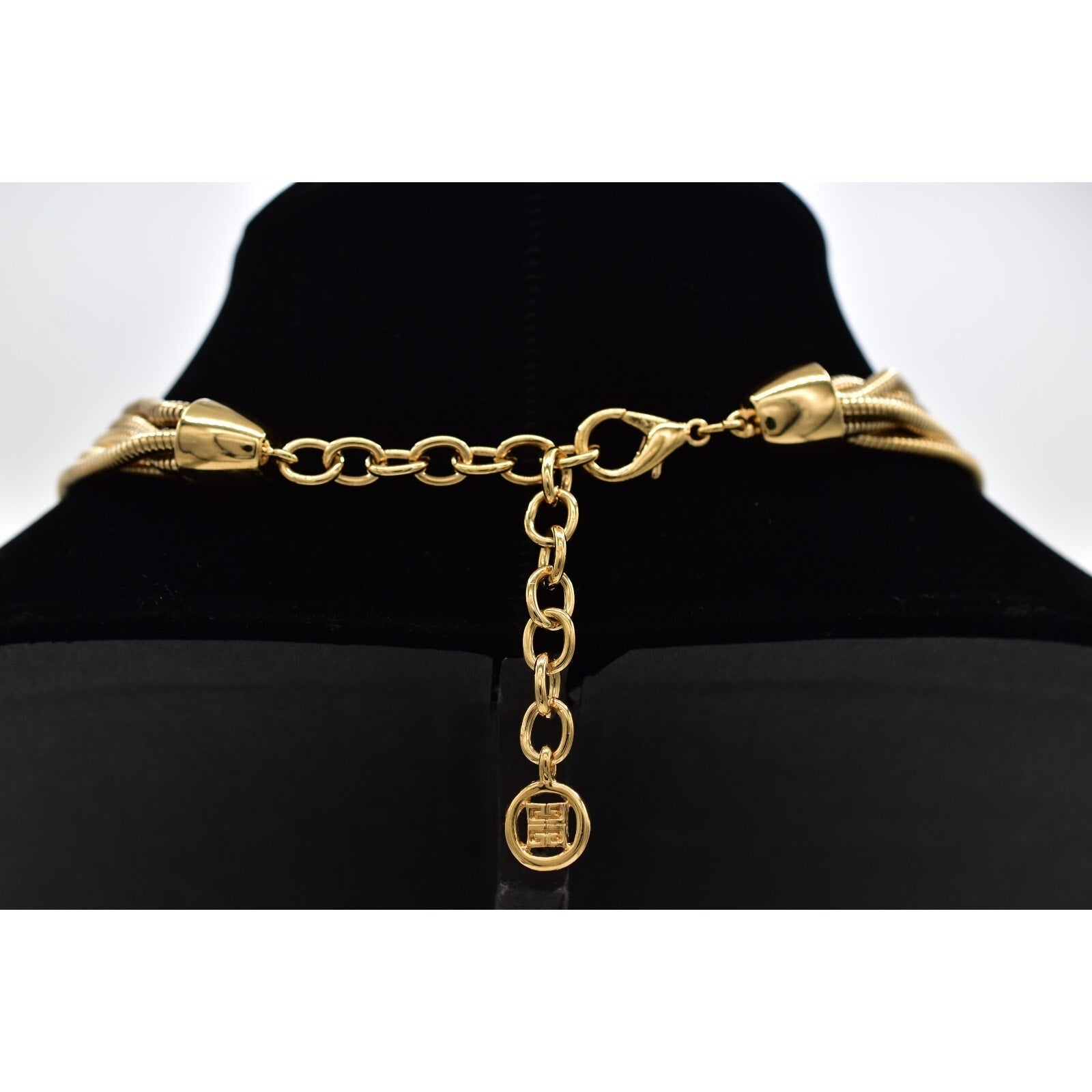 Givenchy multi-chain necklace with a high polished chunky pendant.