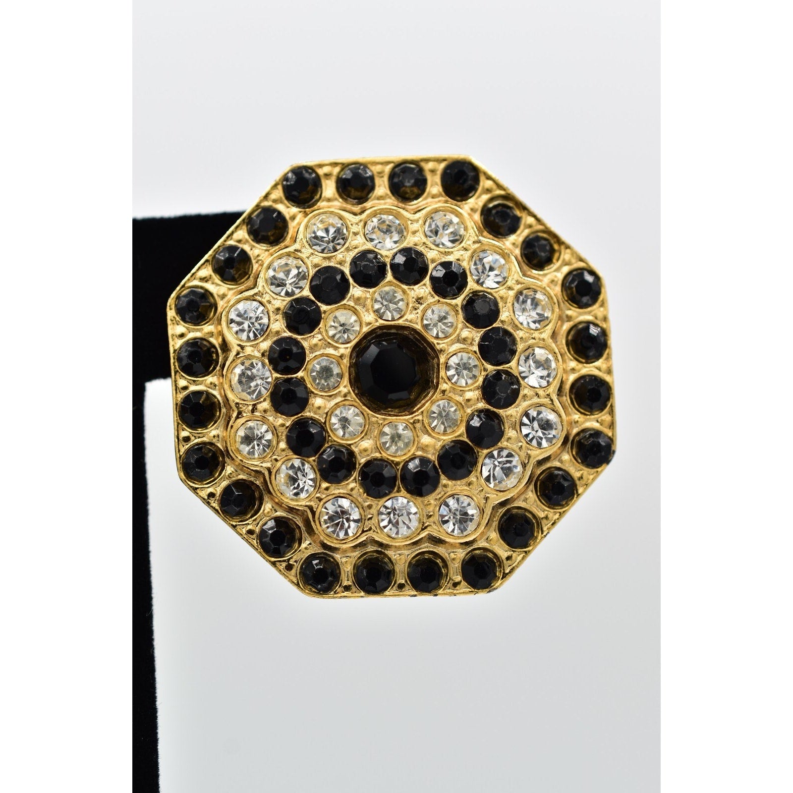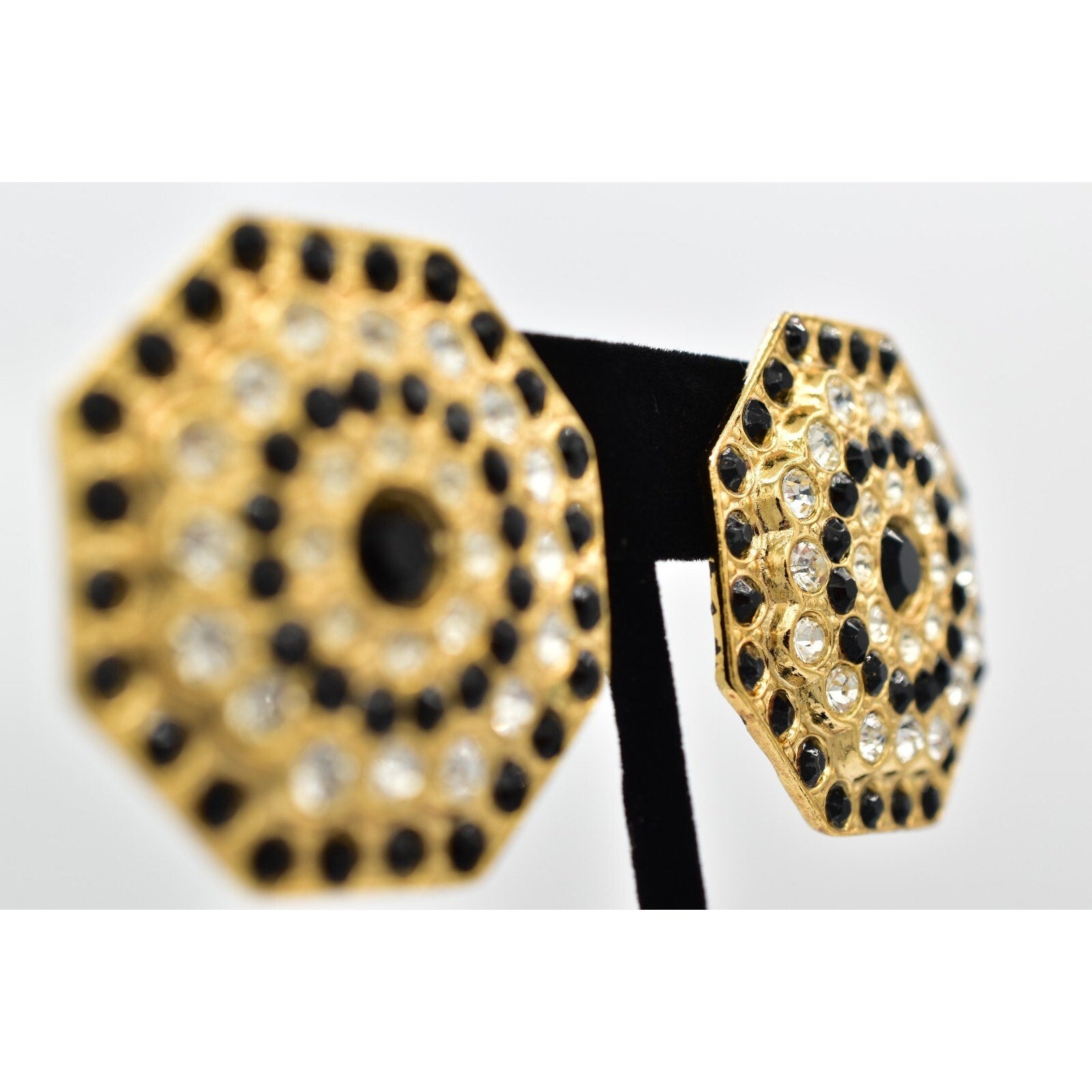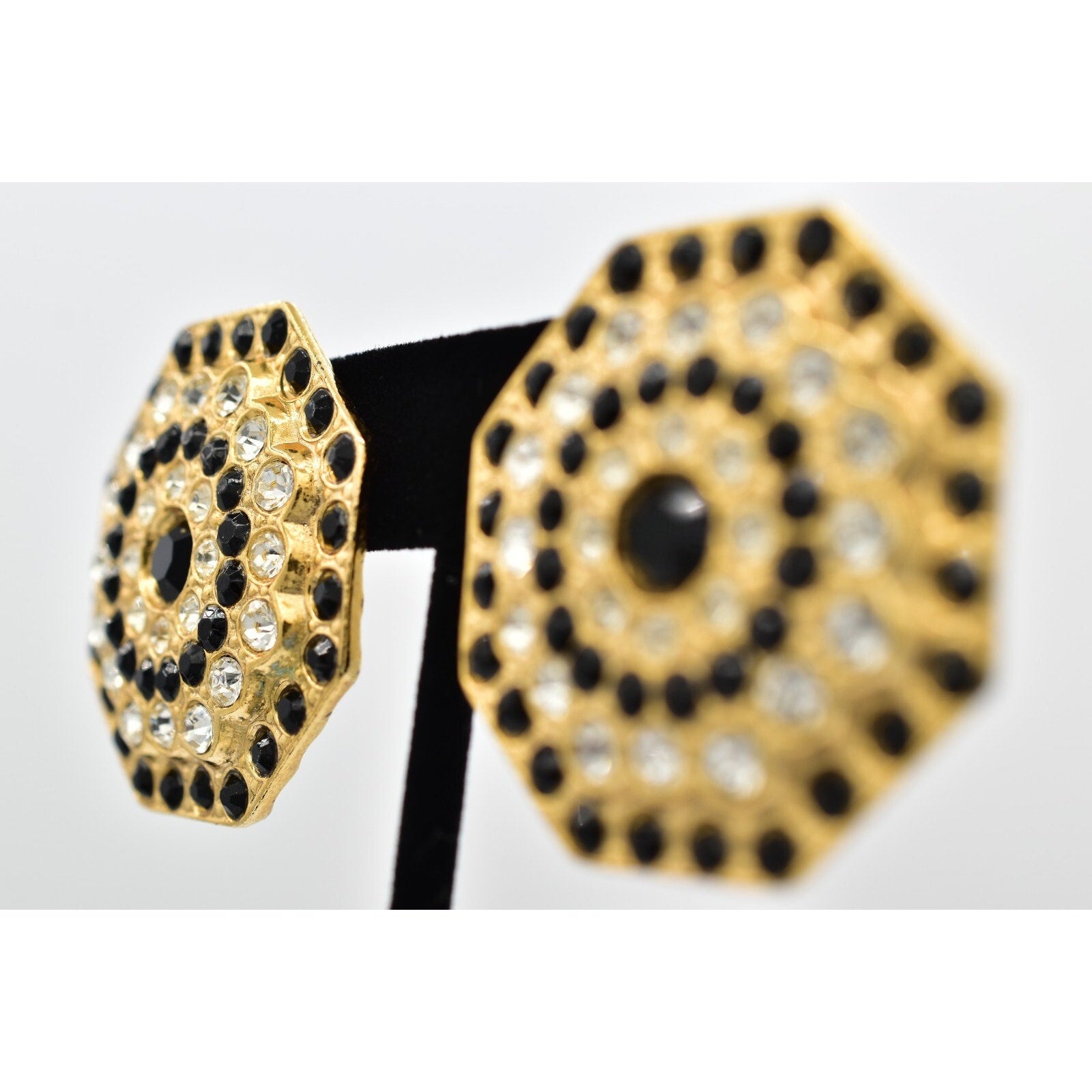 Vintage earrings with black and white crystals.