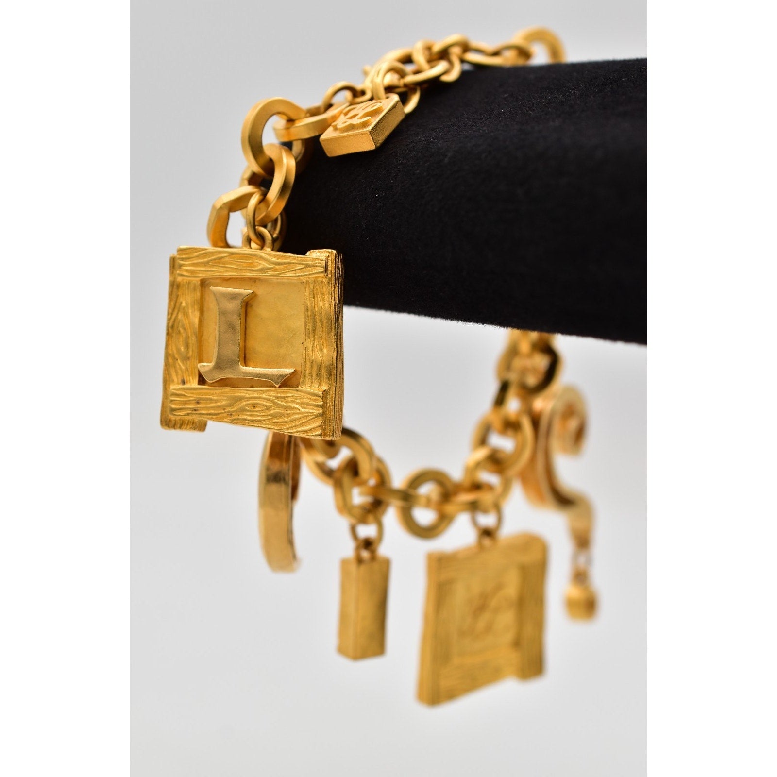 • Style: Chunky gold-tone link charm bracelet / statement bracelet
