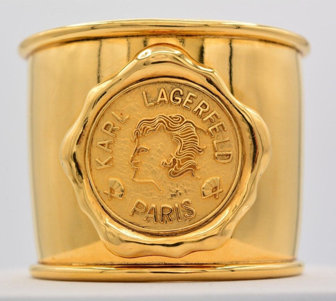 Vintage Karl Lagerfeld cuff featuring iconic wax seal logo.