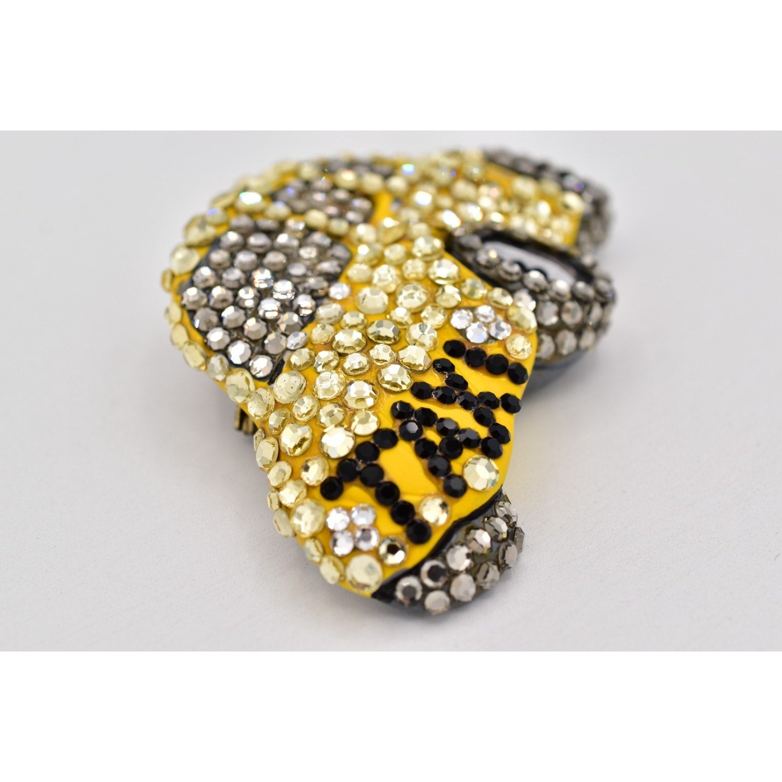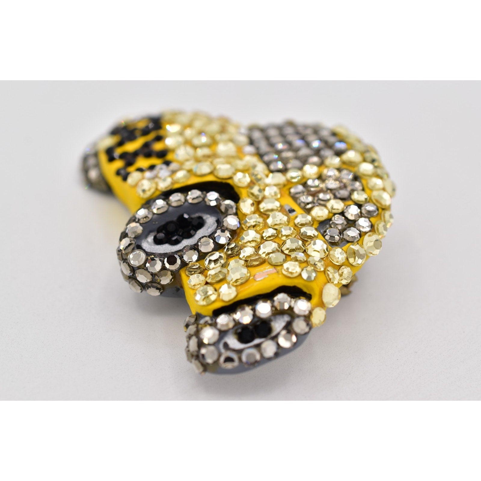 * Material: Gold-tone metal, enamel, crystal rhinestones