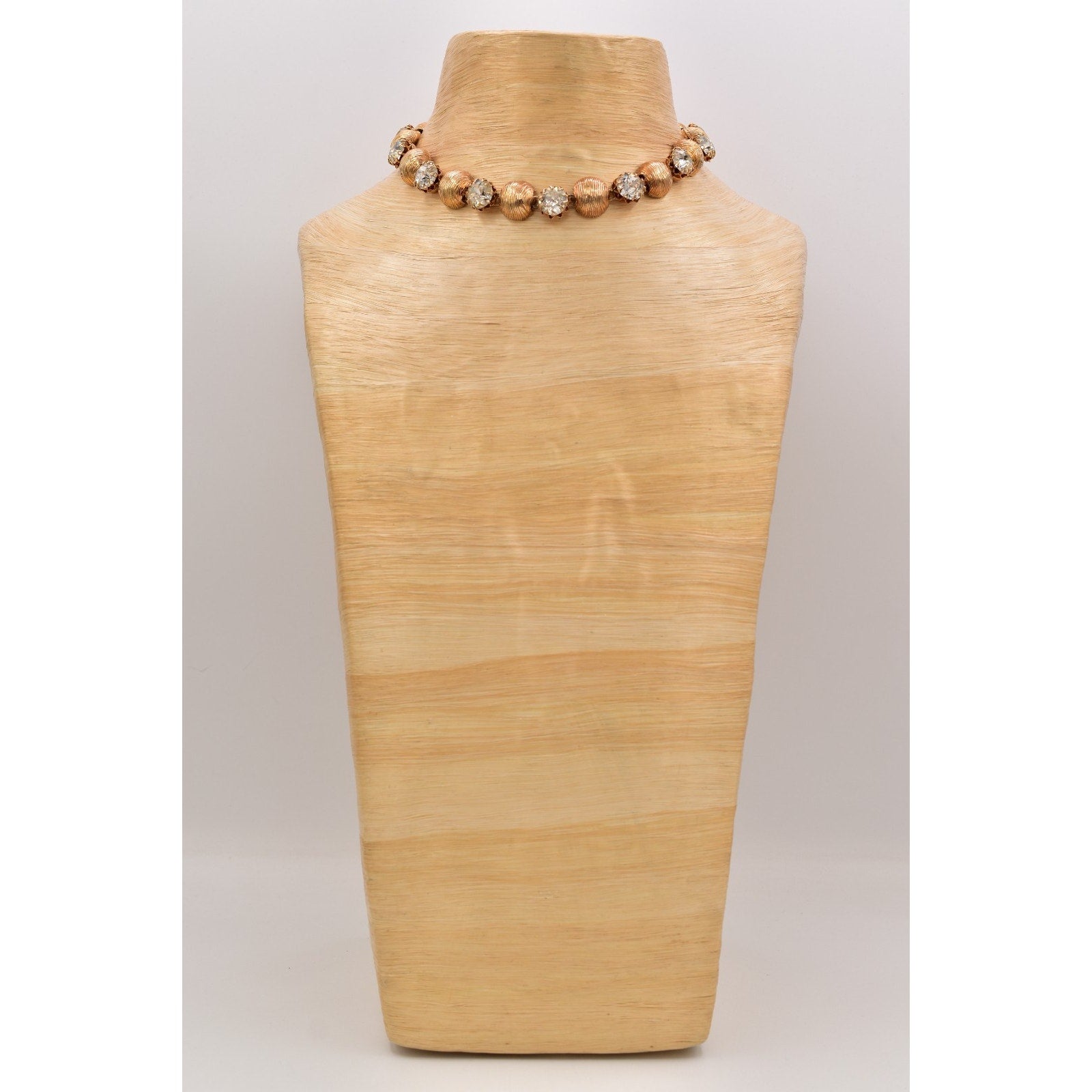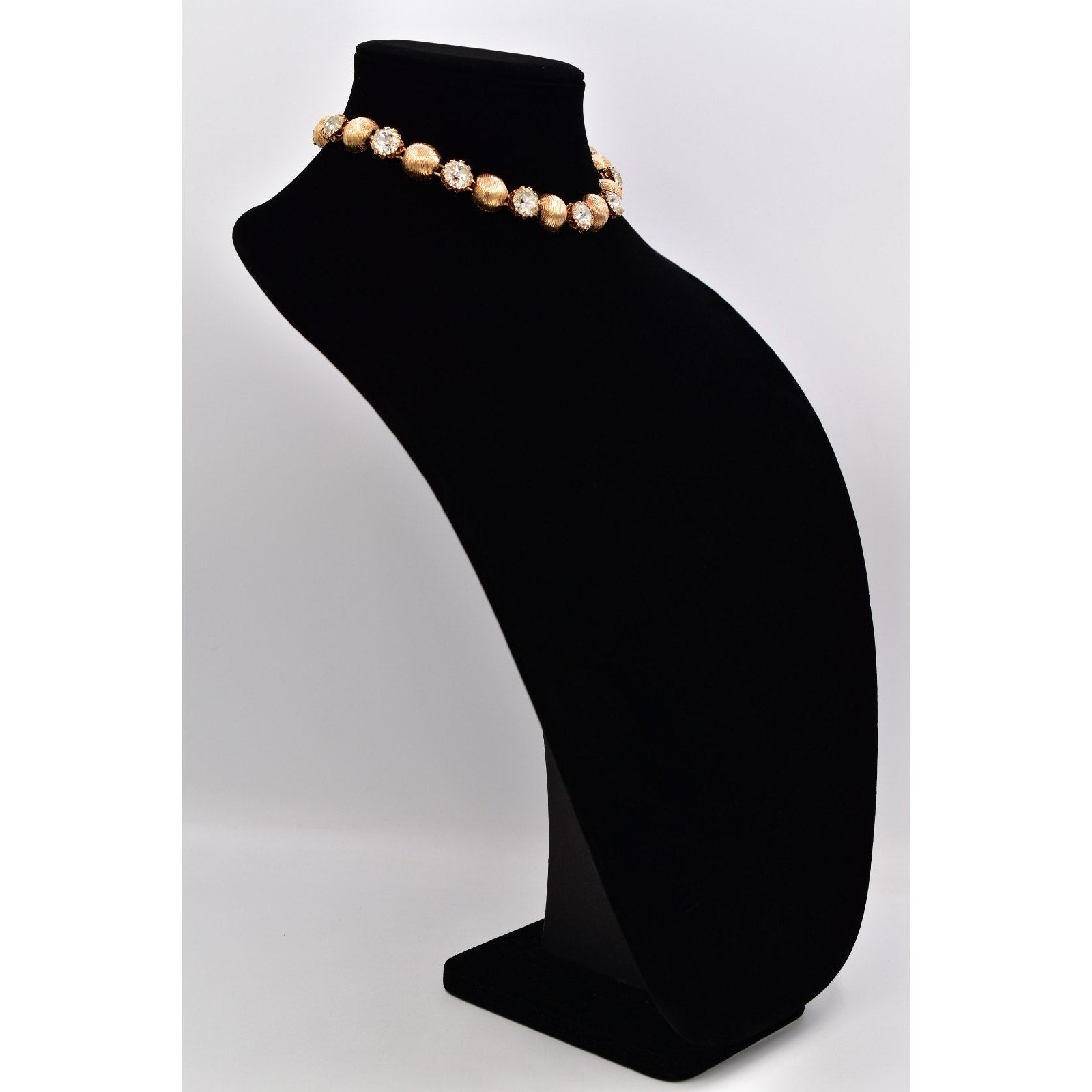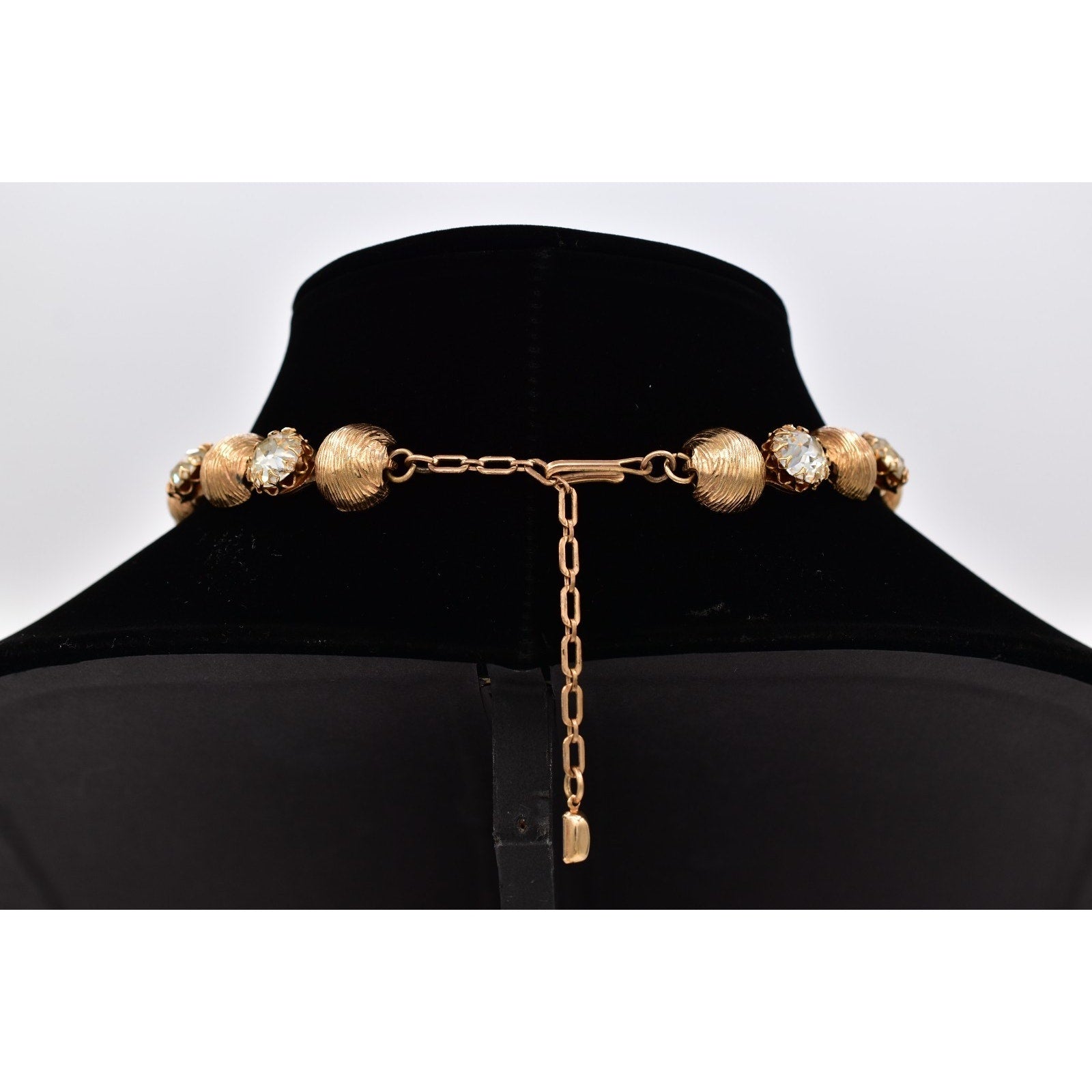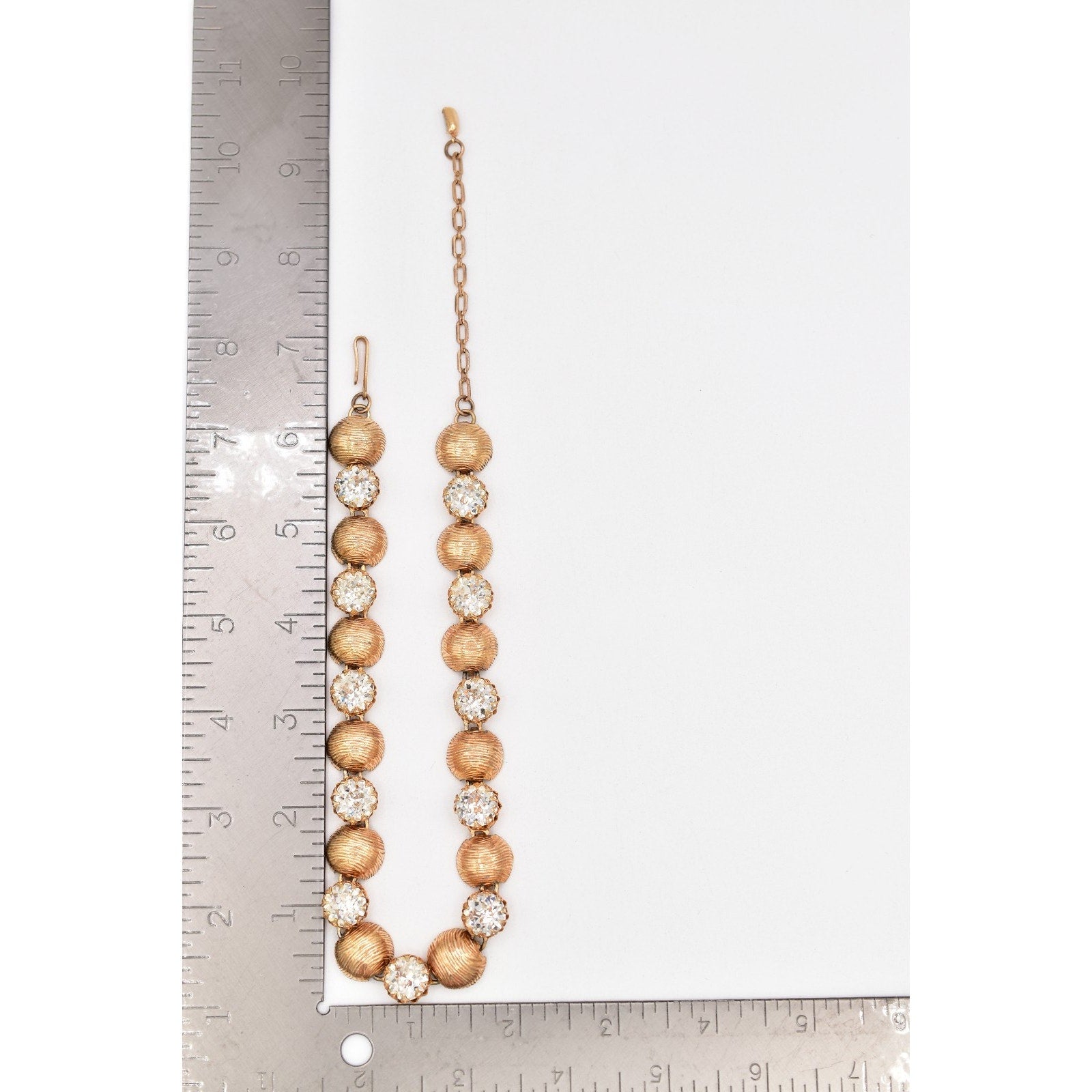 Elegant vintage Kramer necklace featuring alternating textured gold-tone beads and brilliant clear rhinestones. A classic mid-century statement with adjustable length—perfect for bridal, evening, or timeless glamour.