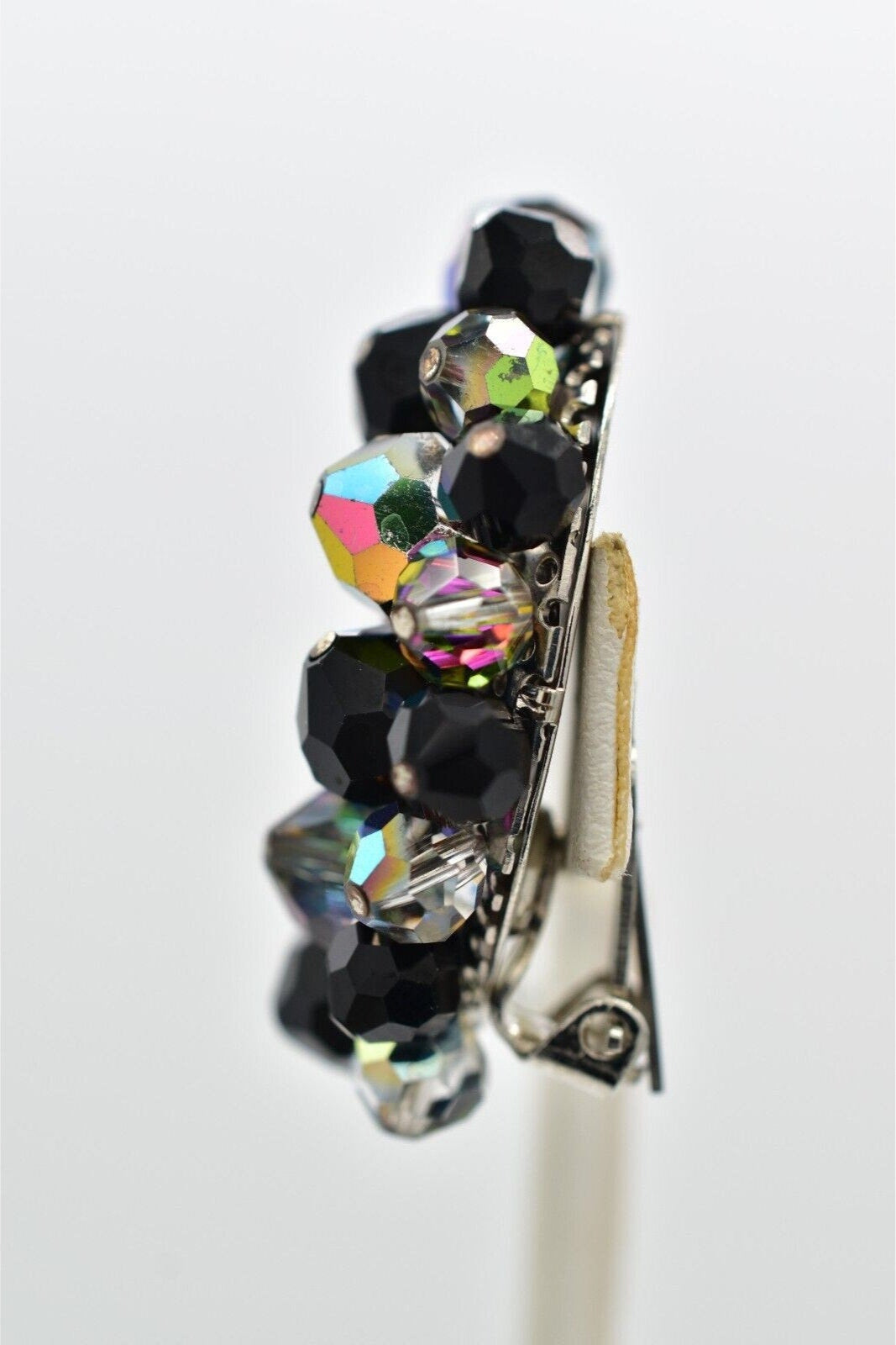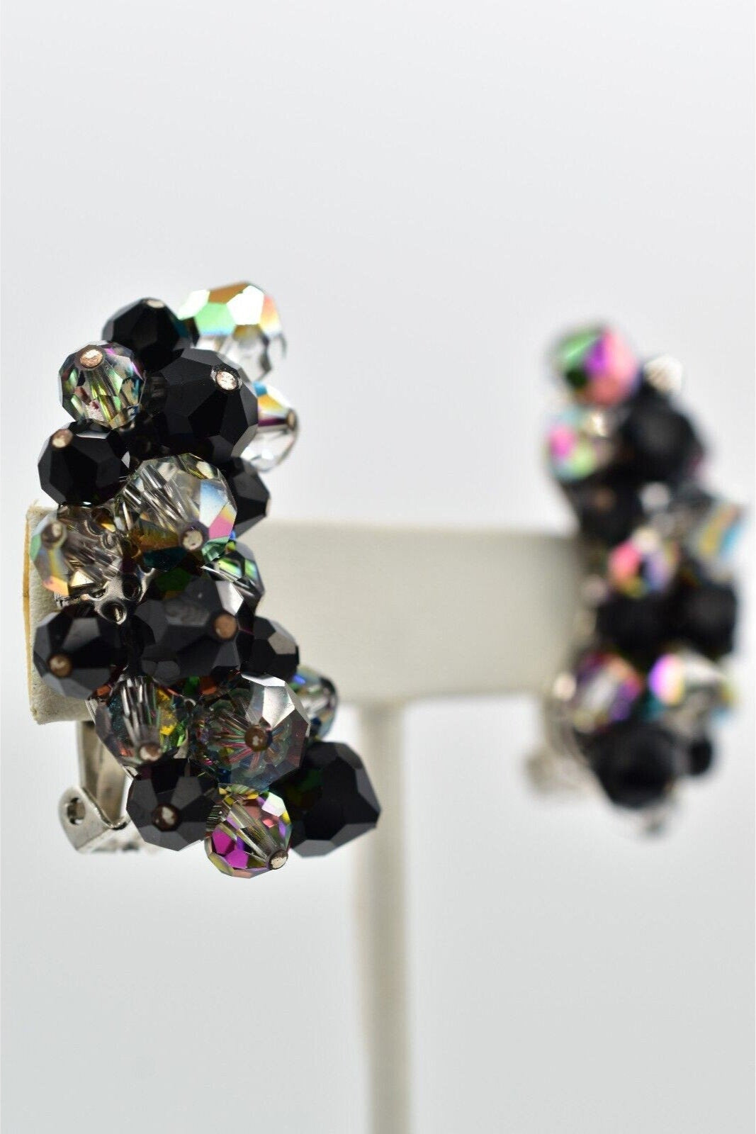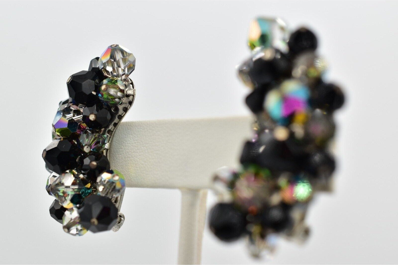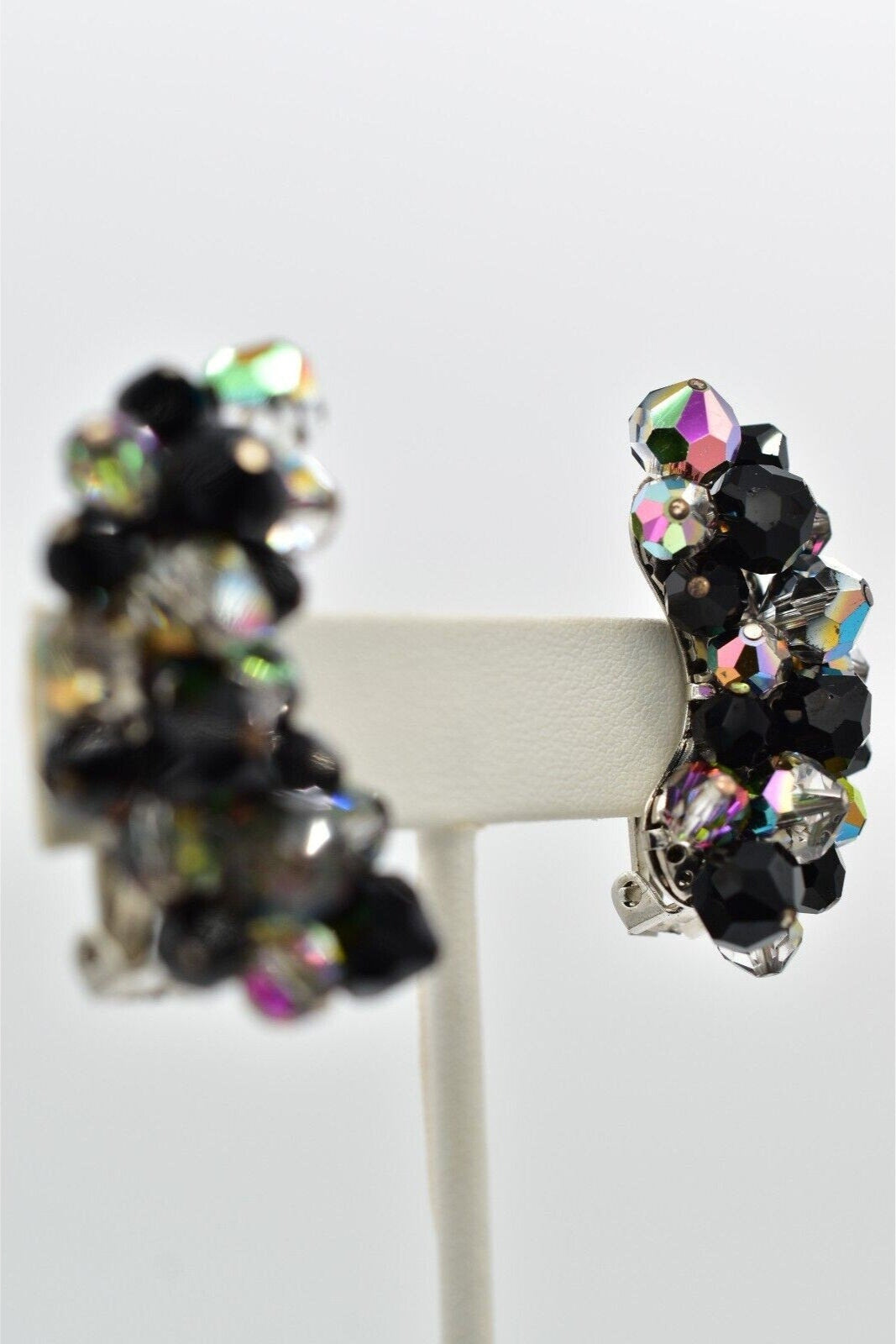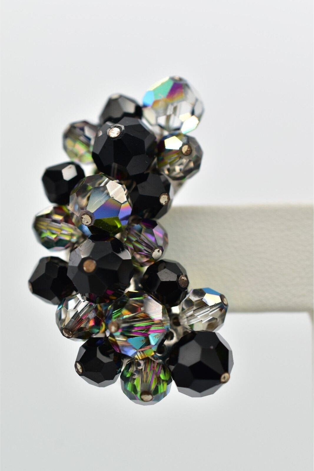 Vintage Laguna earrings climber clustered with black AB, and gray crystals.