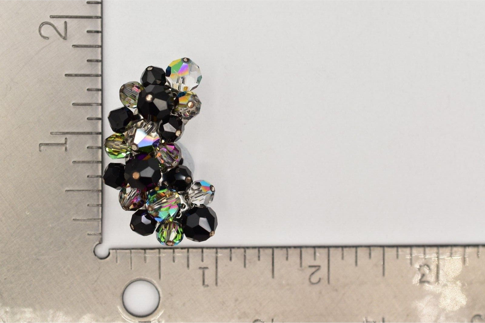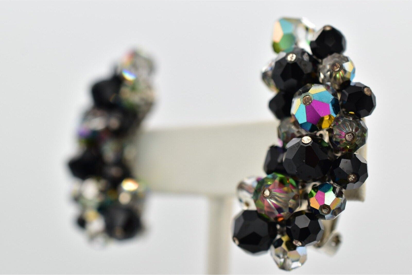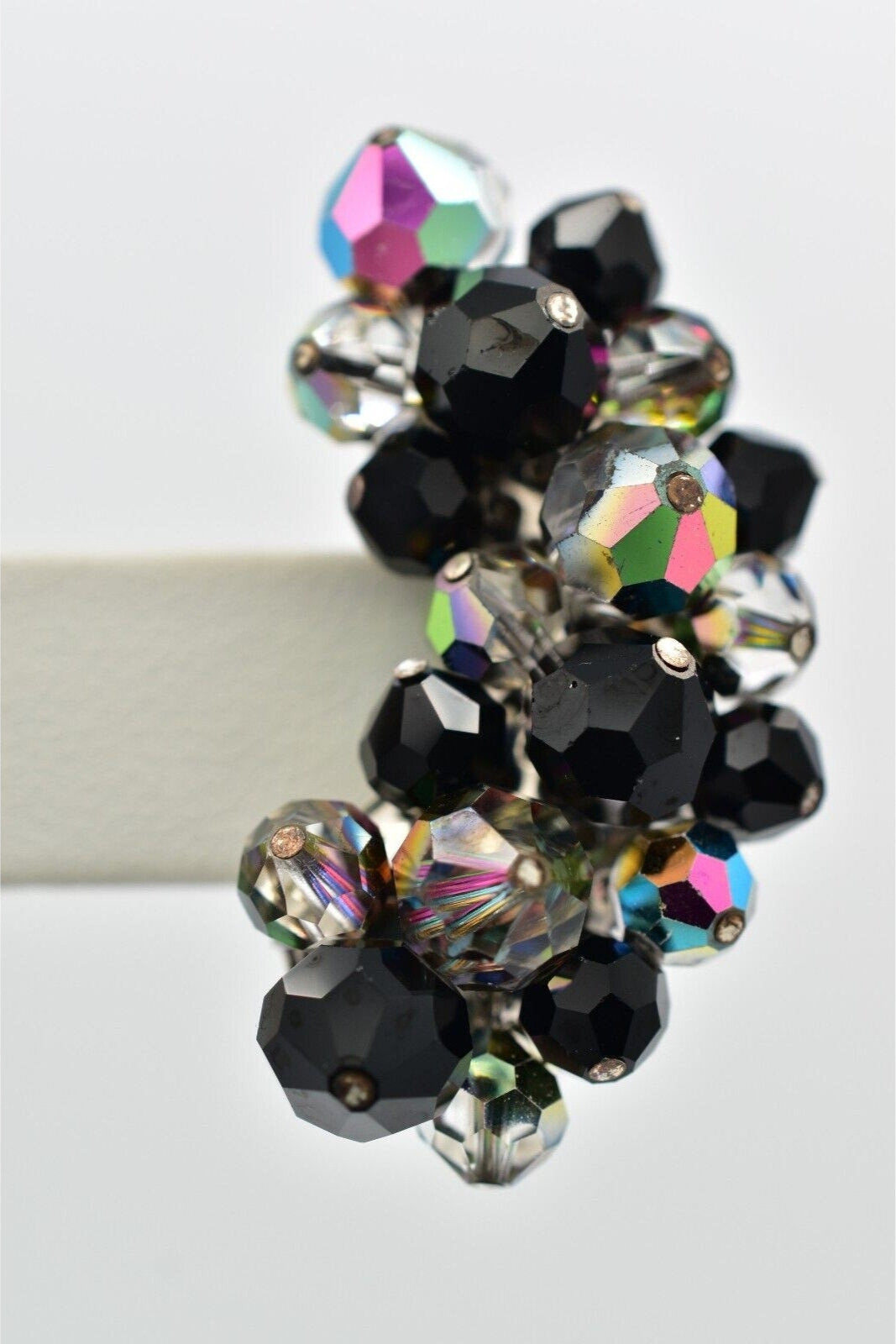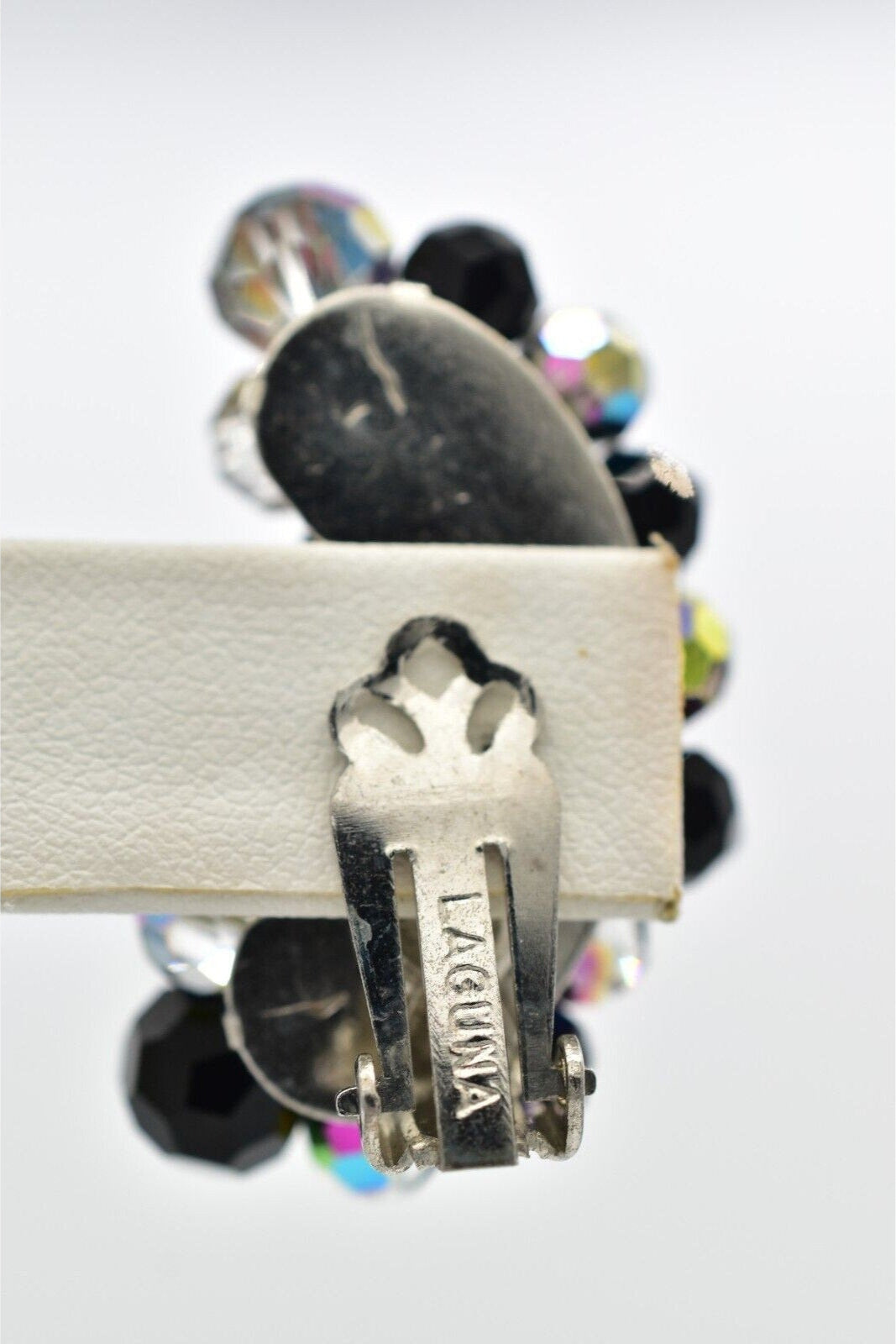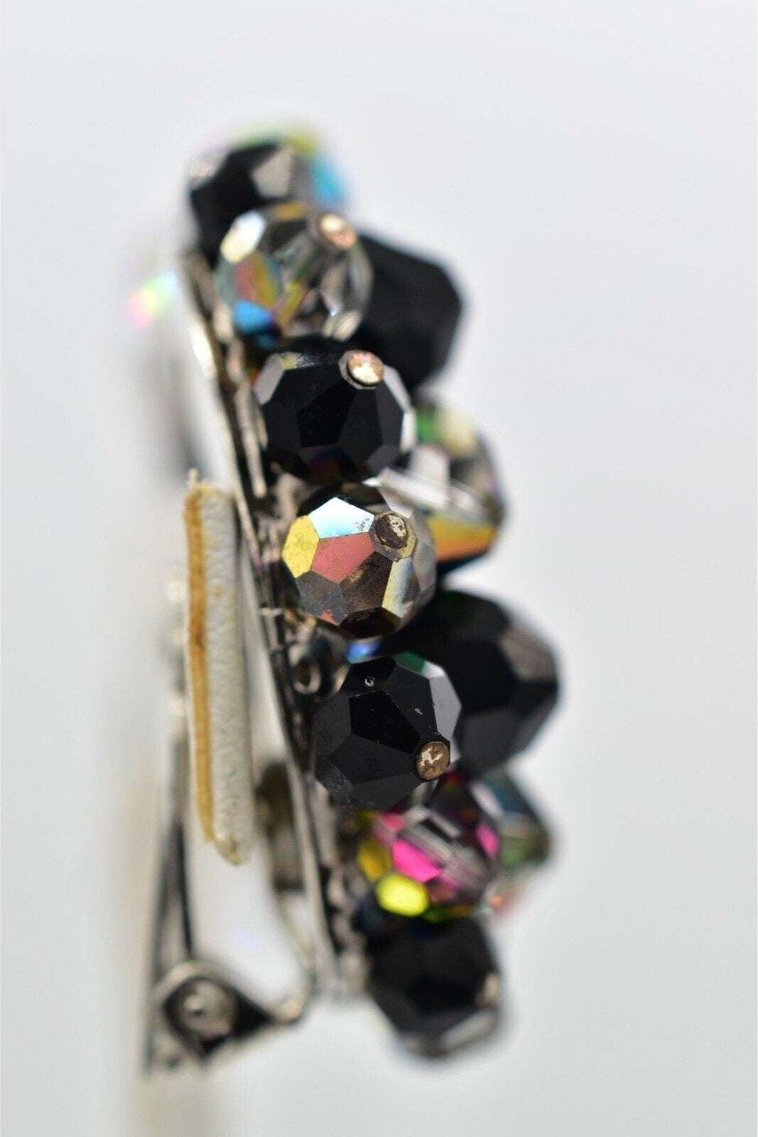 Vintage Laguna earrings climber clustered with black AB, and gray crystals.