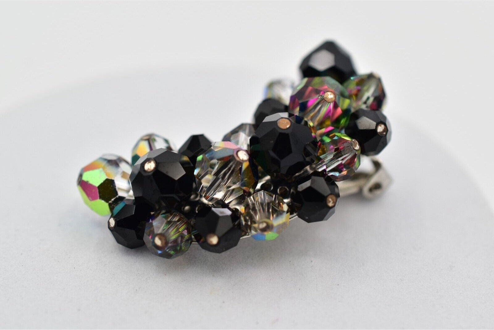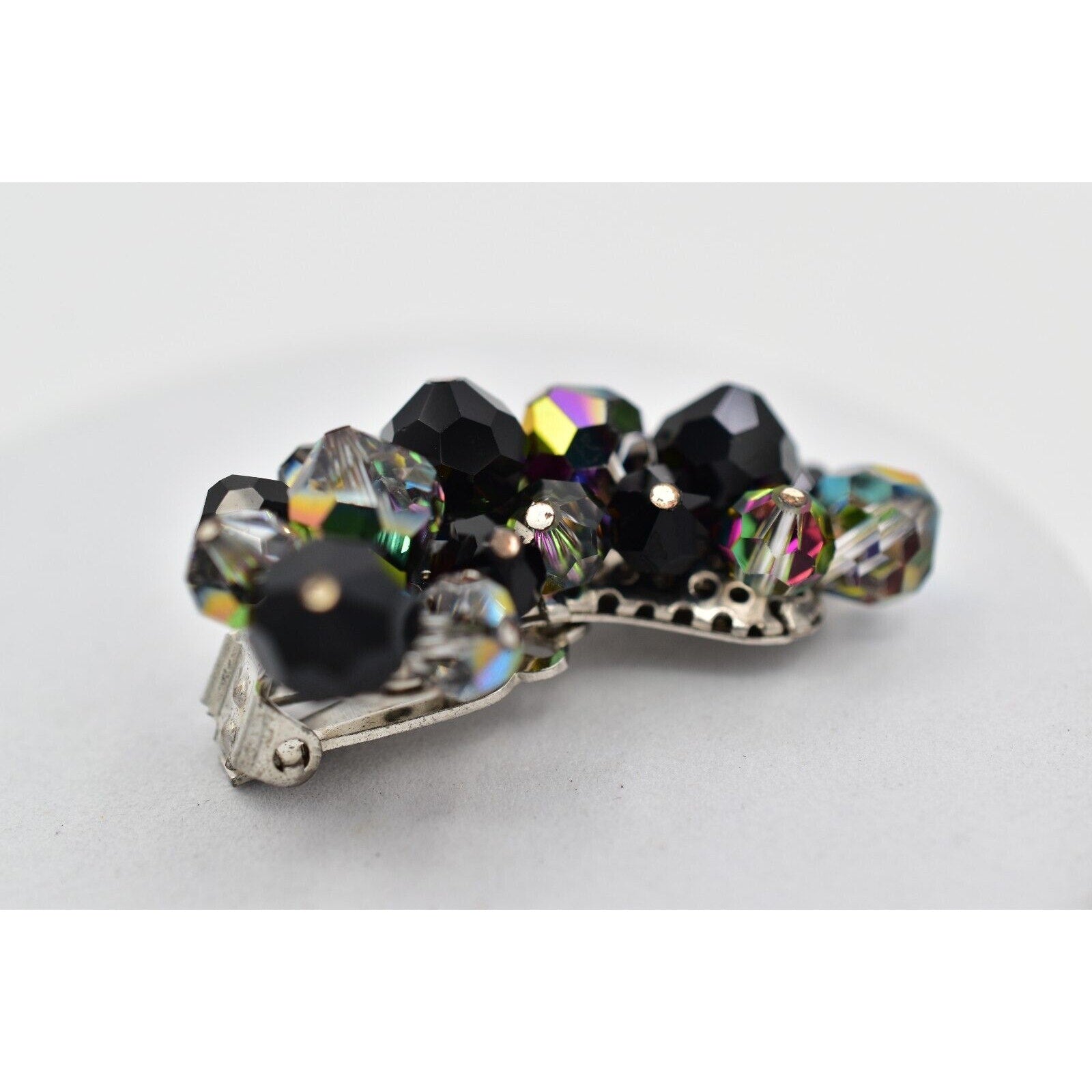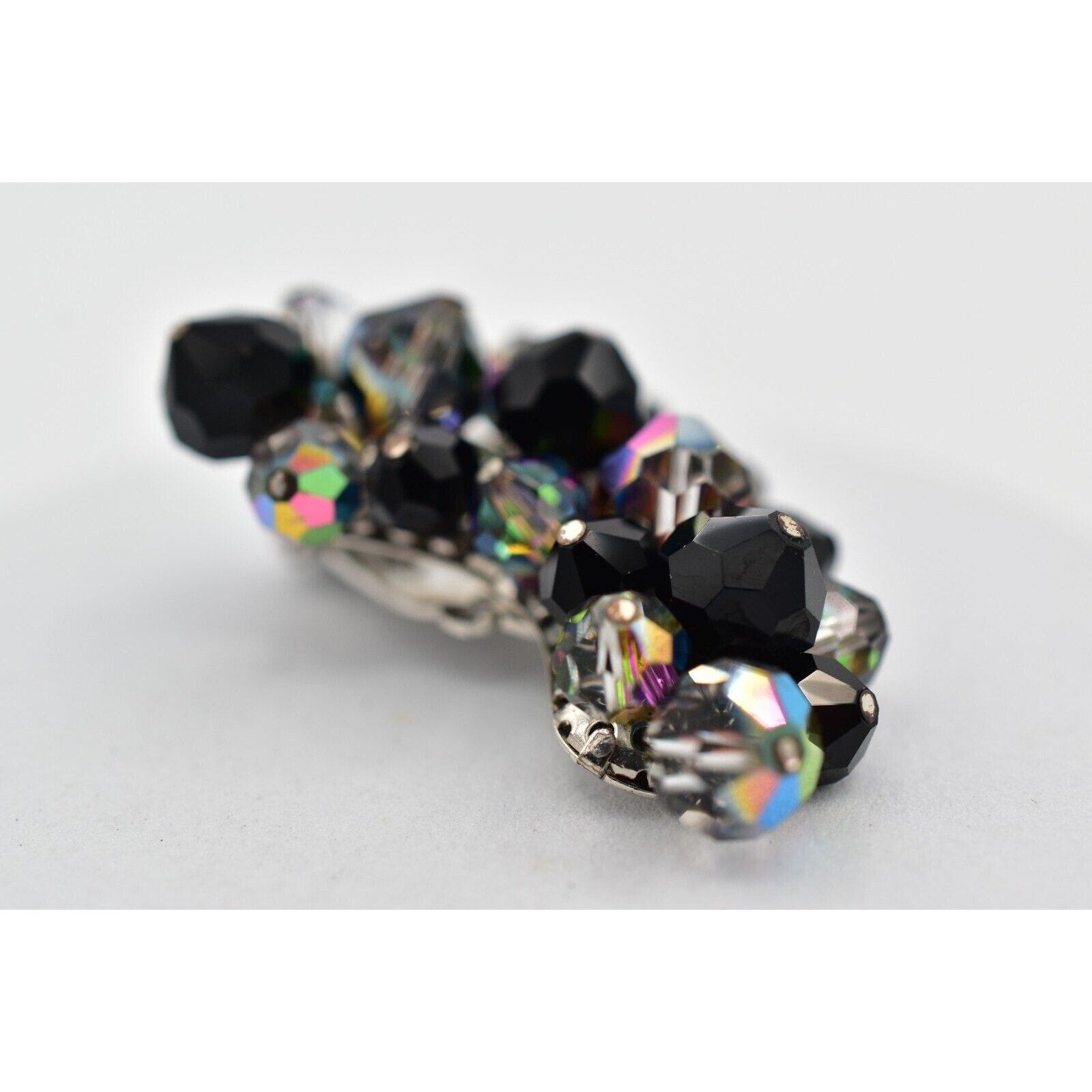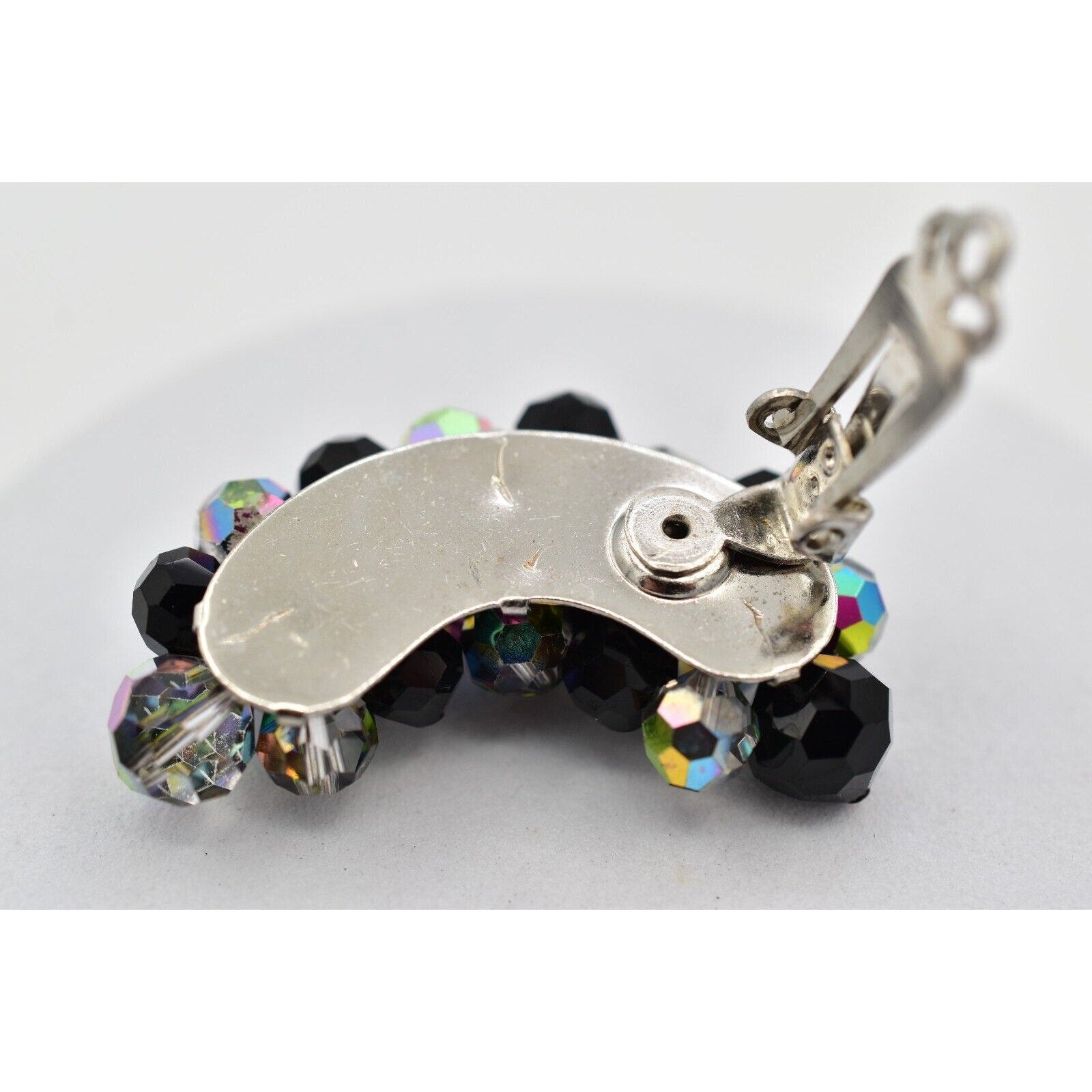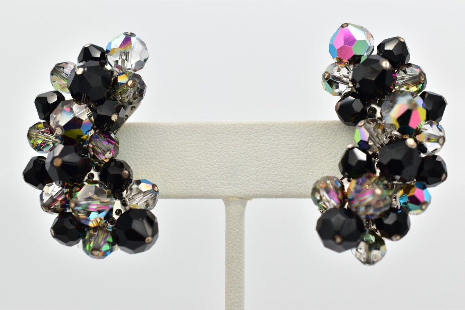 Vintage Laguna earrings climber clustered with black AB, and gray crystals.