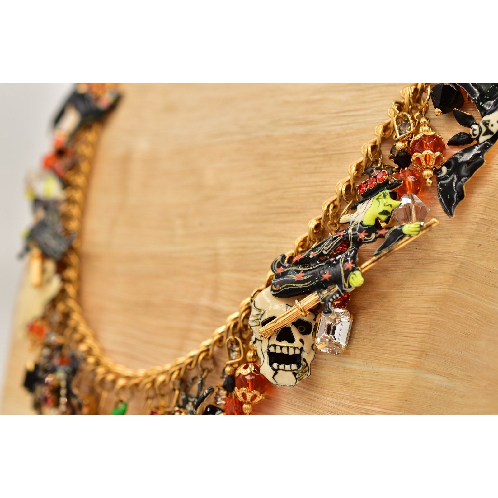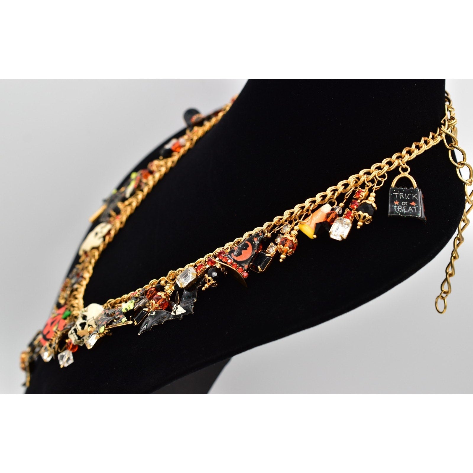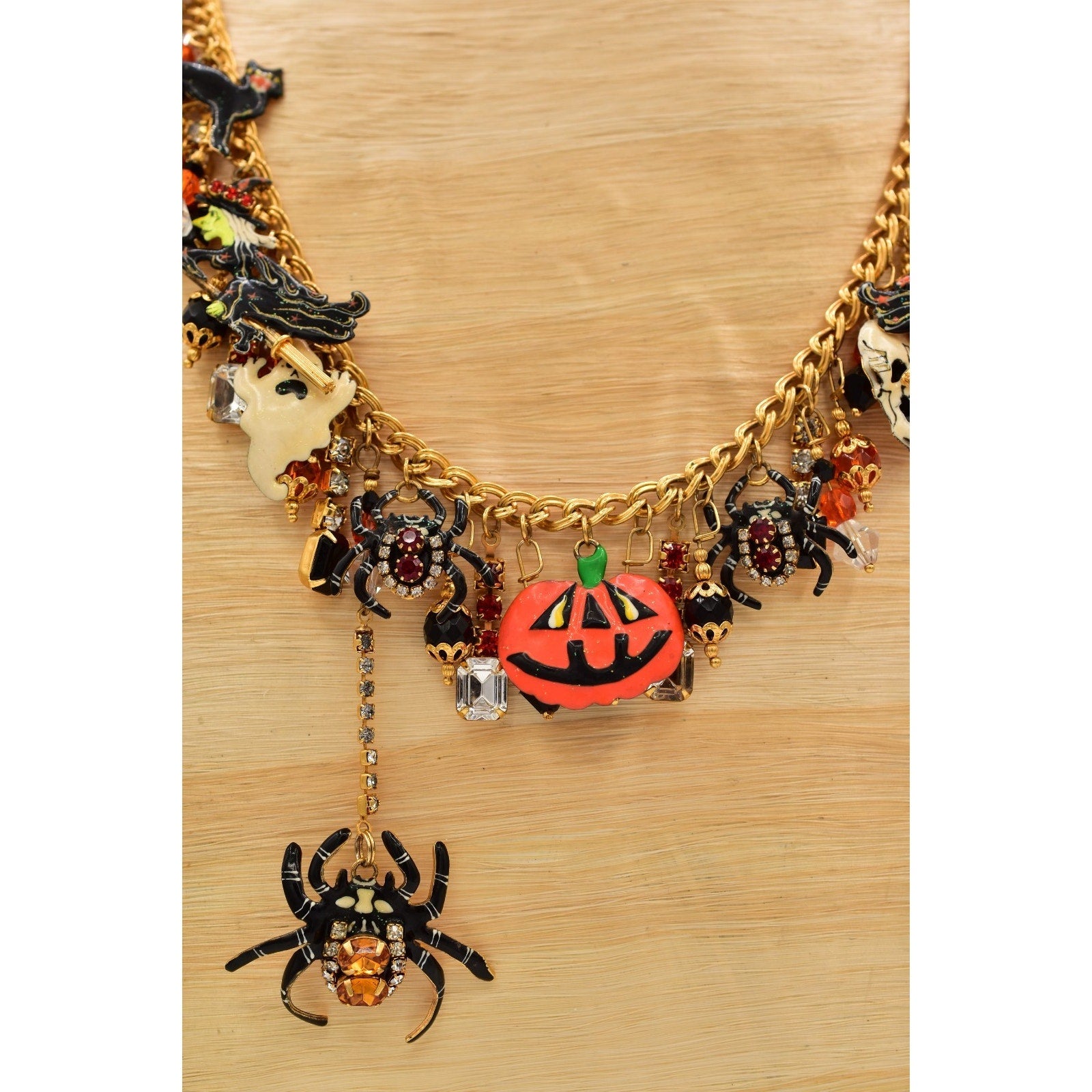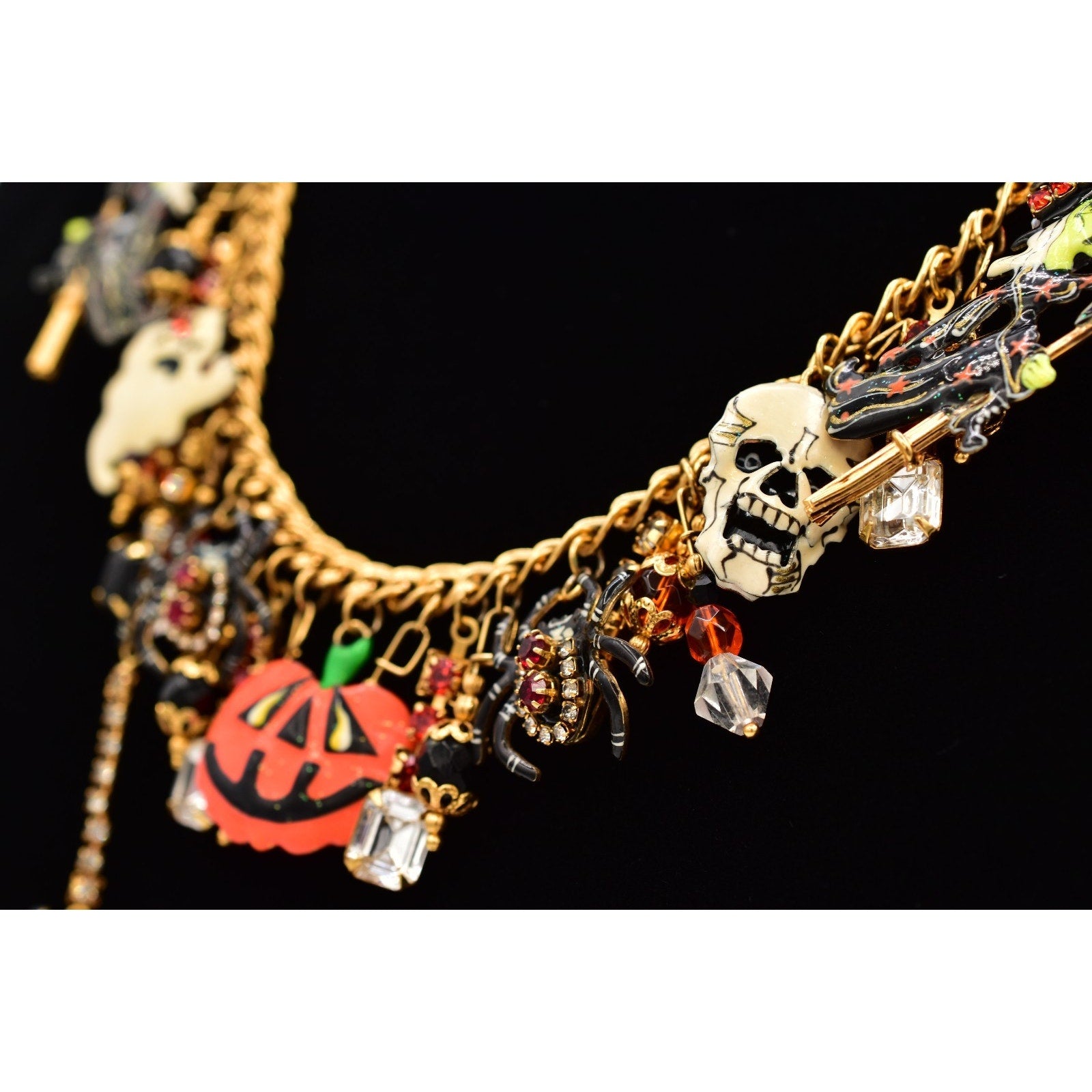 Vintage collector's Halloween charm necklace with a featuring spooky charms.