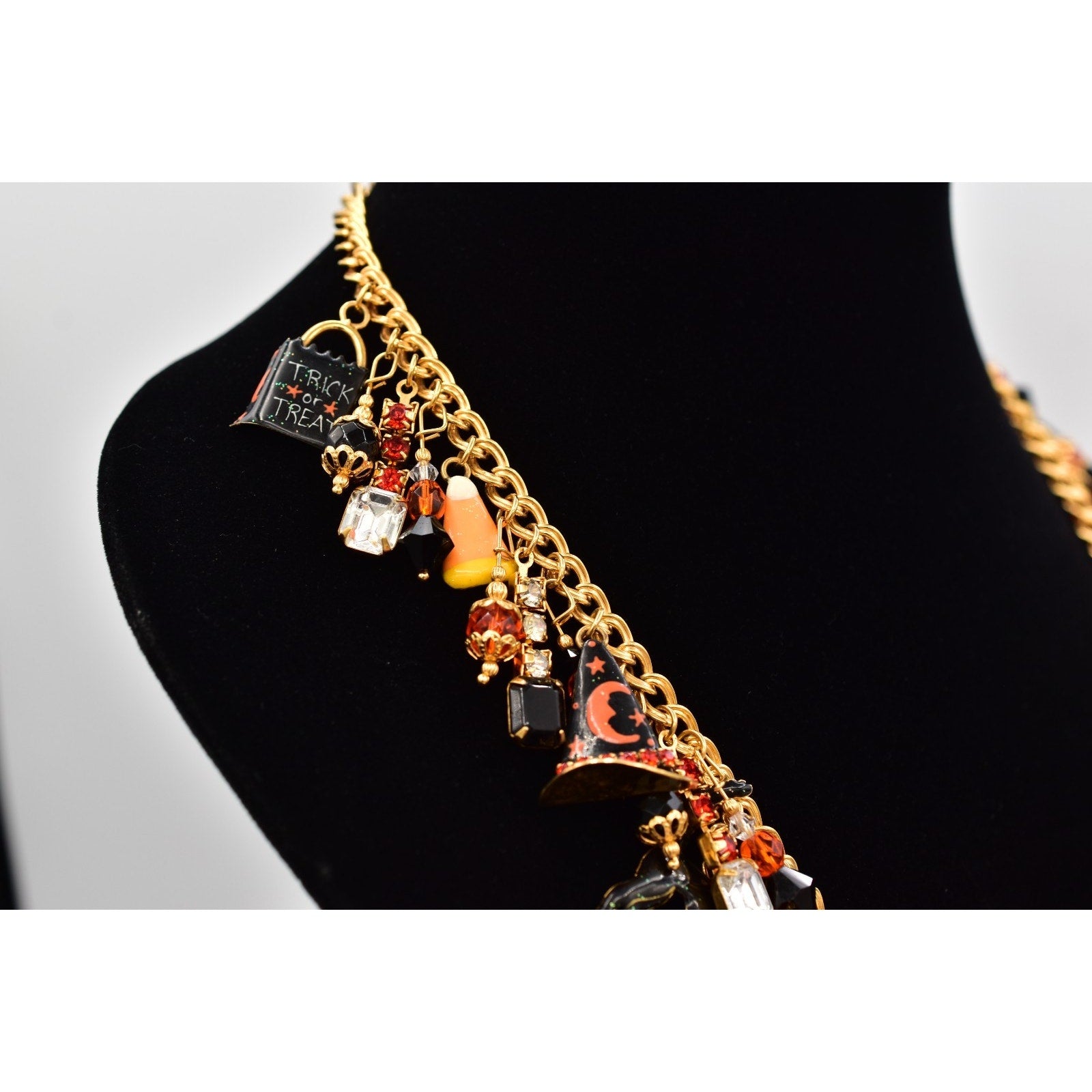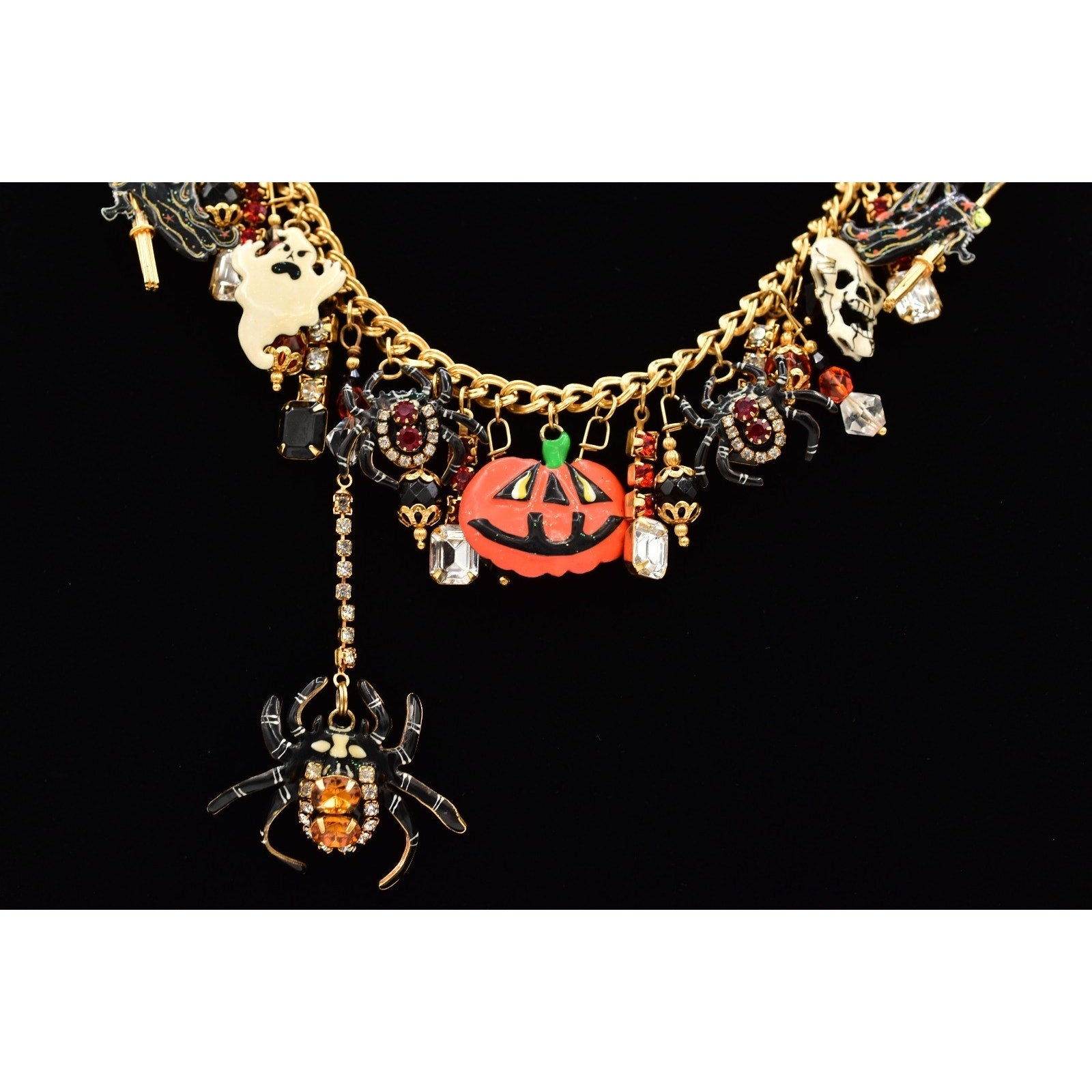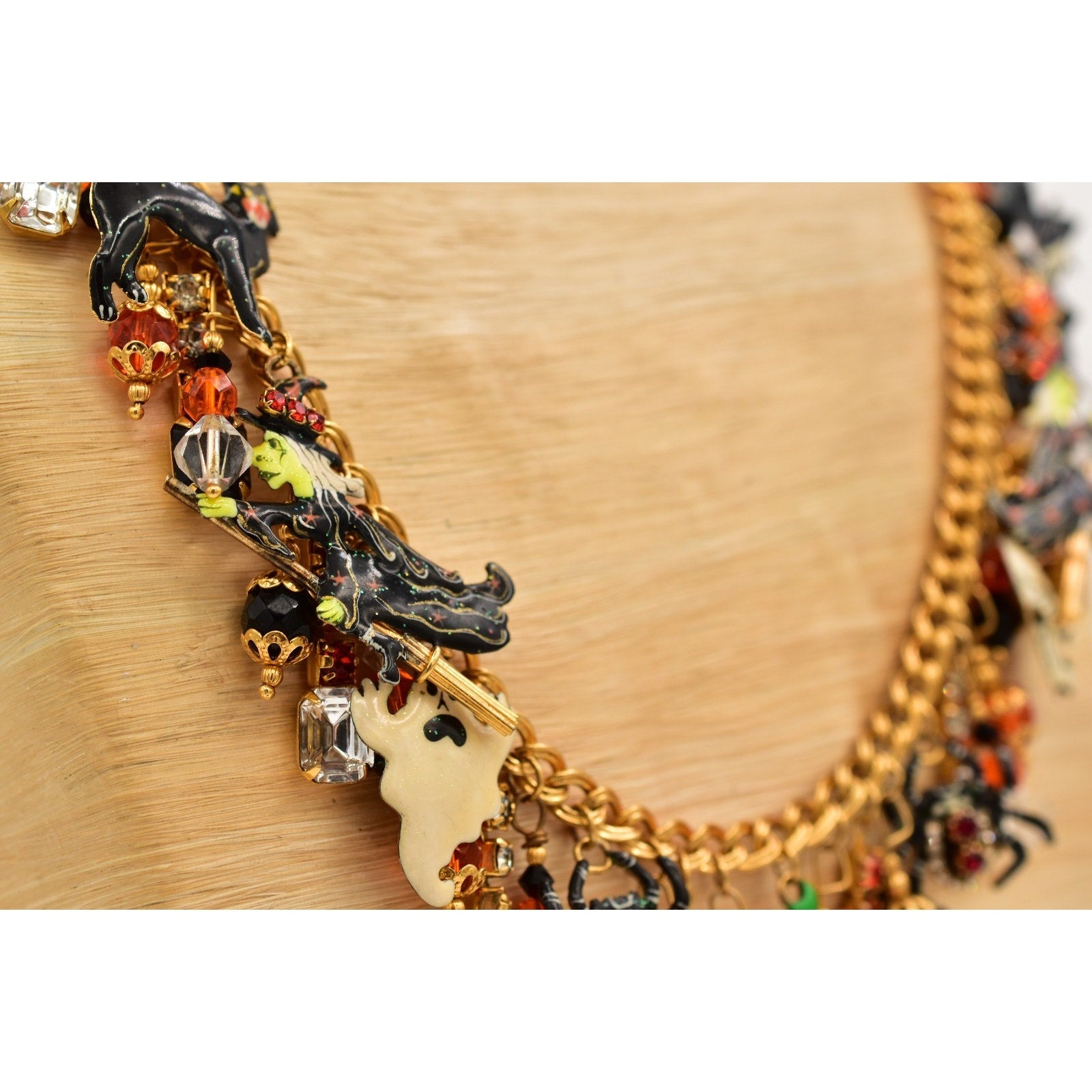 Vintage collector's Halloween charm necklace with a featuring spooky charms.