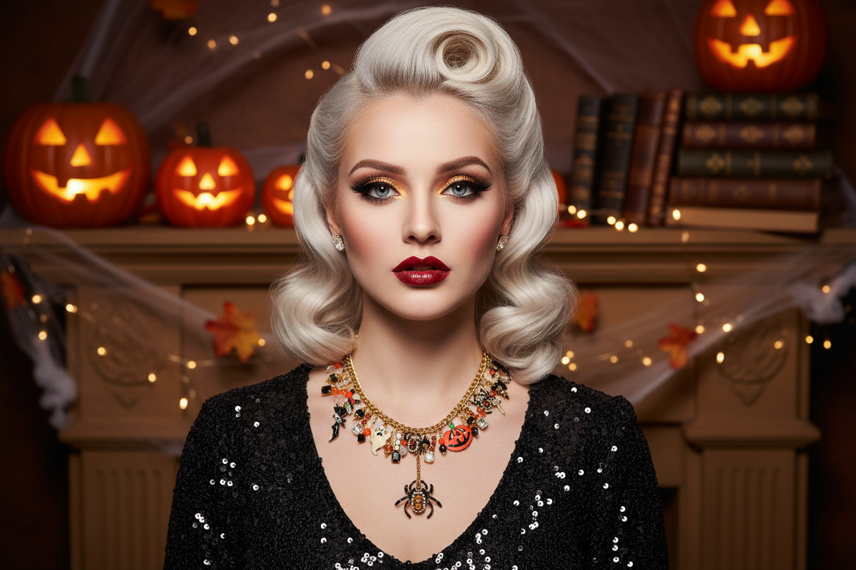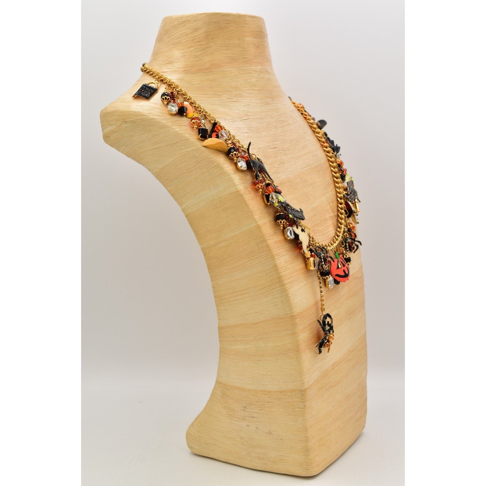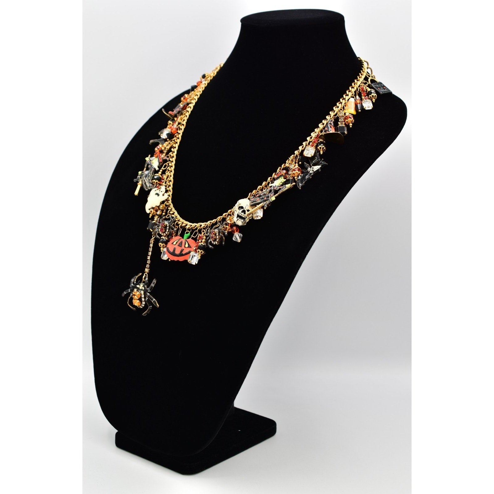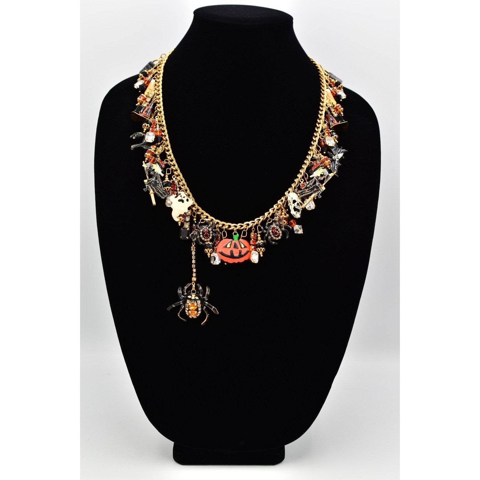 Vintage collector's Halloween charm necklace with a featuring spooky charms.