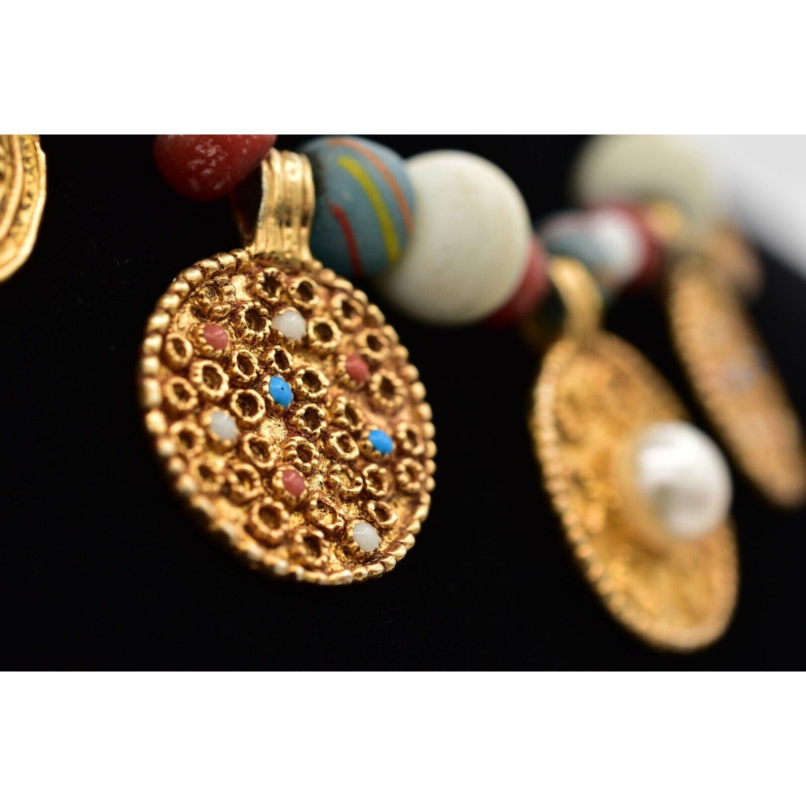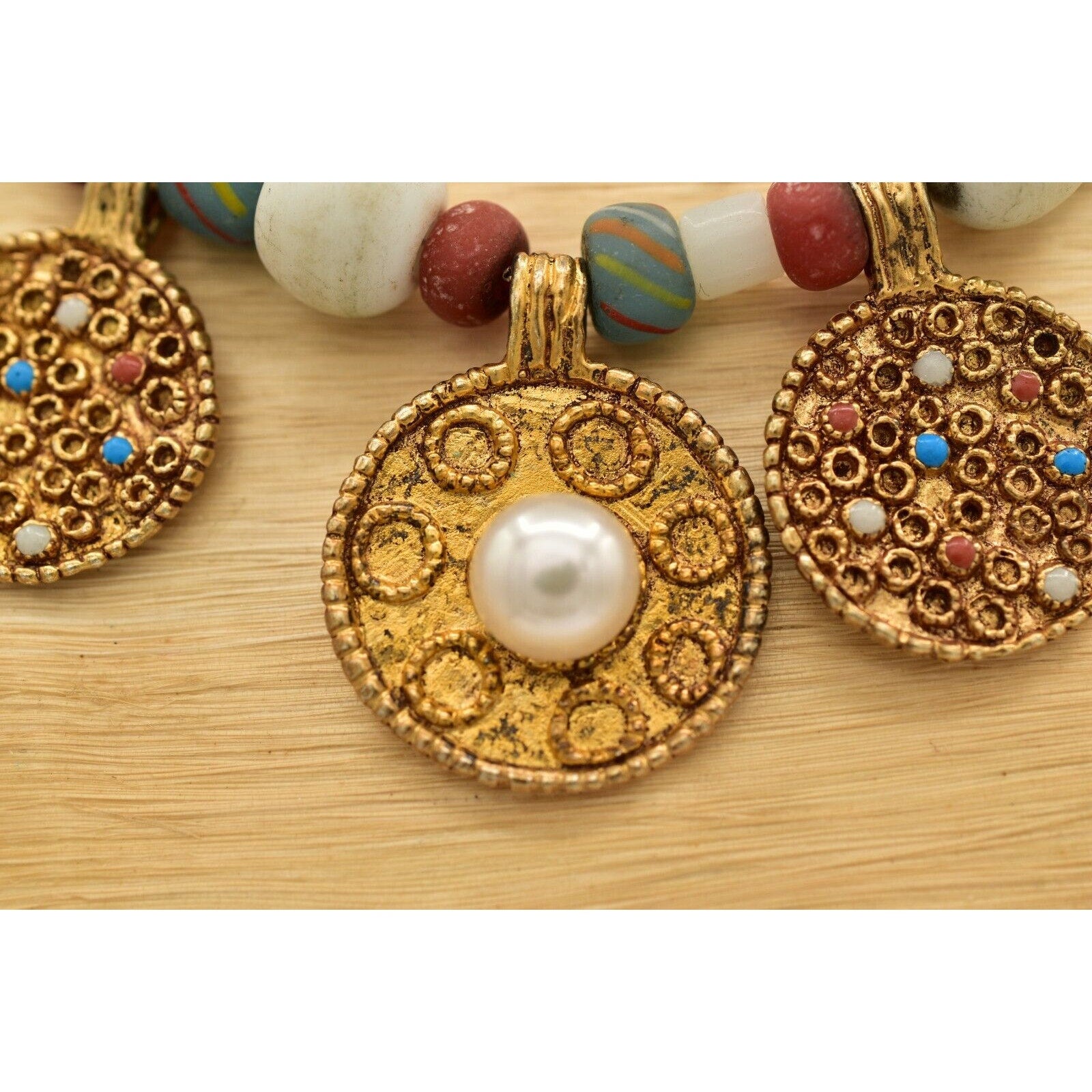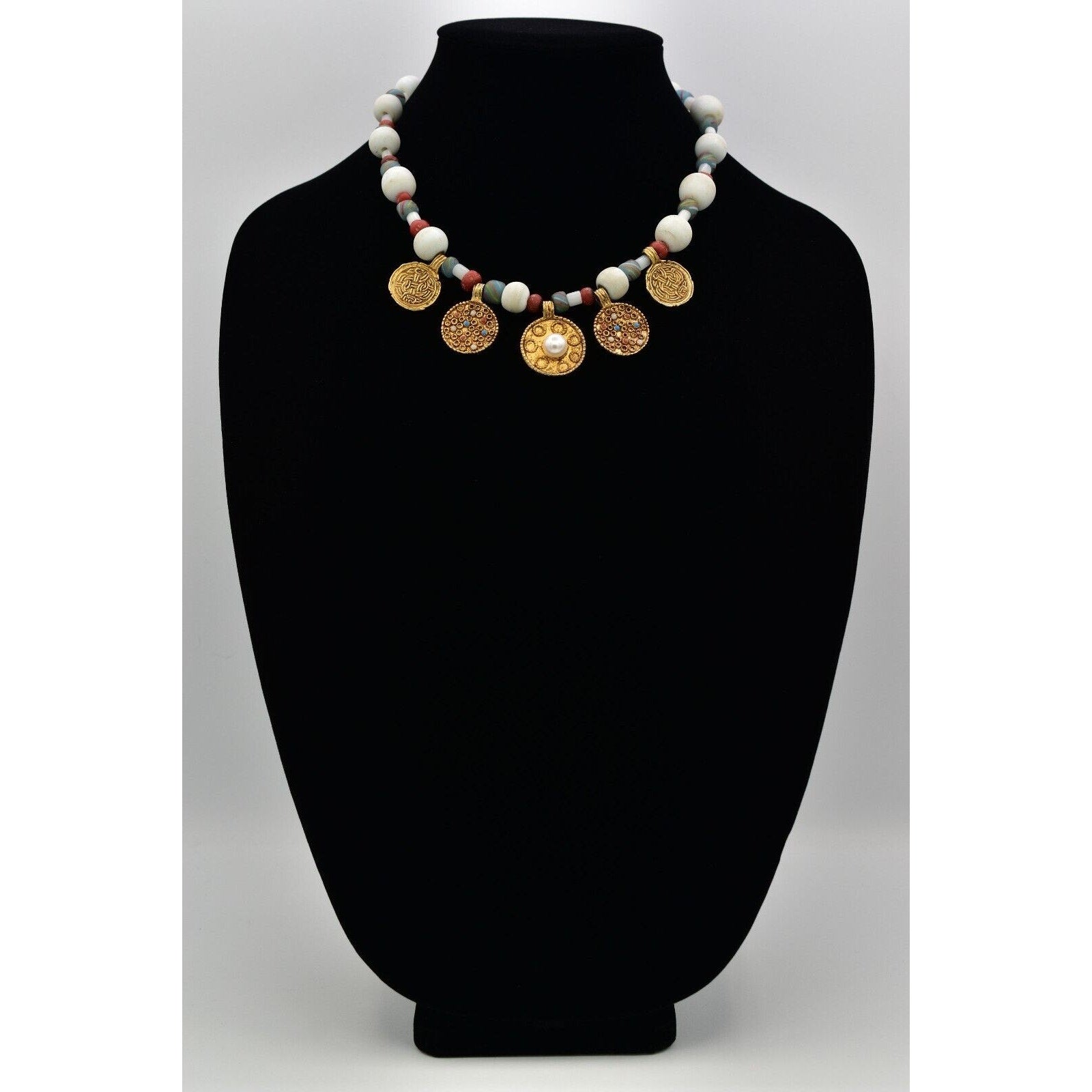 Metropolitan Museum of Arts vintage beaded collar necklace featuring brushed gold medallion charms.