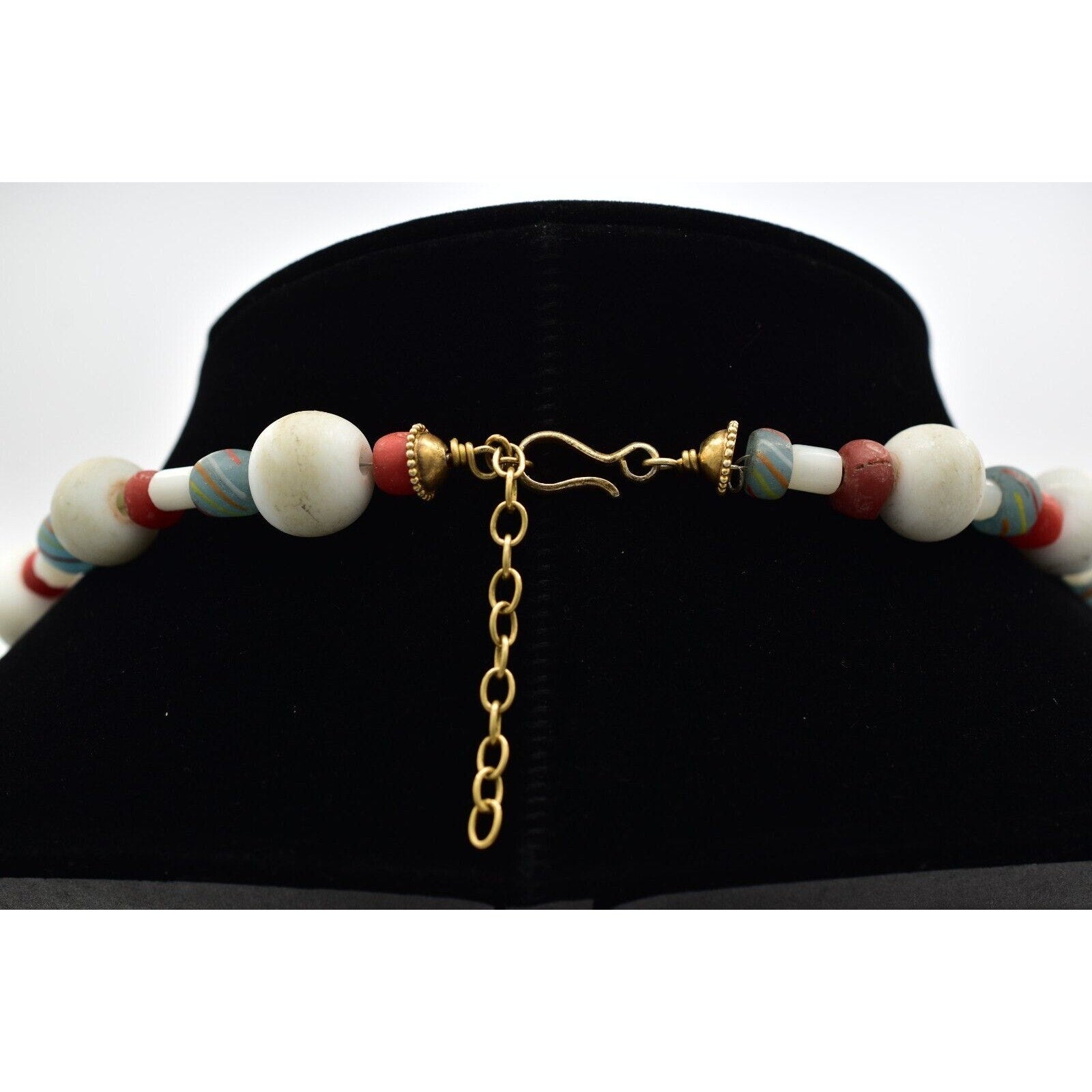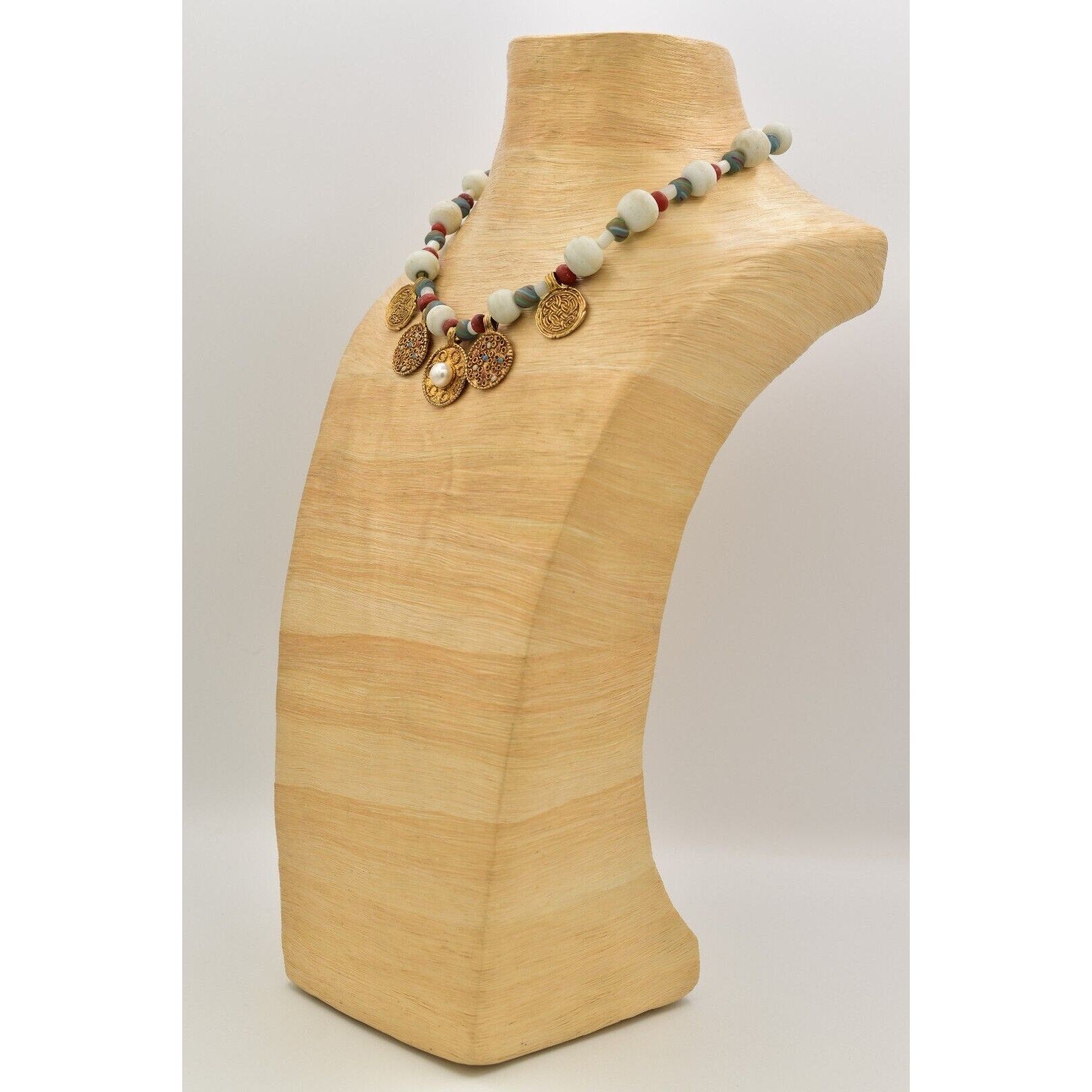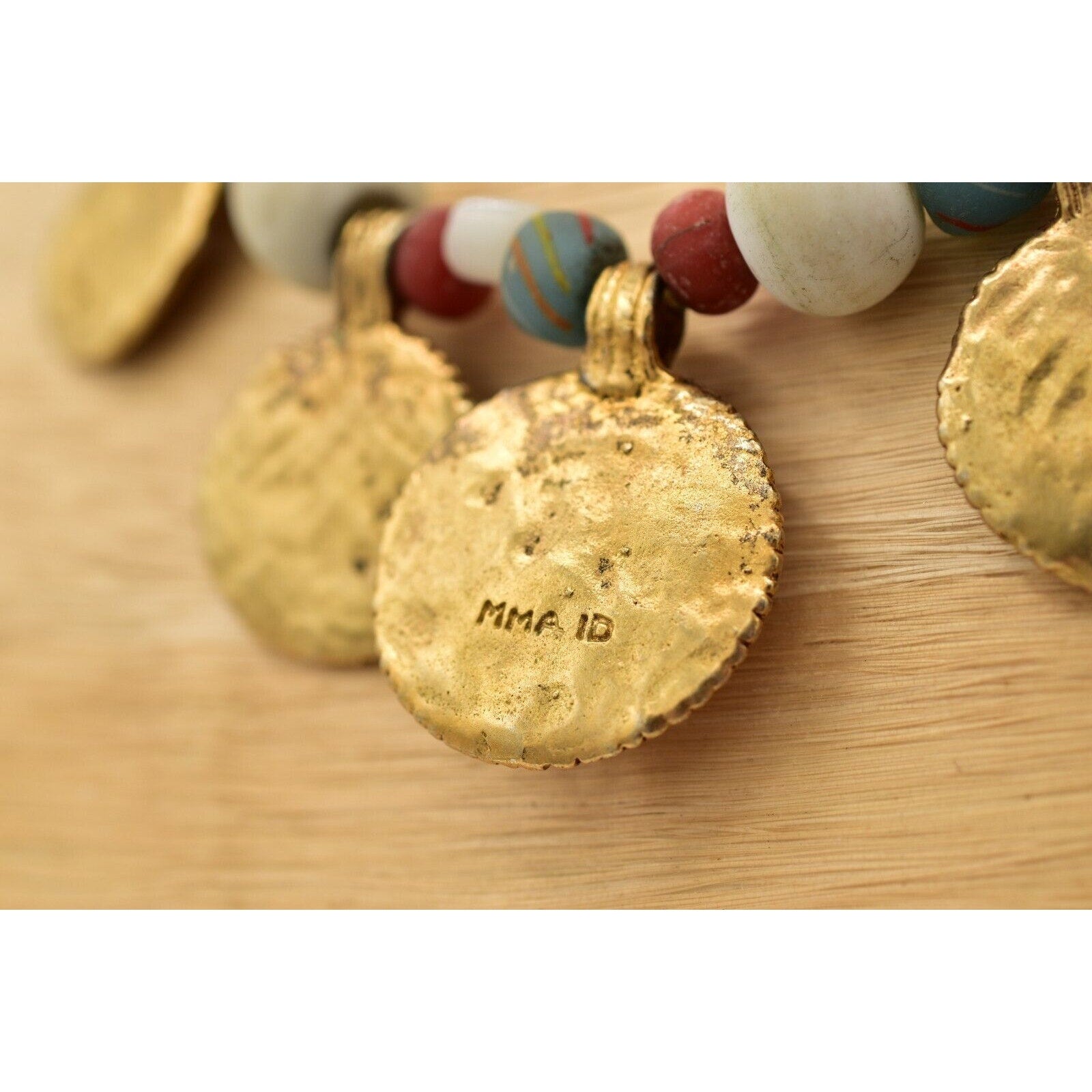 Metropolitan Museum of Arts vintage beaded collar necklace featuring brushed gold medallion charms.
