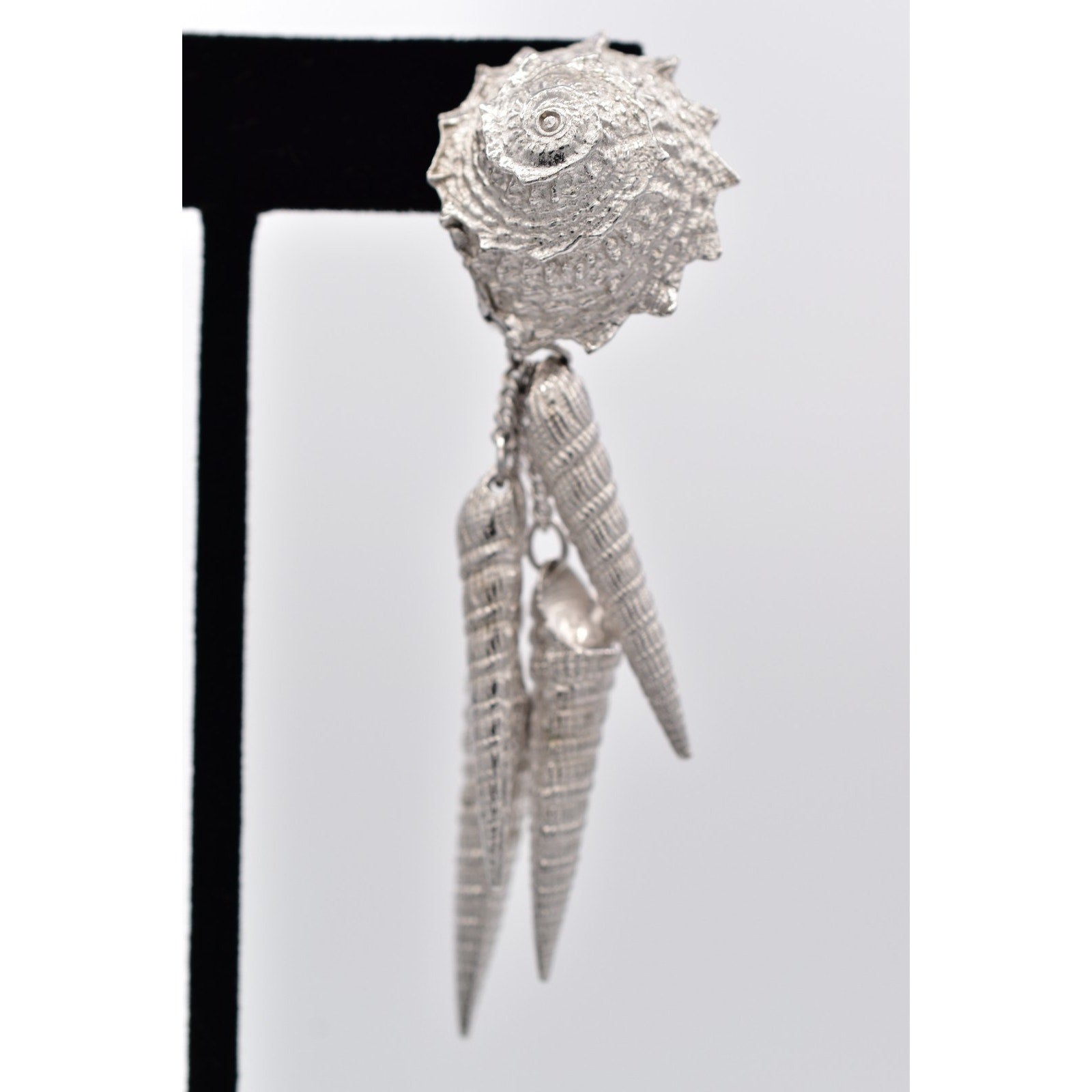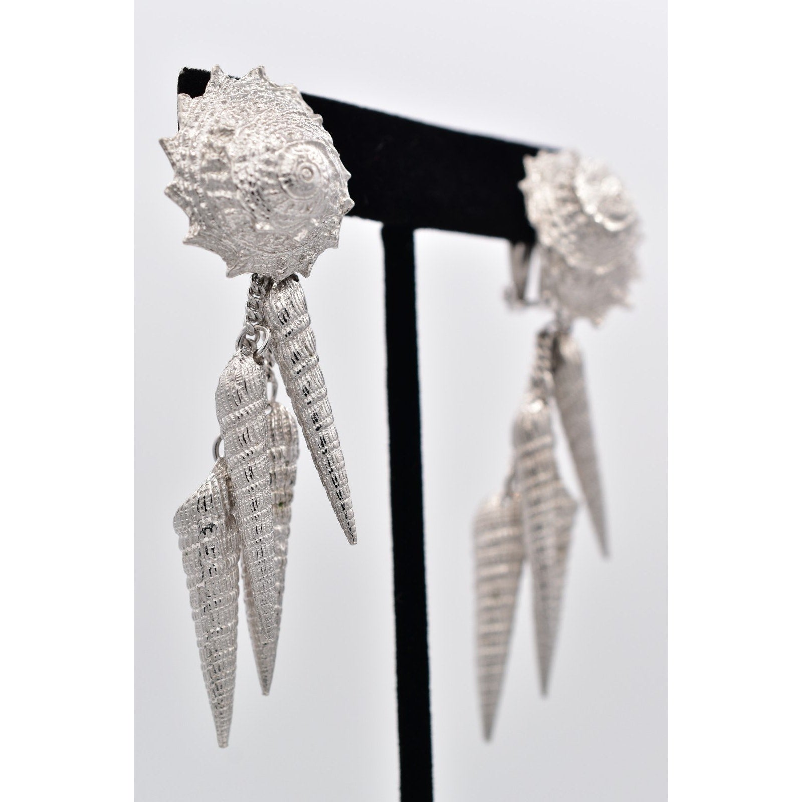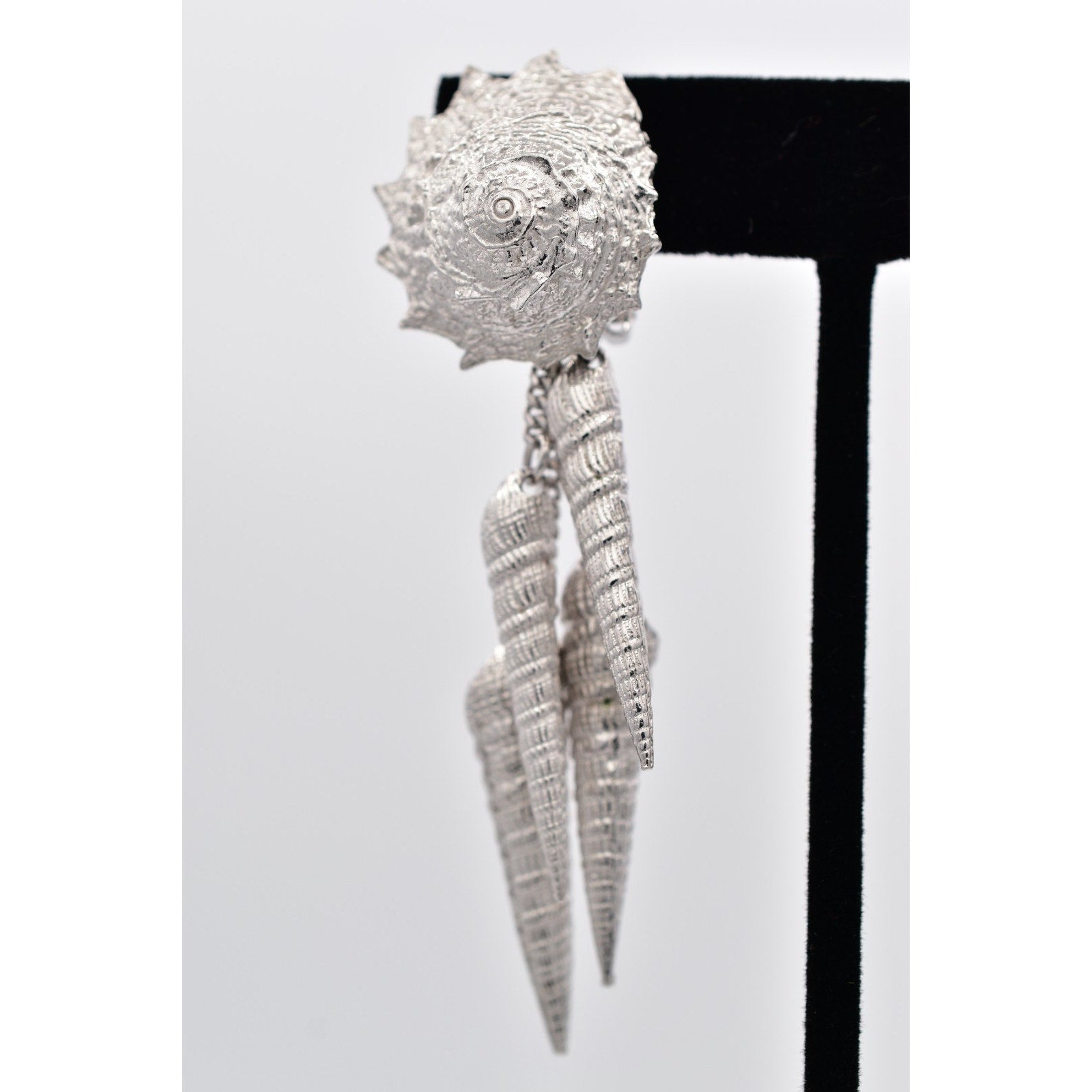 • Design: Dramatic ocean-inspired dangle earrings featuring textured spiral seashell studs with cascading shell cone drops