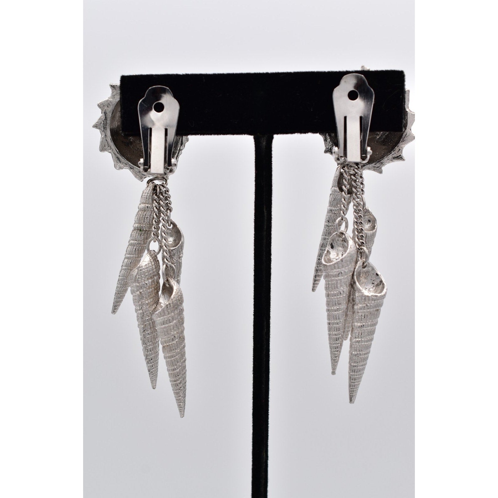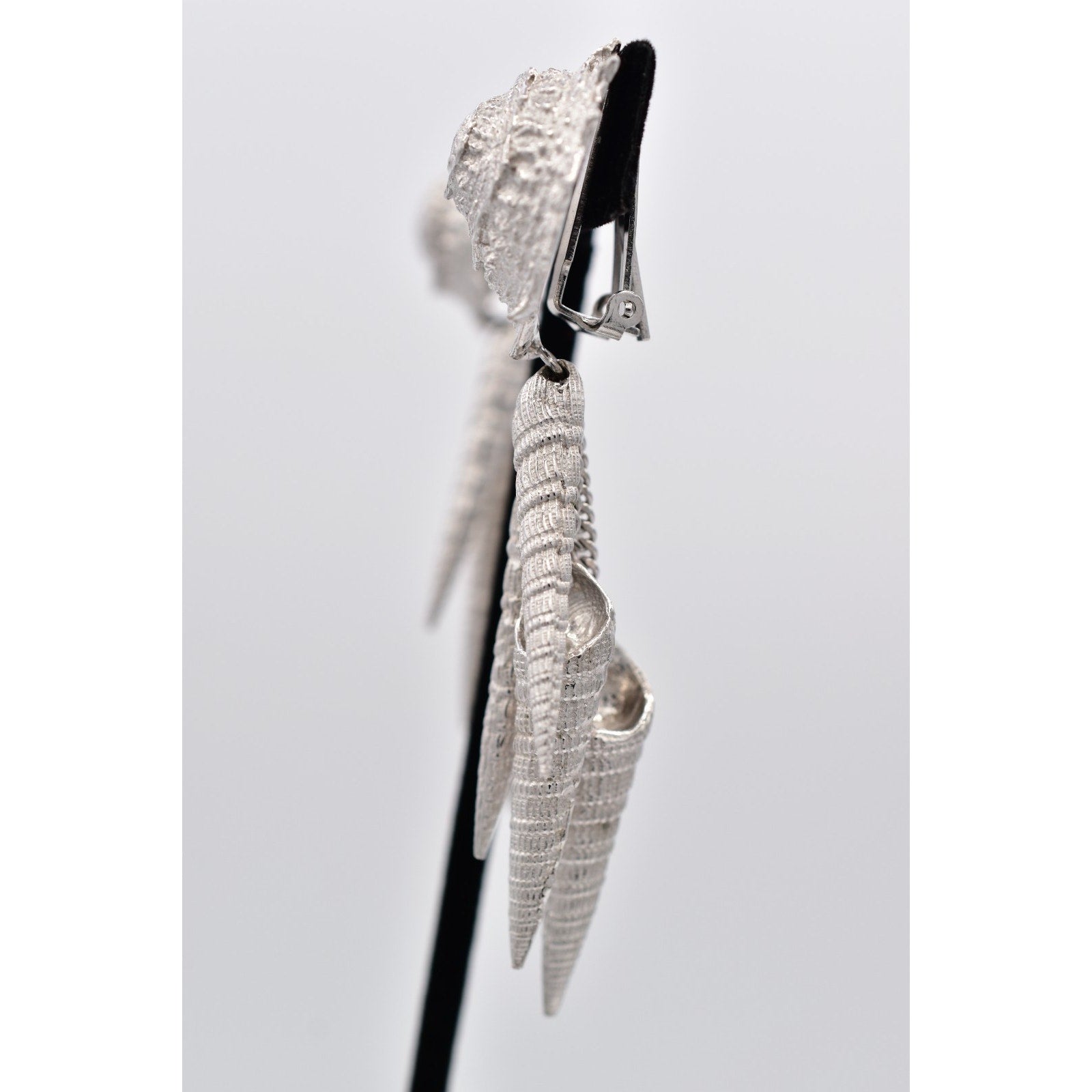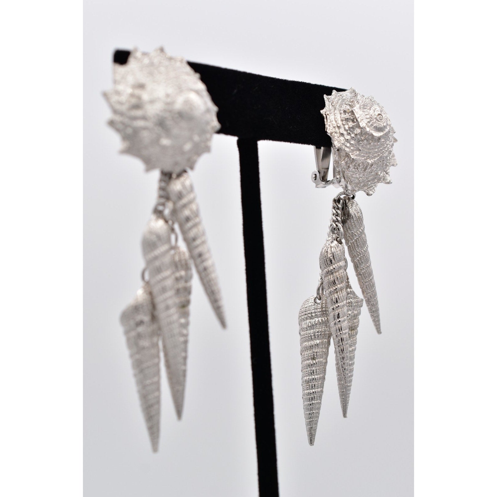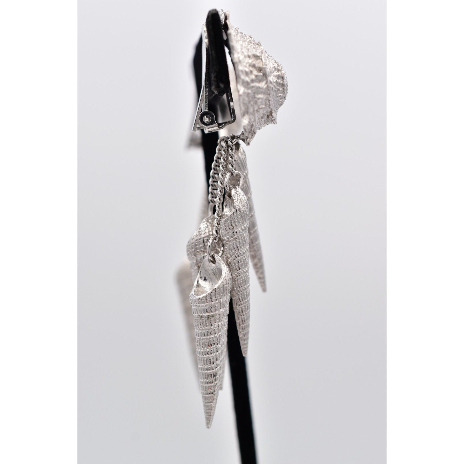 • Design: Dramatic ocean-inspired dangle earrings featuring textured spiral seashell studs with cascading shell cone drops