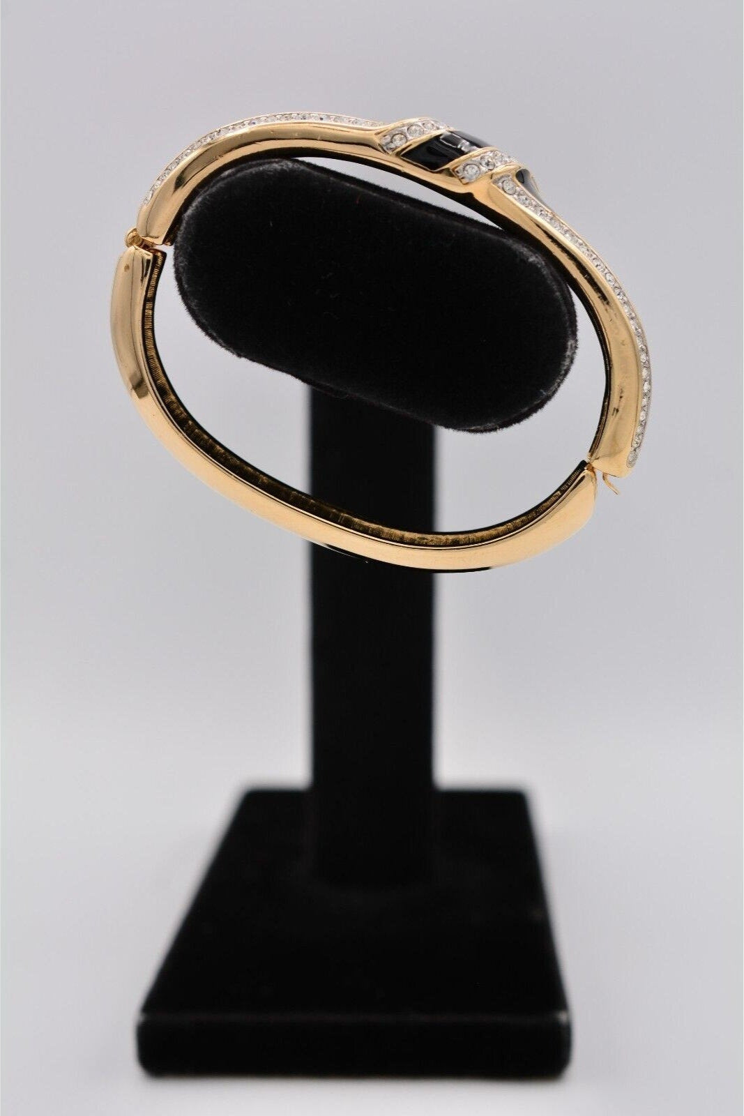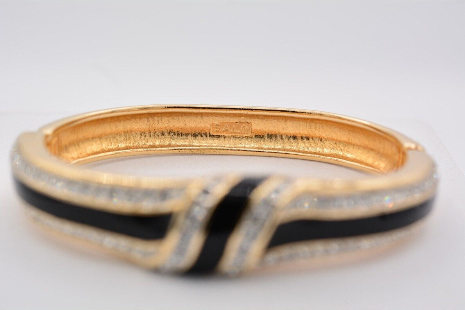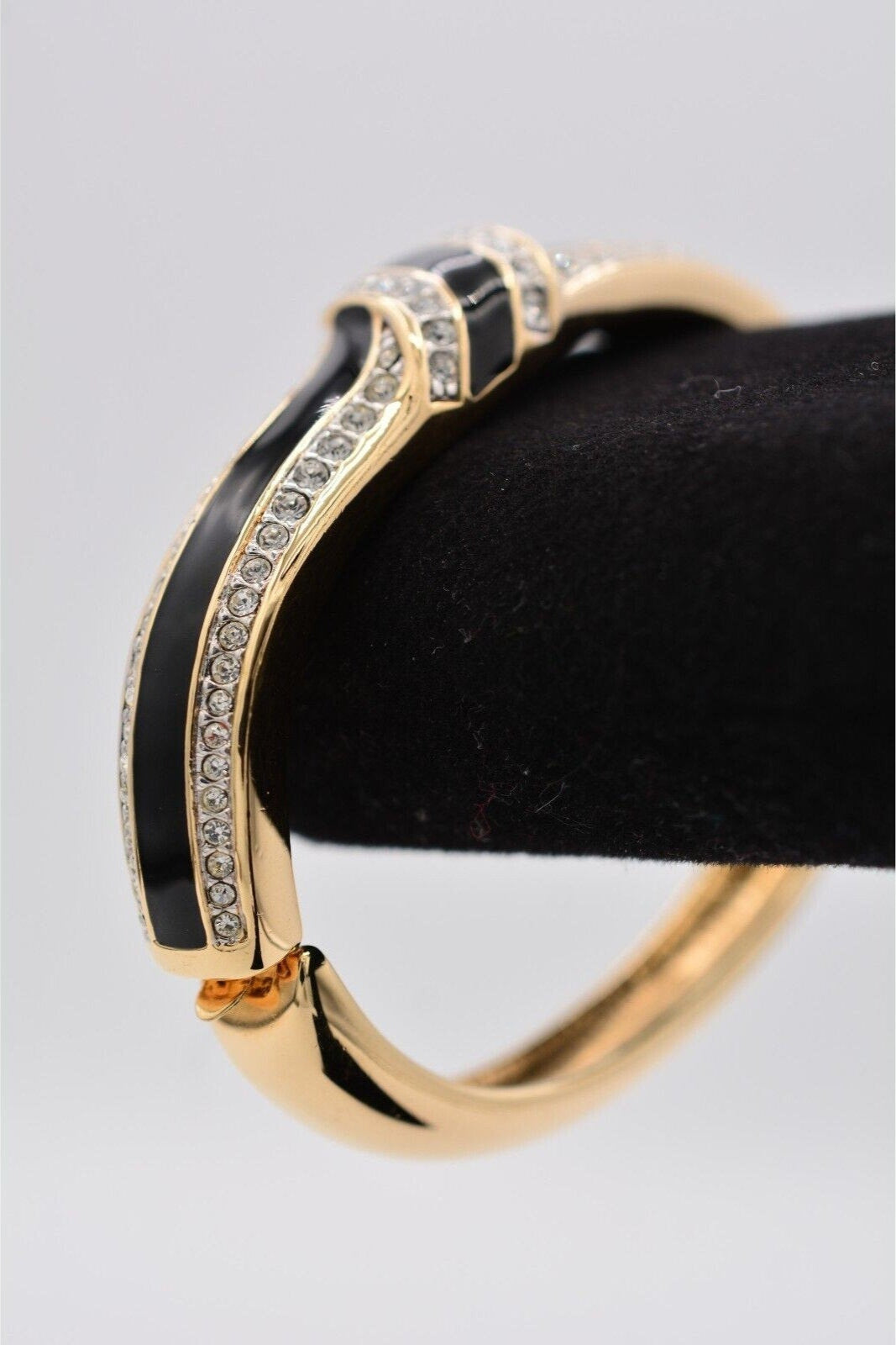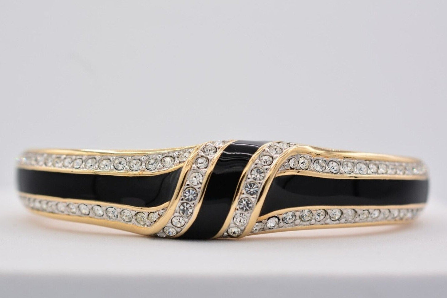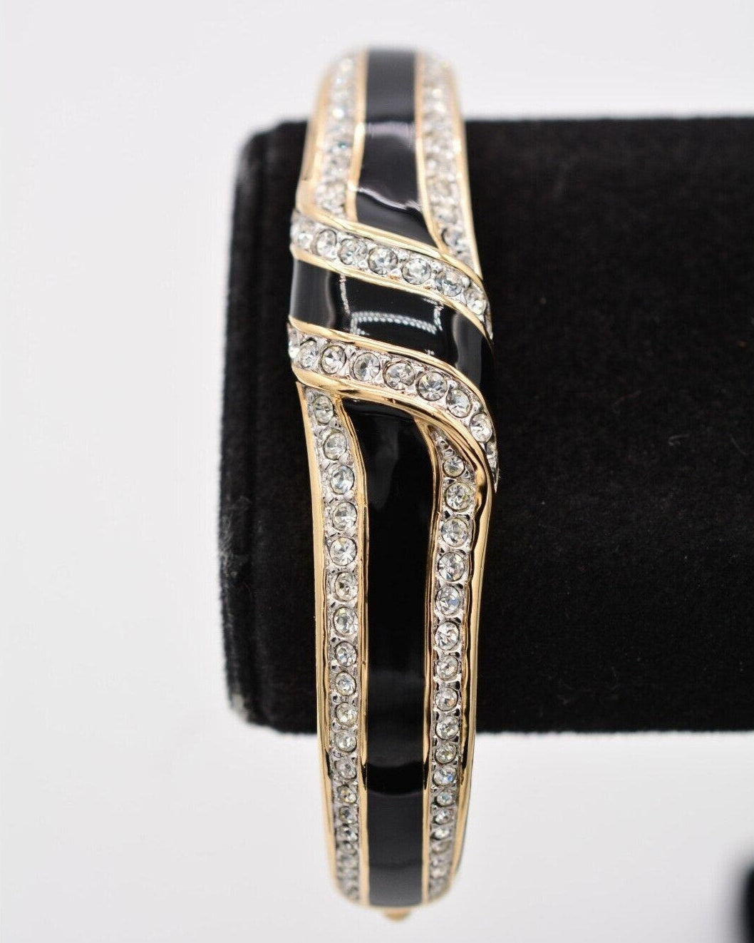 Vintage Swarovski bangle with shiny black enamel and sparkling pavé crystals.
