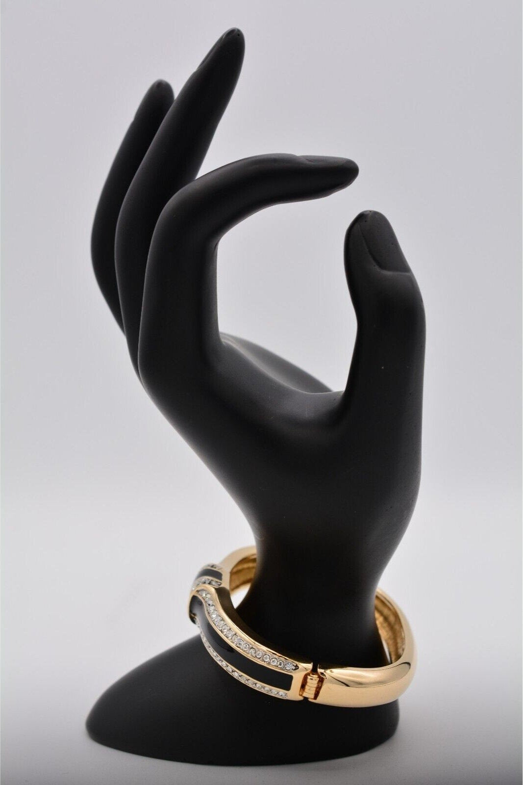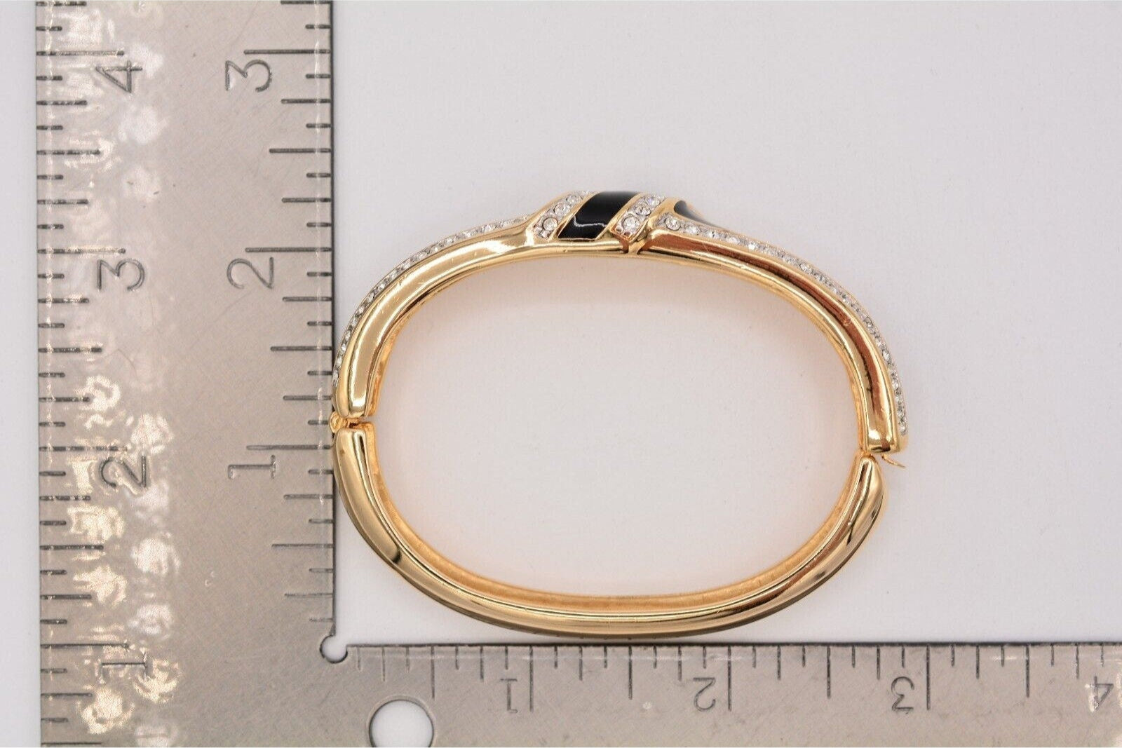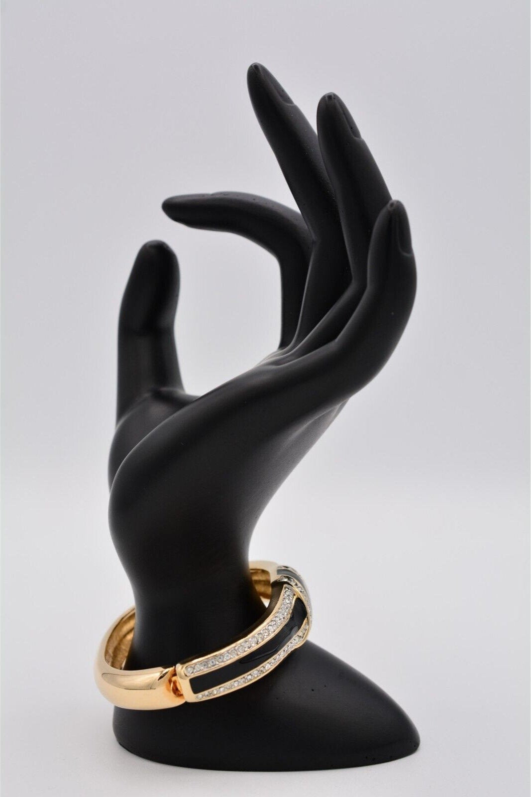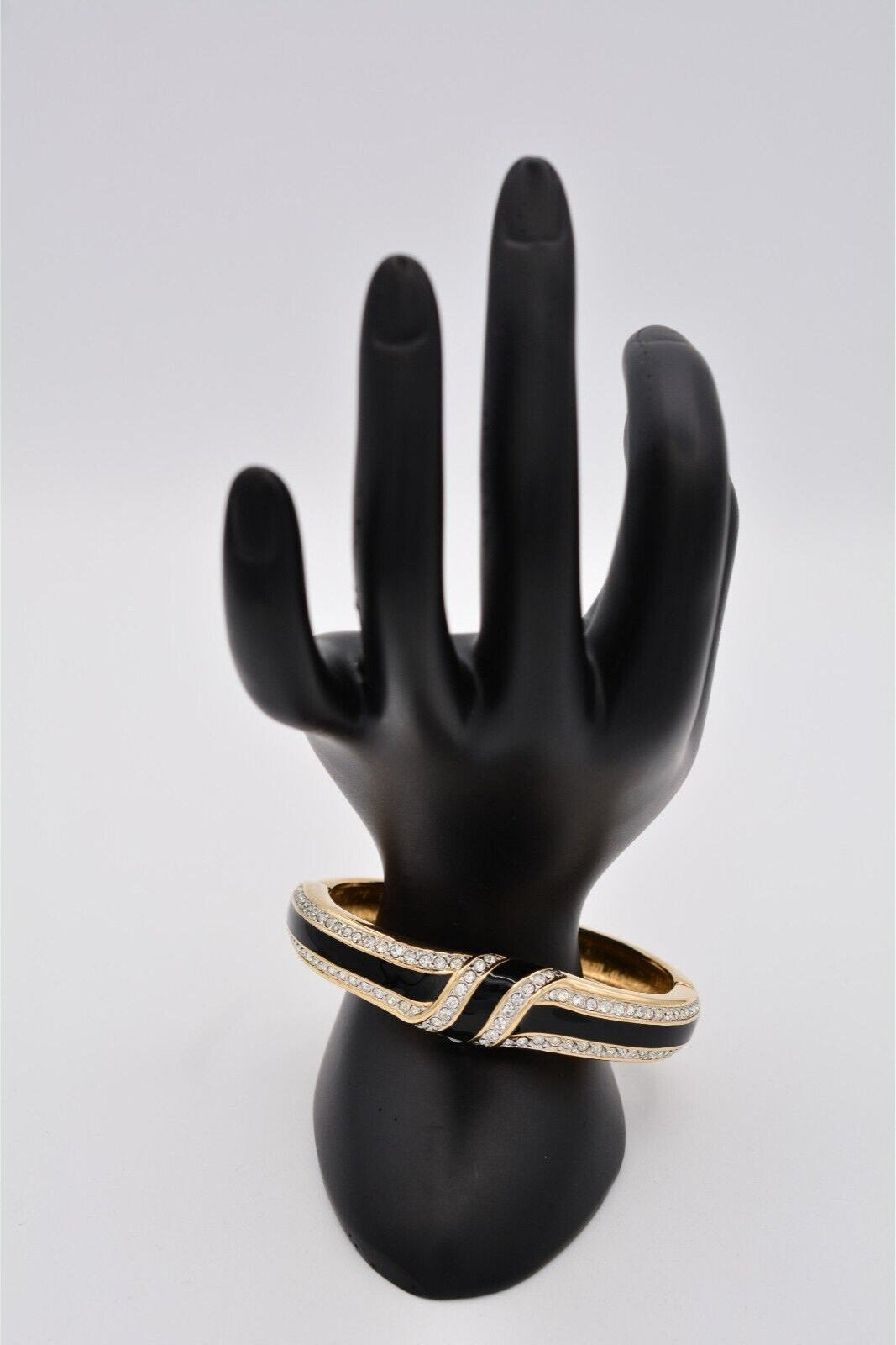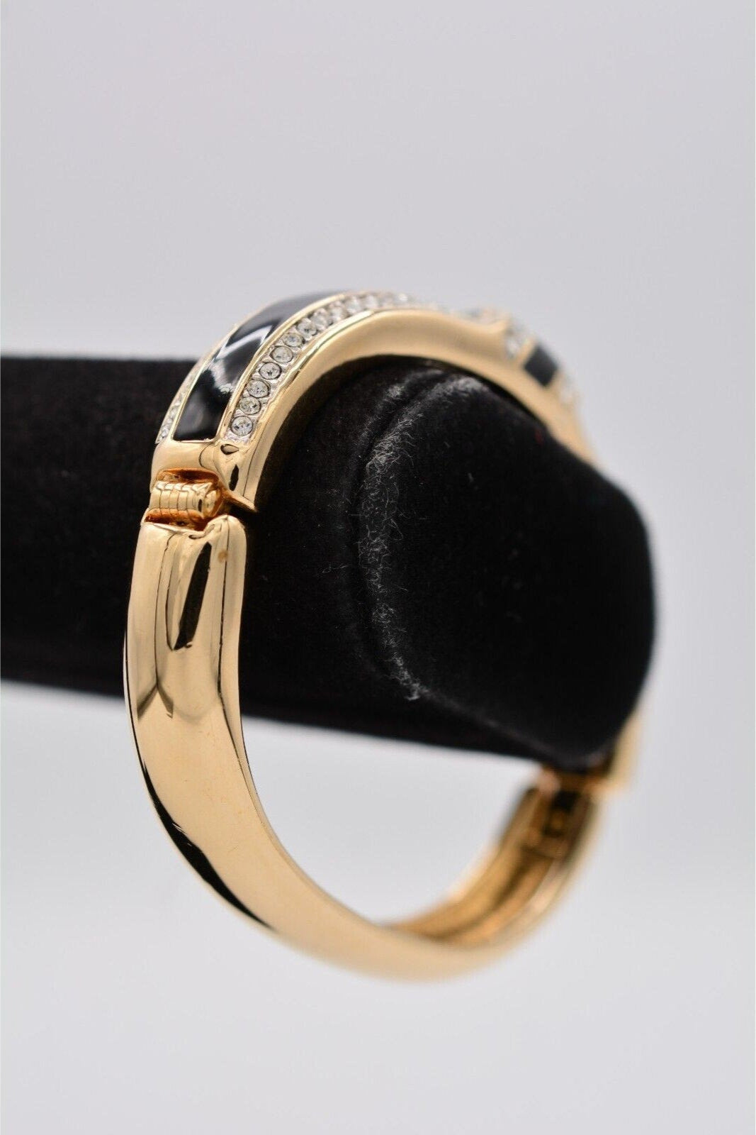 Vintage Swarovski bangle with shiny black enamel and sparkling pavé crystals.