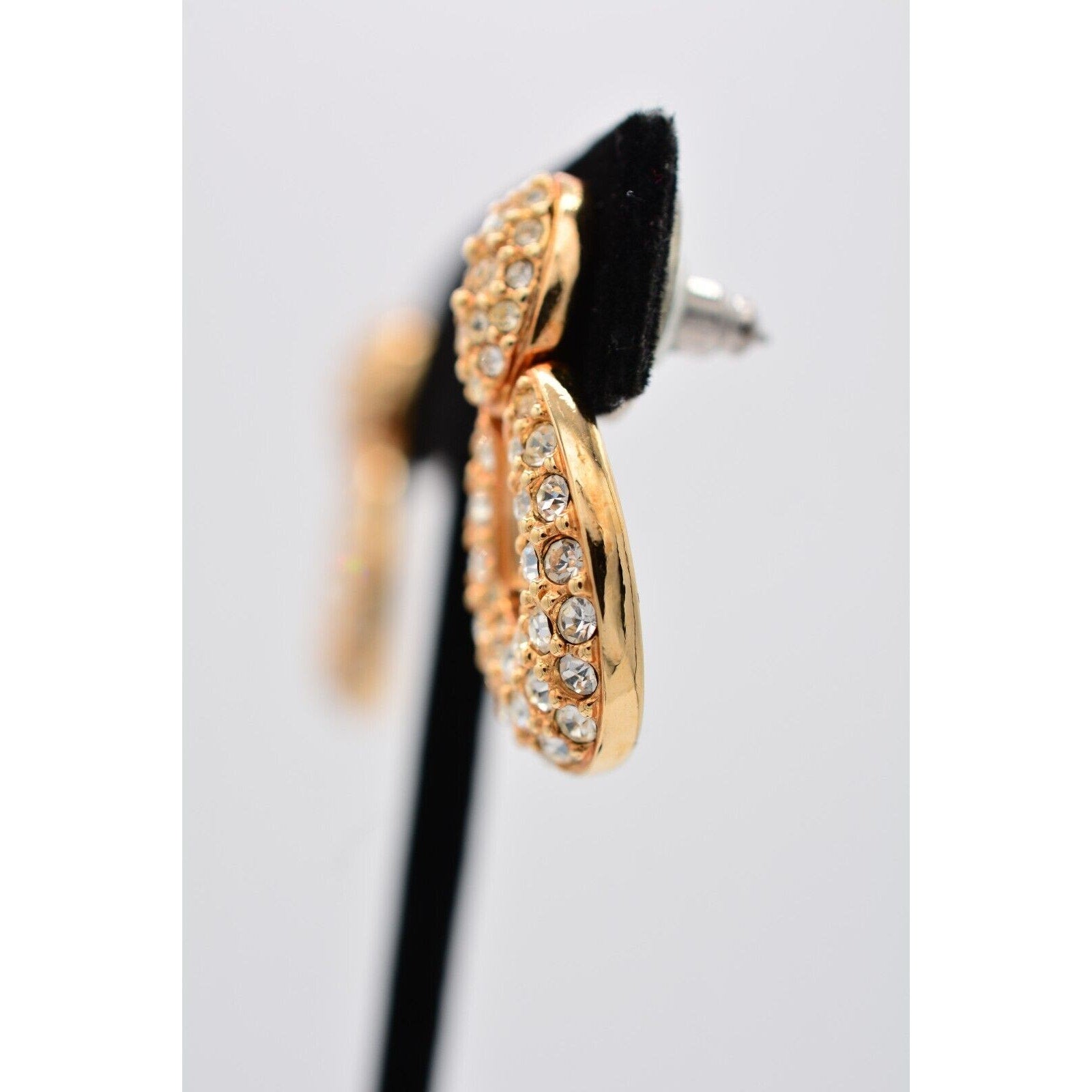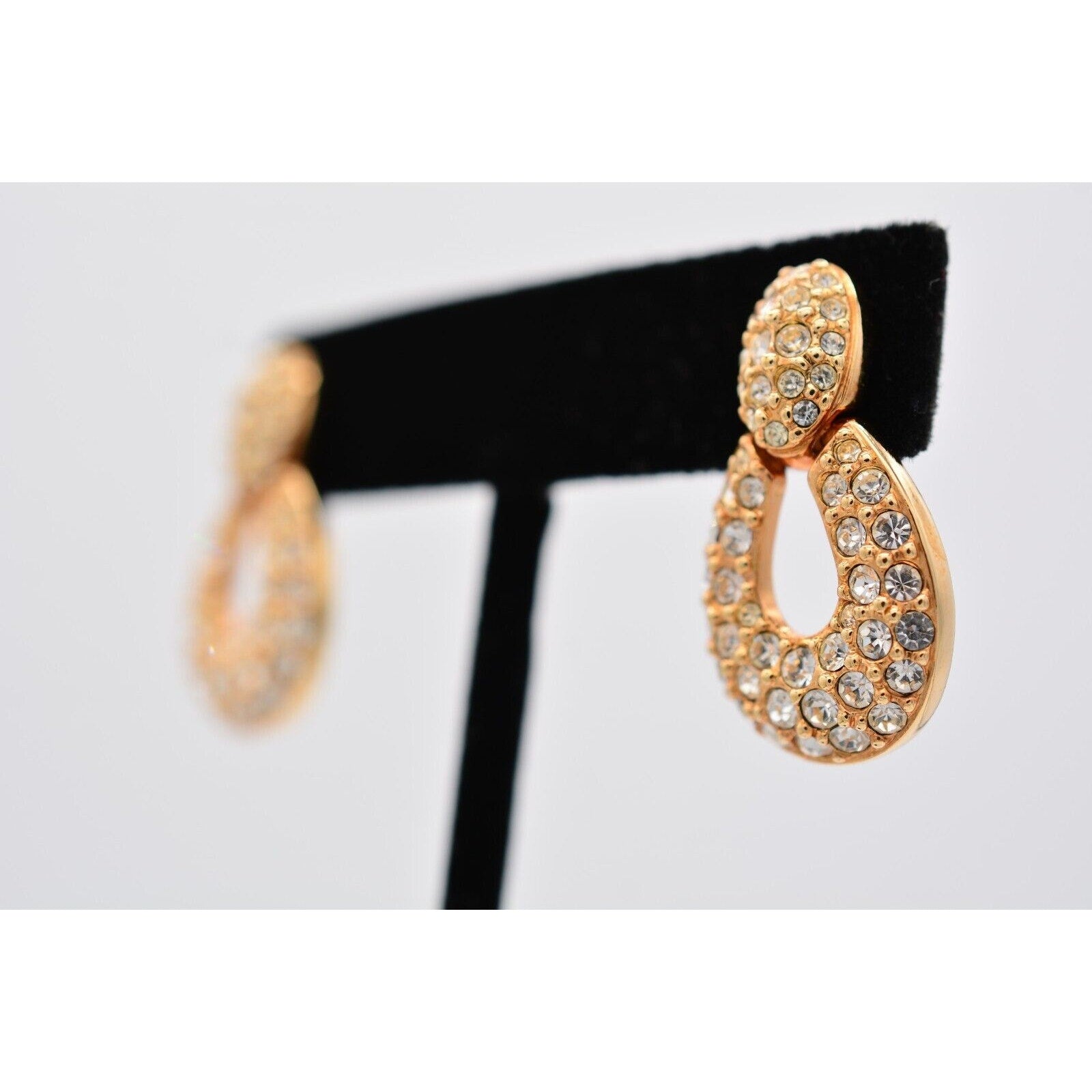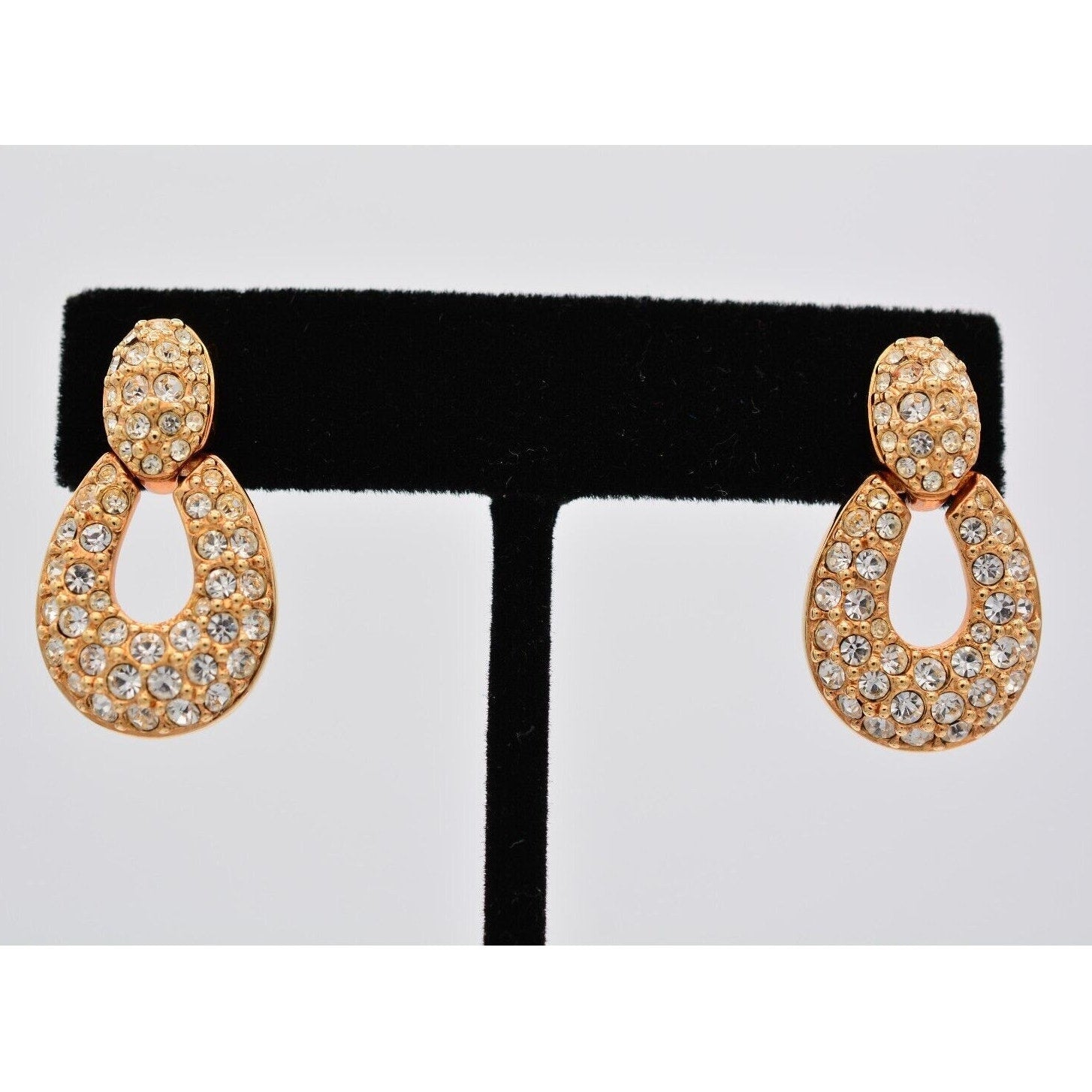 Vintage Swarovski door knocker earrings adorned with rhinestone crystals.
