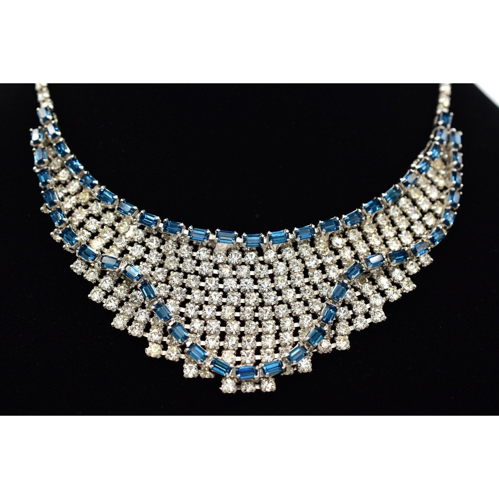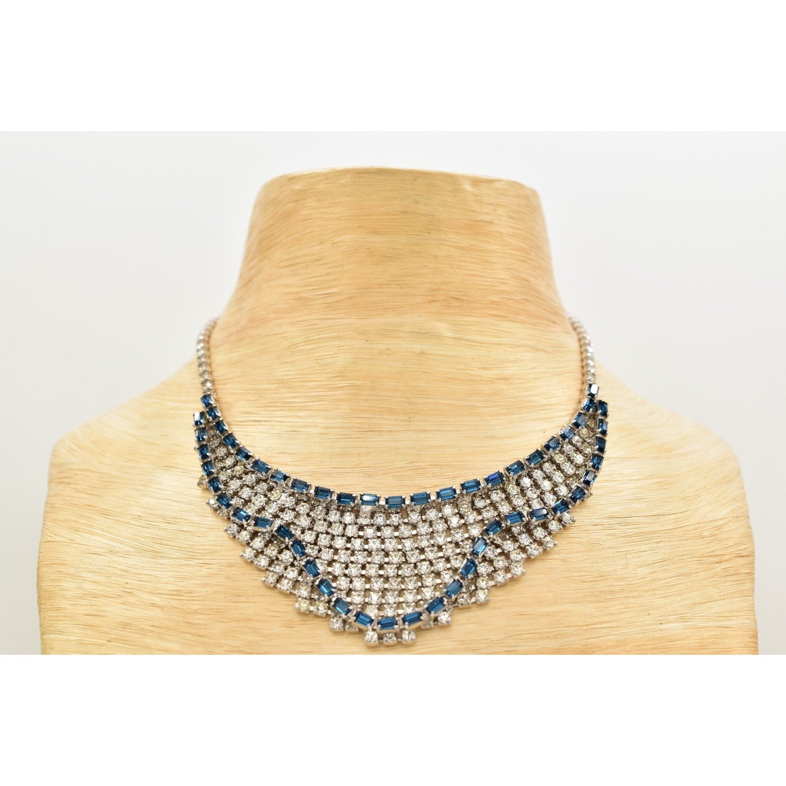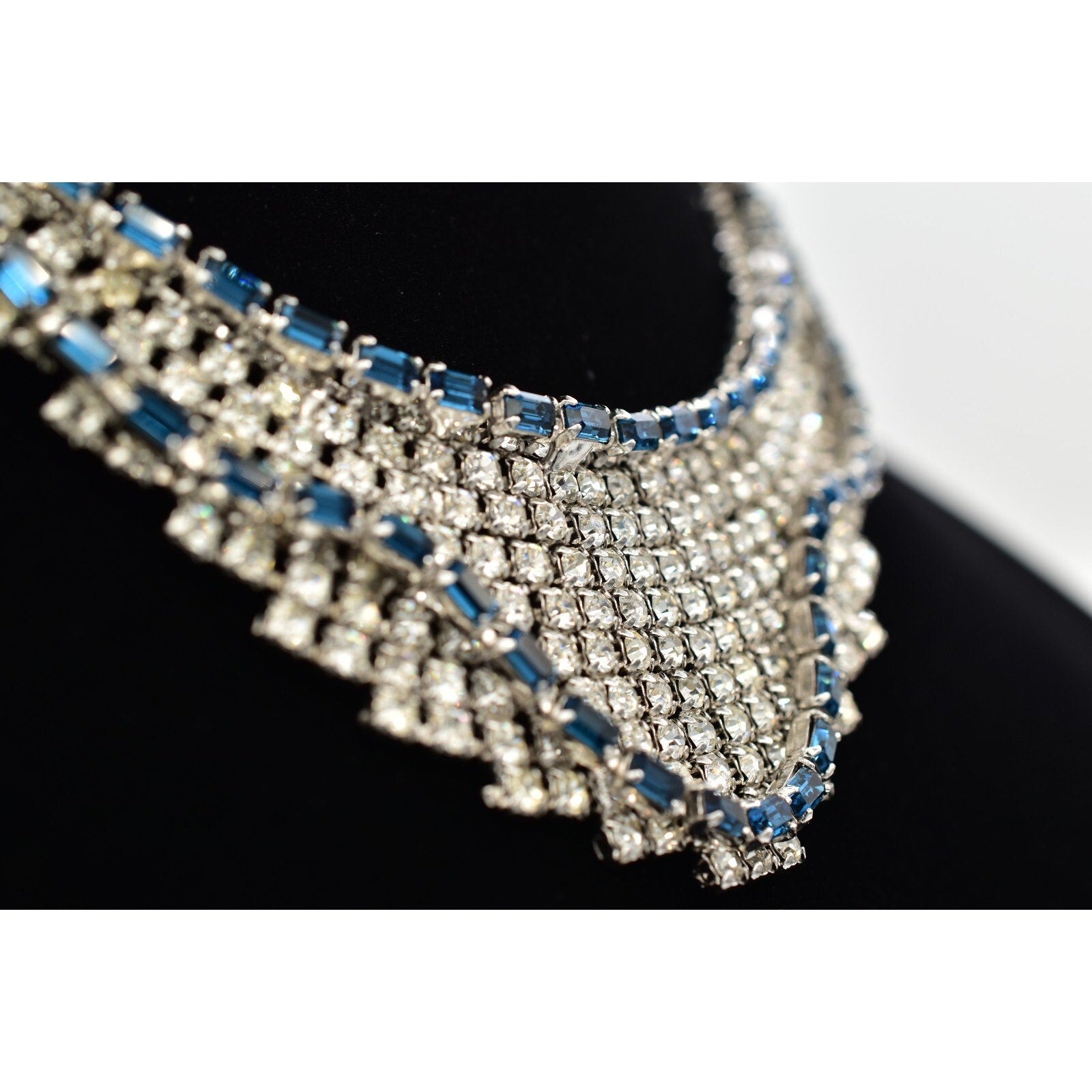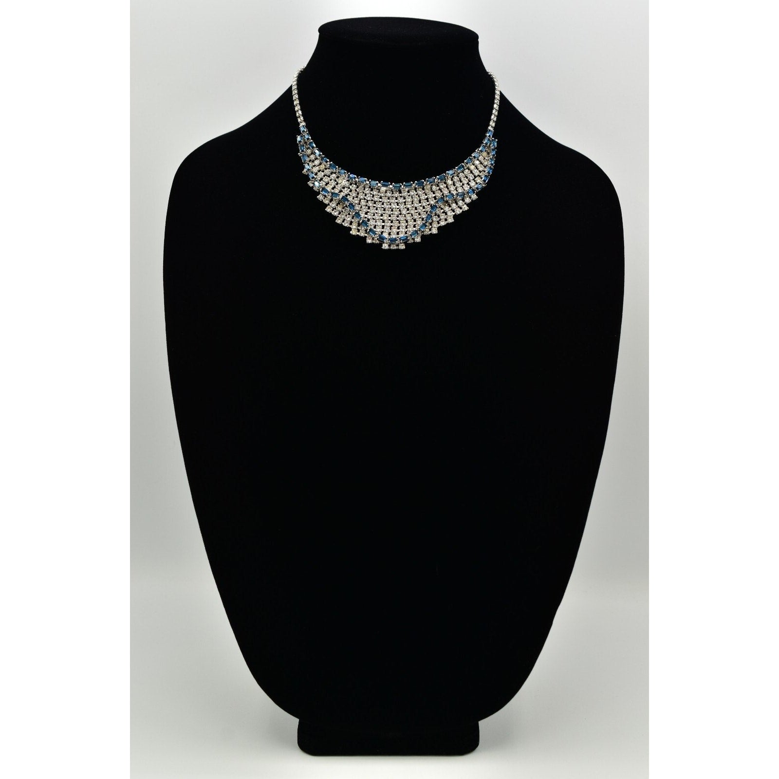 Vintage Blue Rhinestone Crystal Collar Necklace