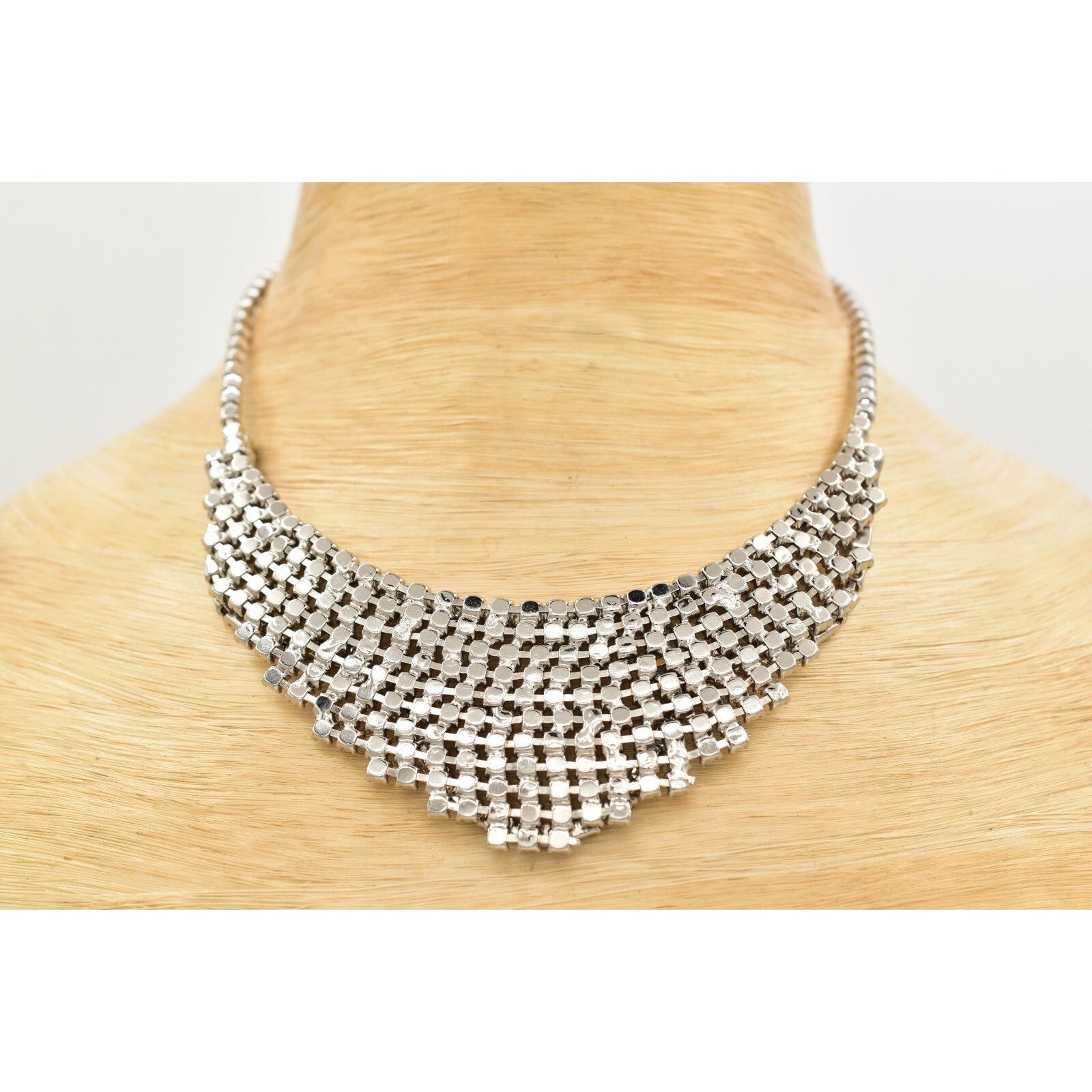 Vintage collar necklace adorned with sparkling rhinestone crystals.