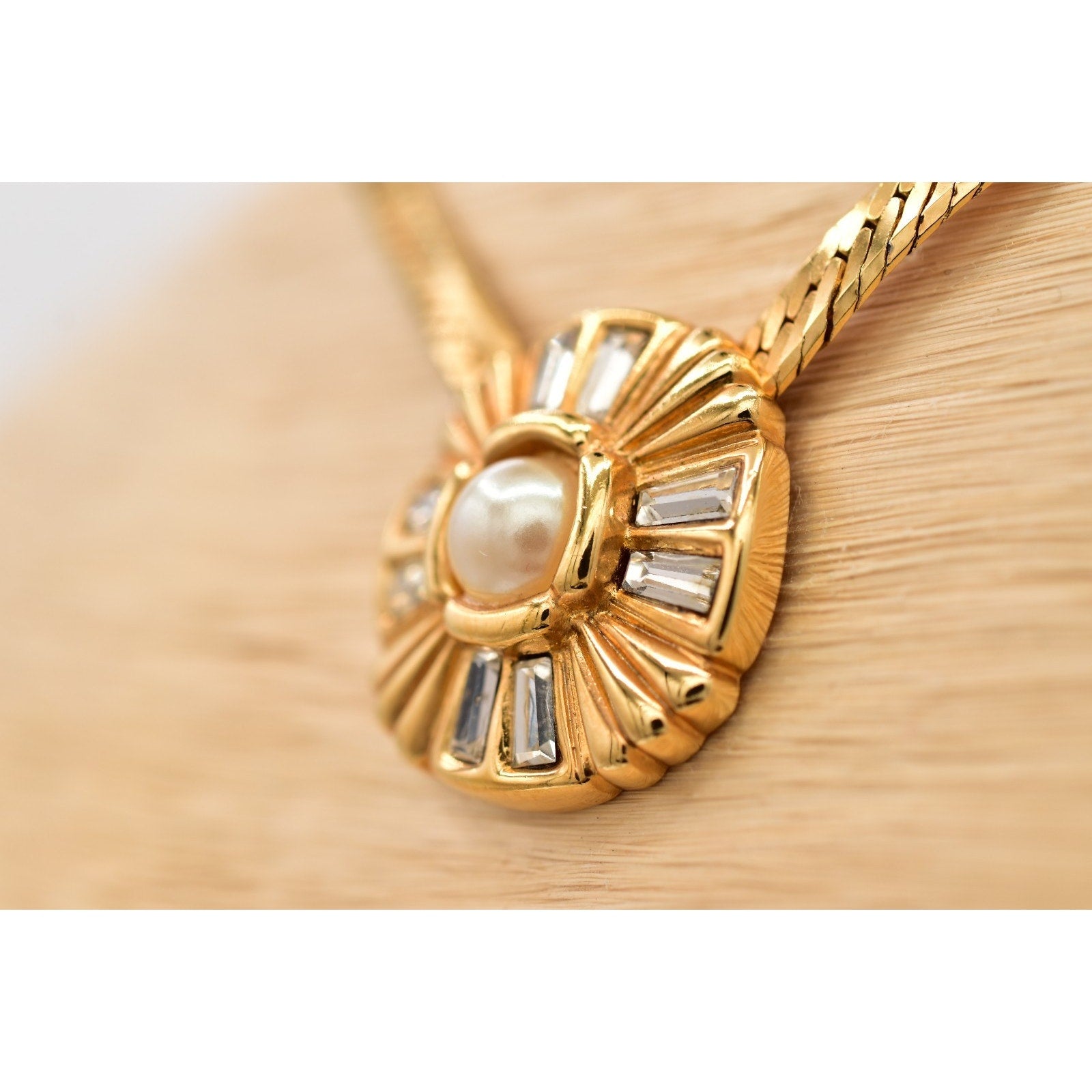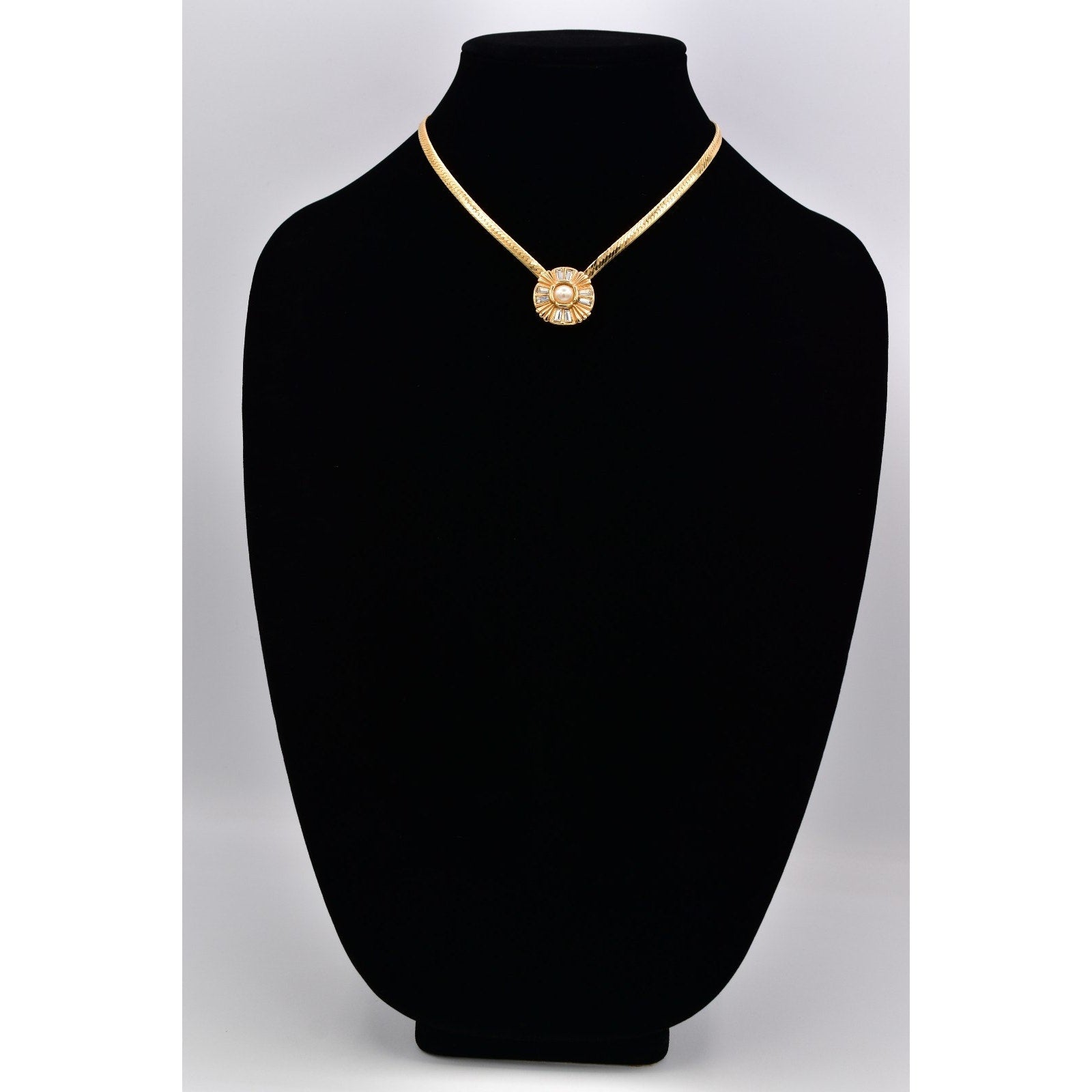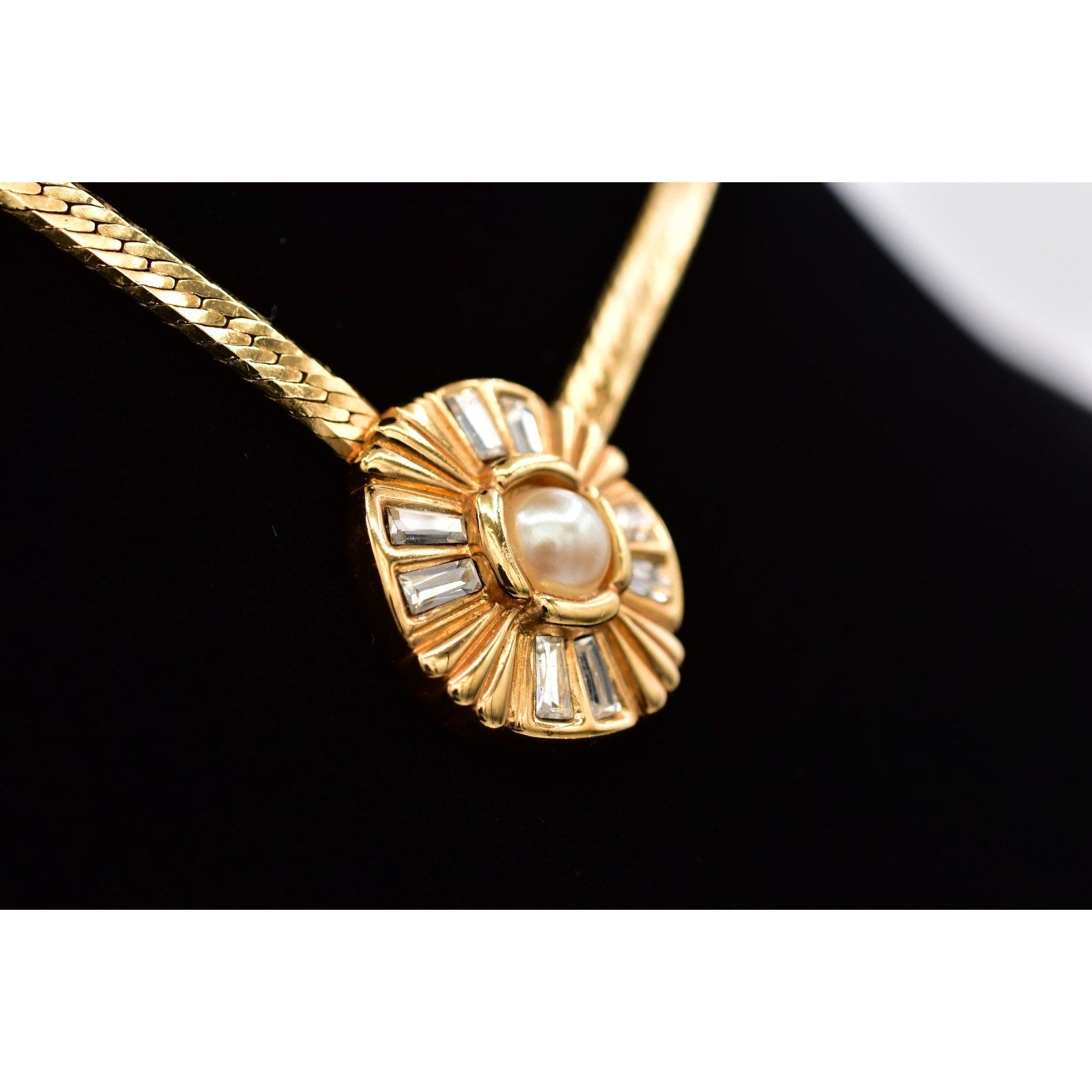 Gorgeous Givenchy collar necklace featuring baguette crystals and a pearl center.