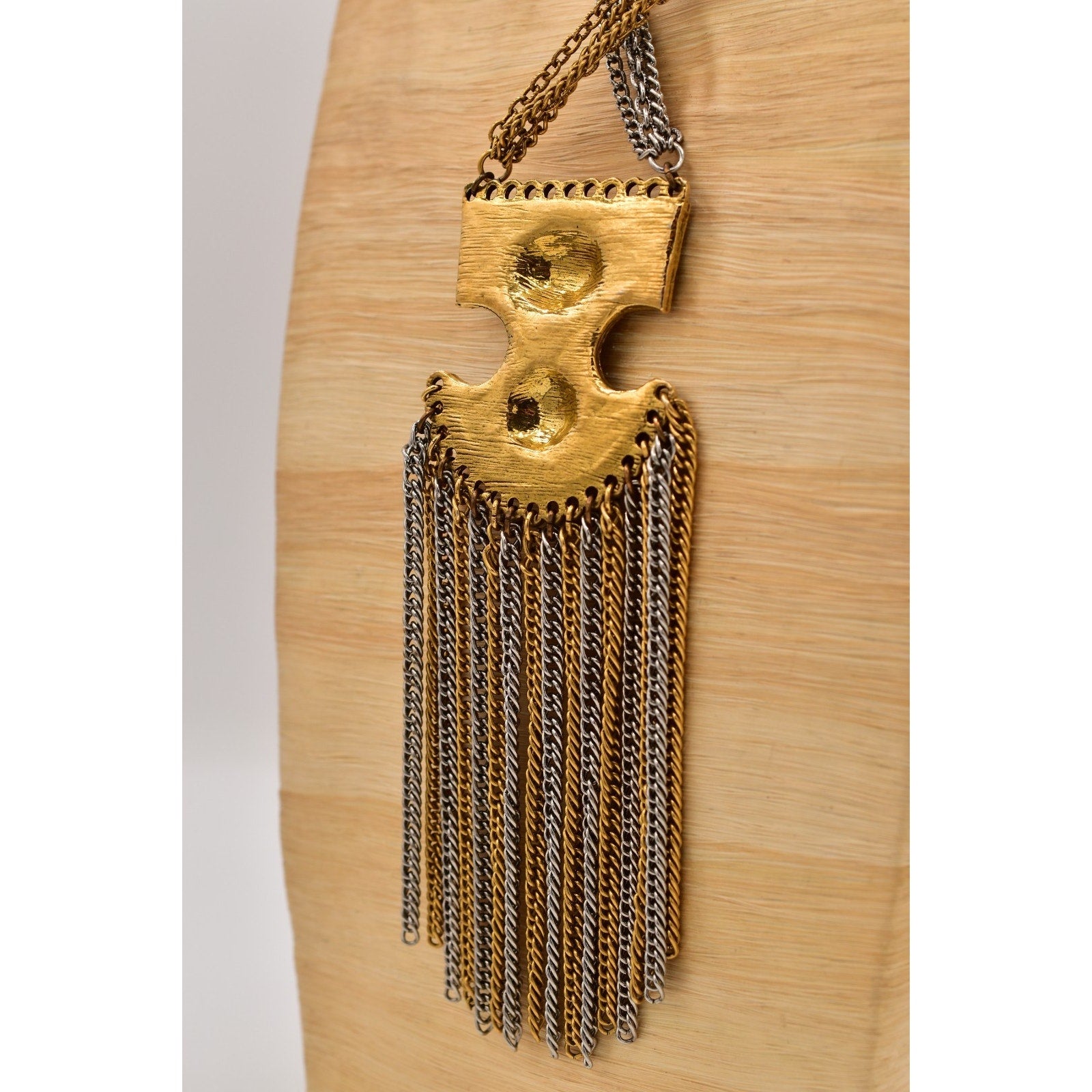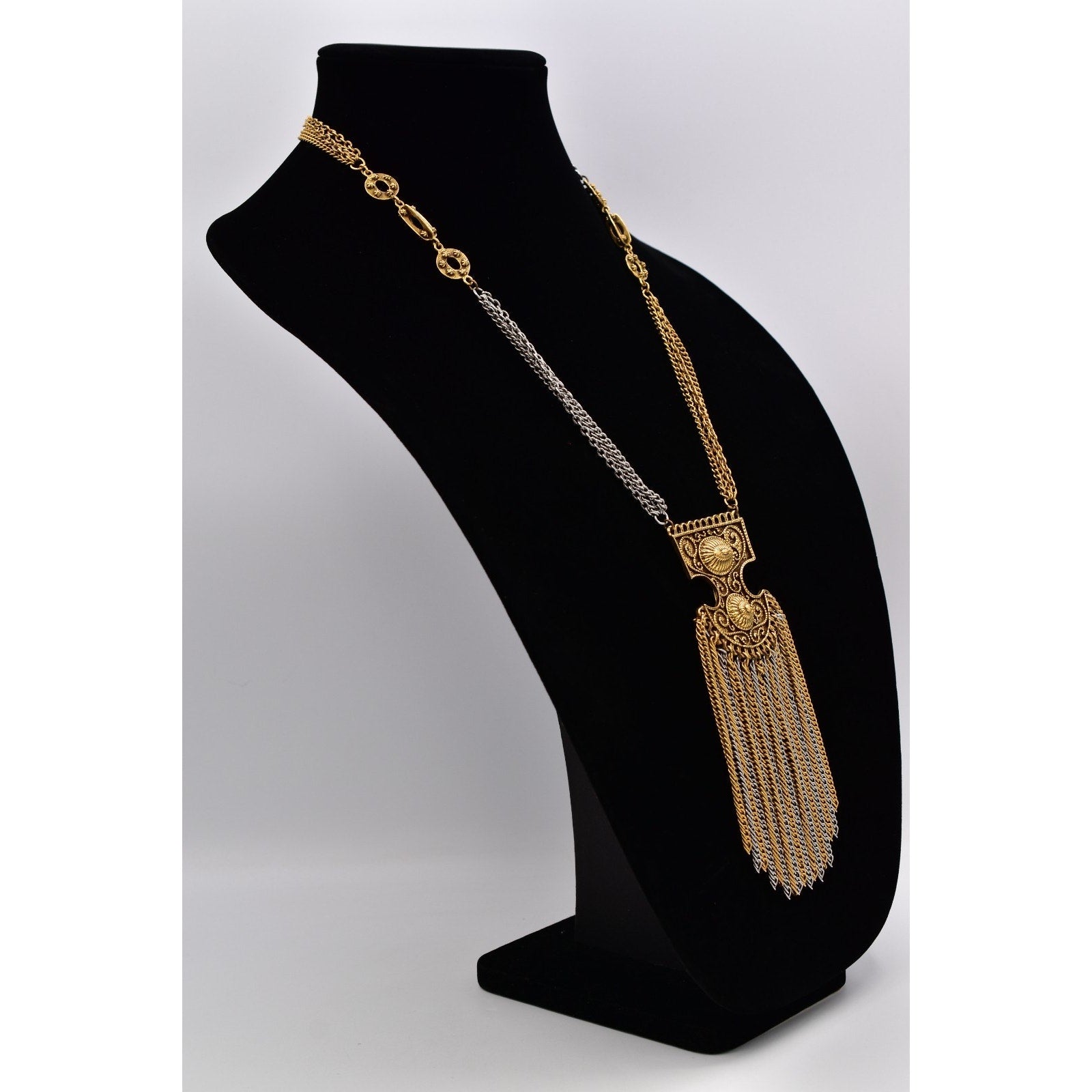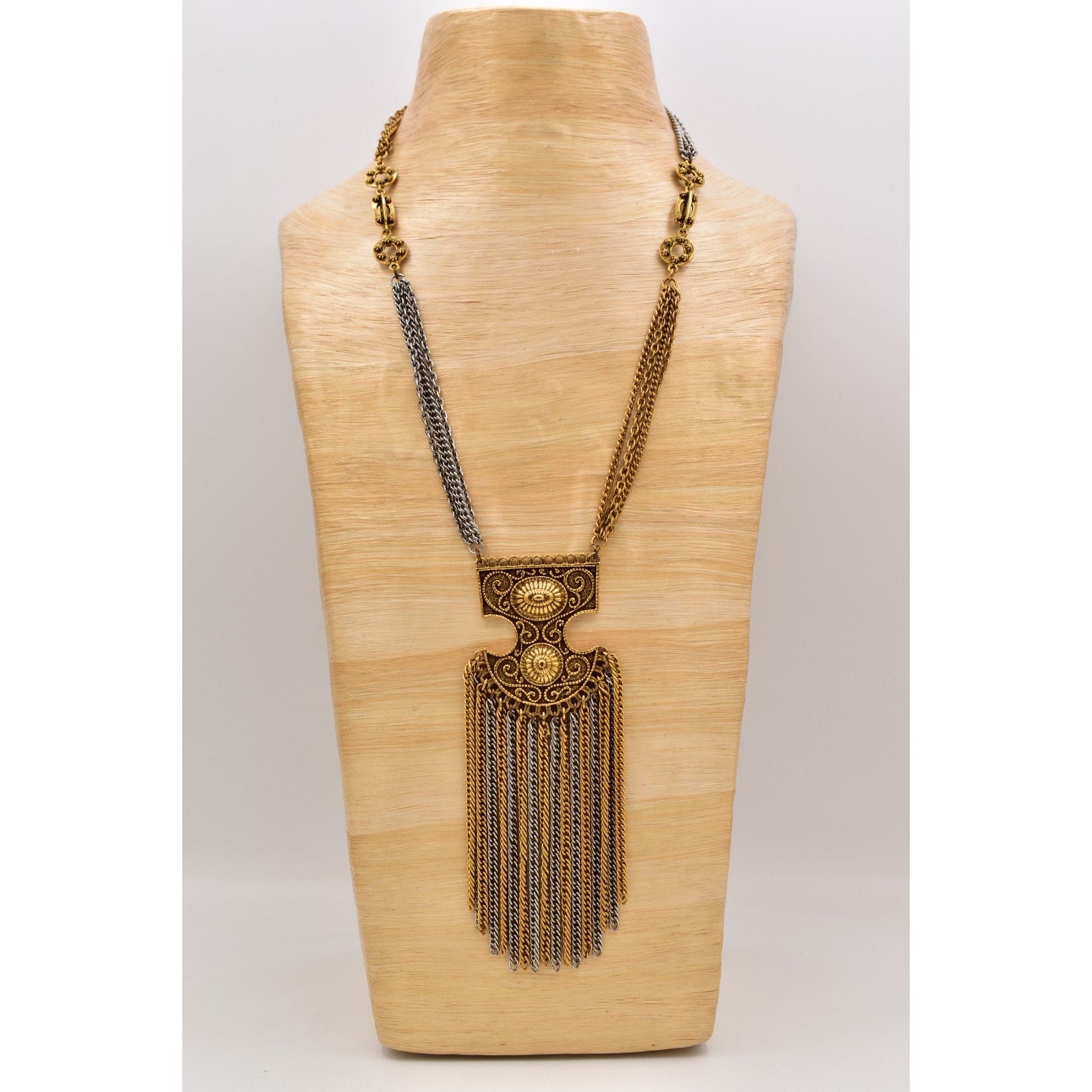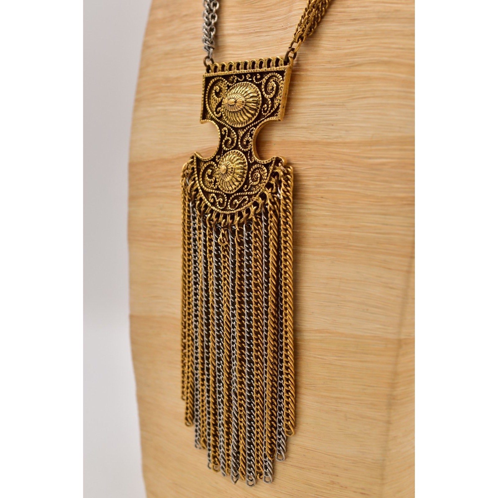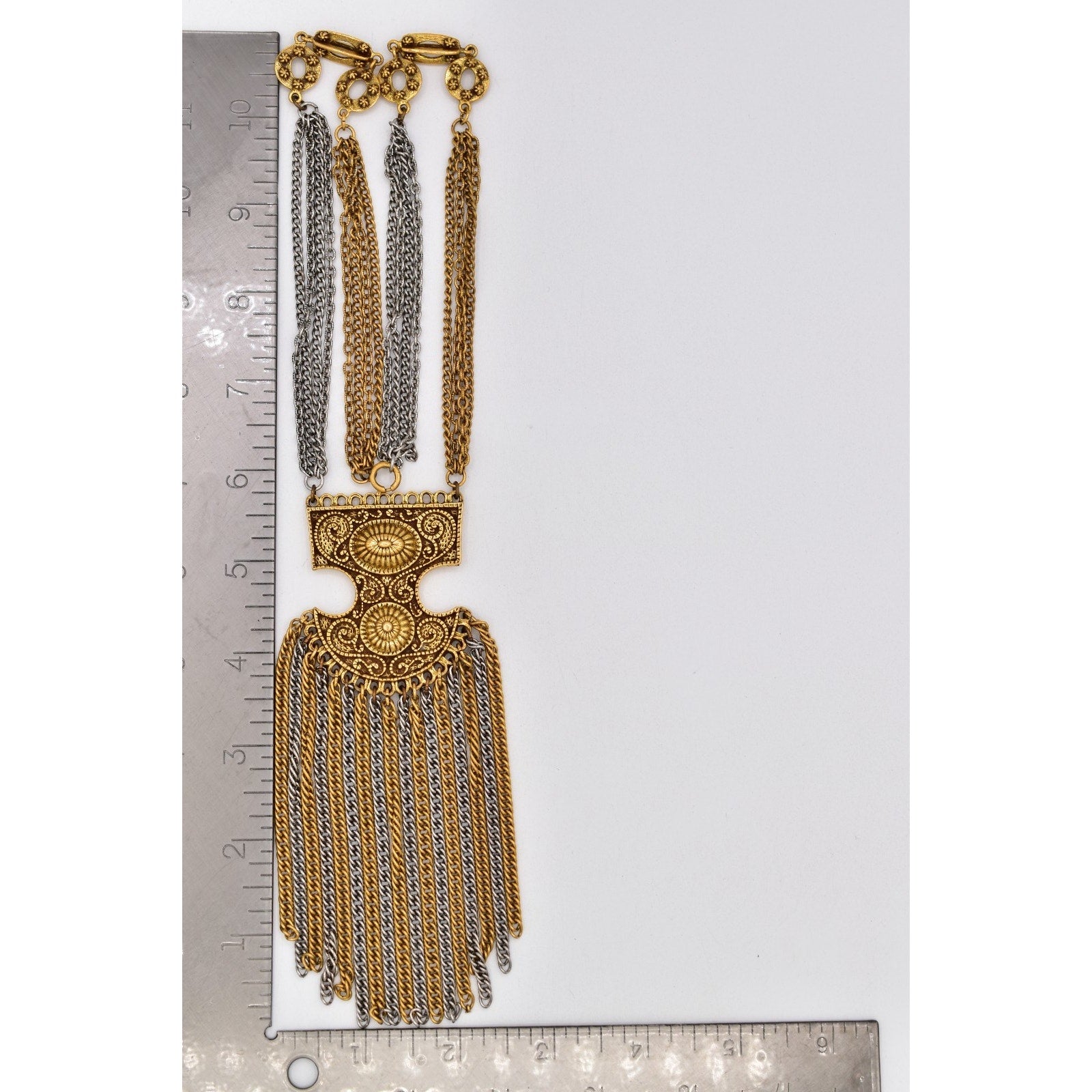 Vintage Gold Silver Tone Fringe Pendant Necklace